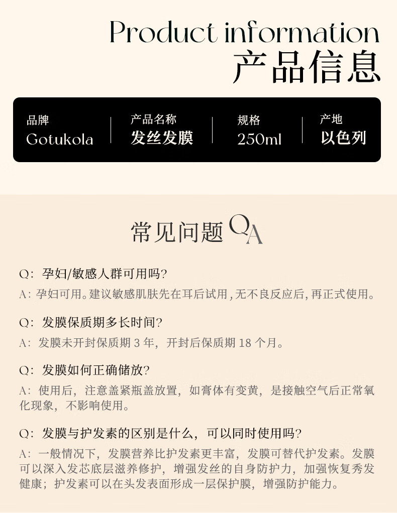 GOTUKOLA狗头发膜染烫修复控油蓬松柔顺干枯毛躁修复顺滑蛋白护发素橙膜绿膜500ml发膜cp
