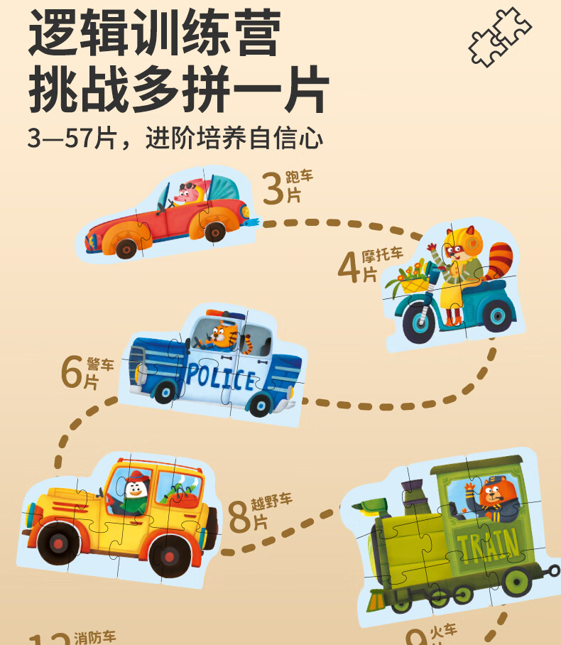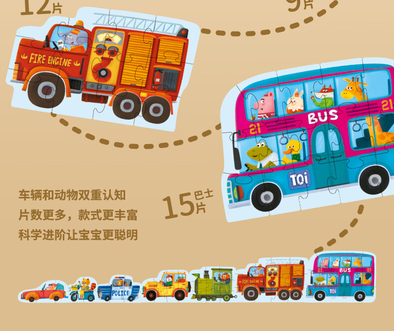 TOI拼图0-3岁儿童拼图幼儿低幼大块拼图宝宝玩具生日礼物男孩女孩 双面交通|57片(推荐3岁+)