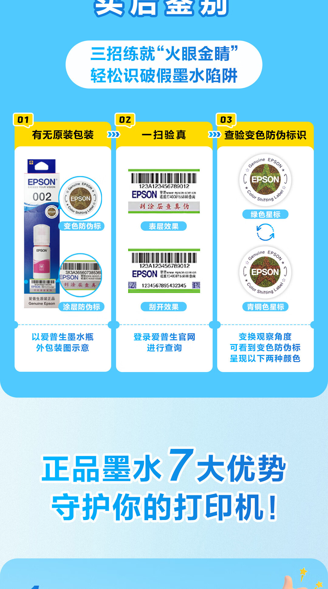 爱普生002系列T03X1-X4原装墨水套装((适用L426X/L626X/L627X/L629X/L415X/L416X/L616X/L617X系列等)