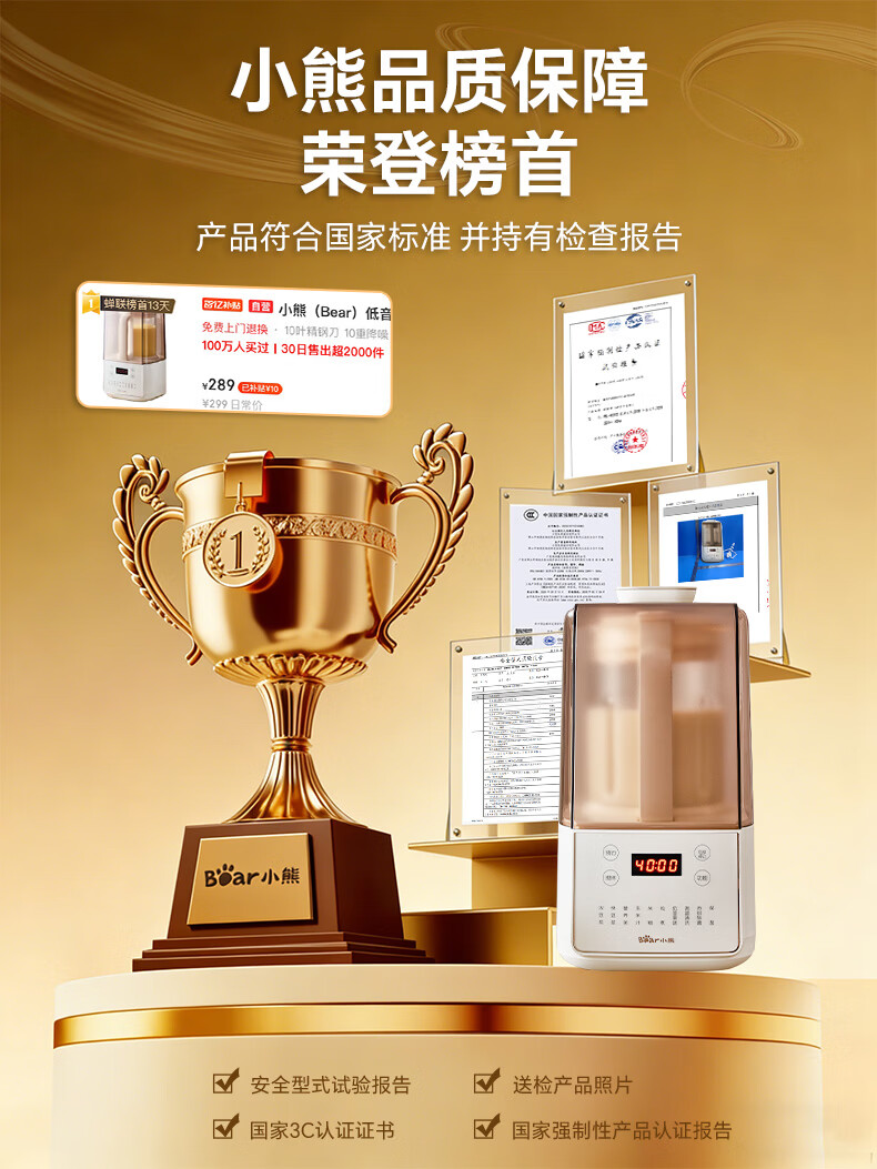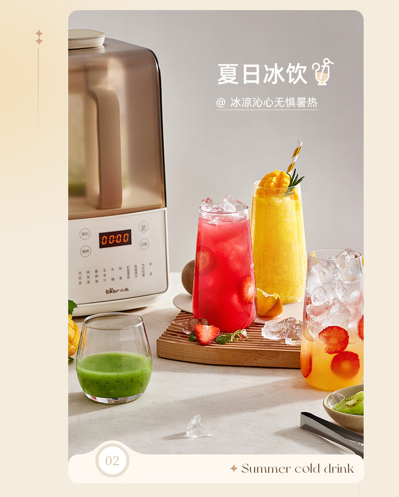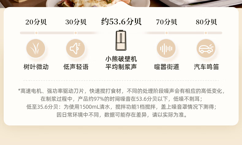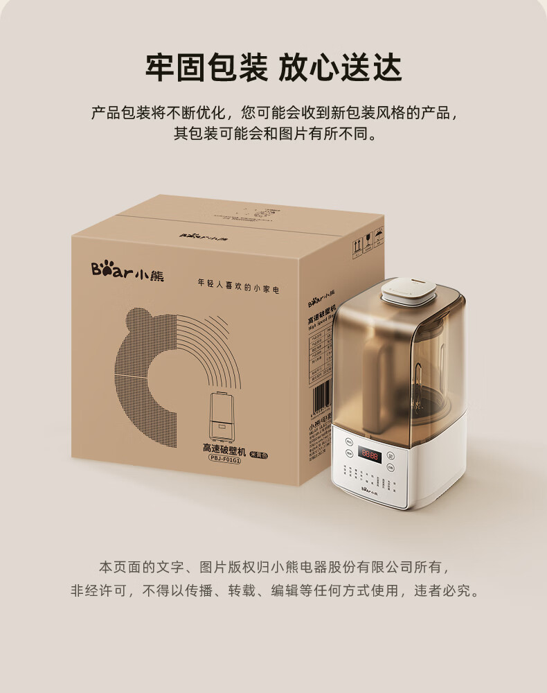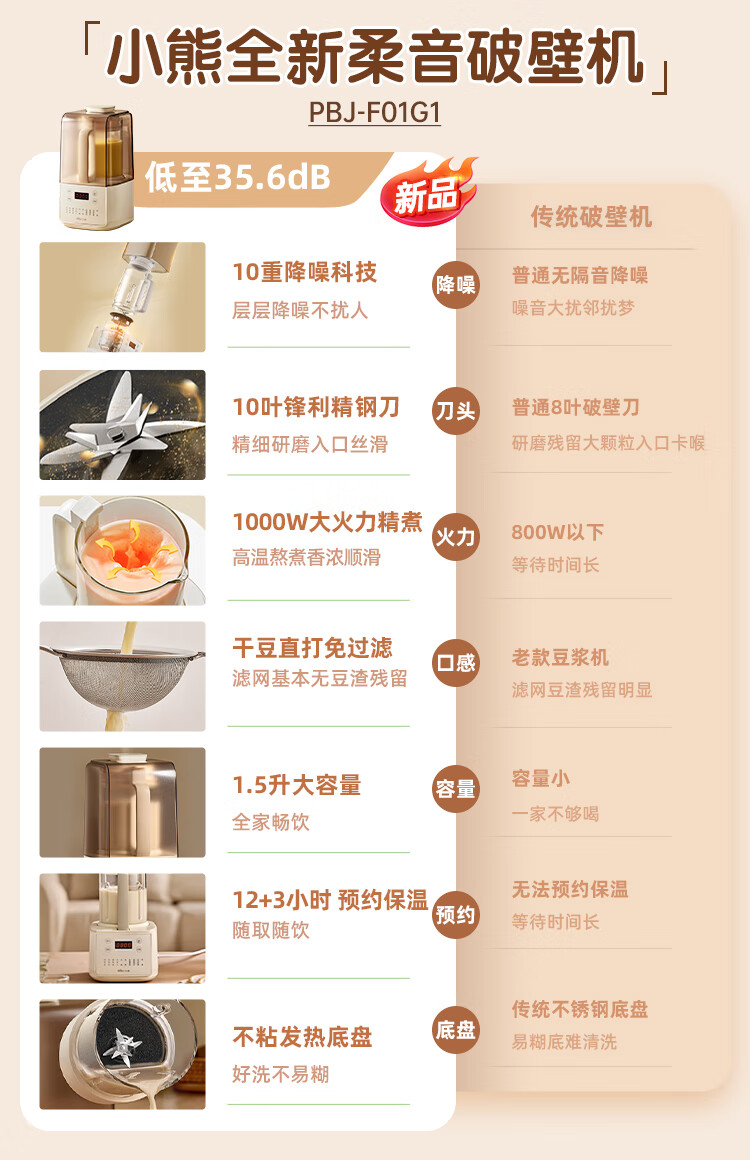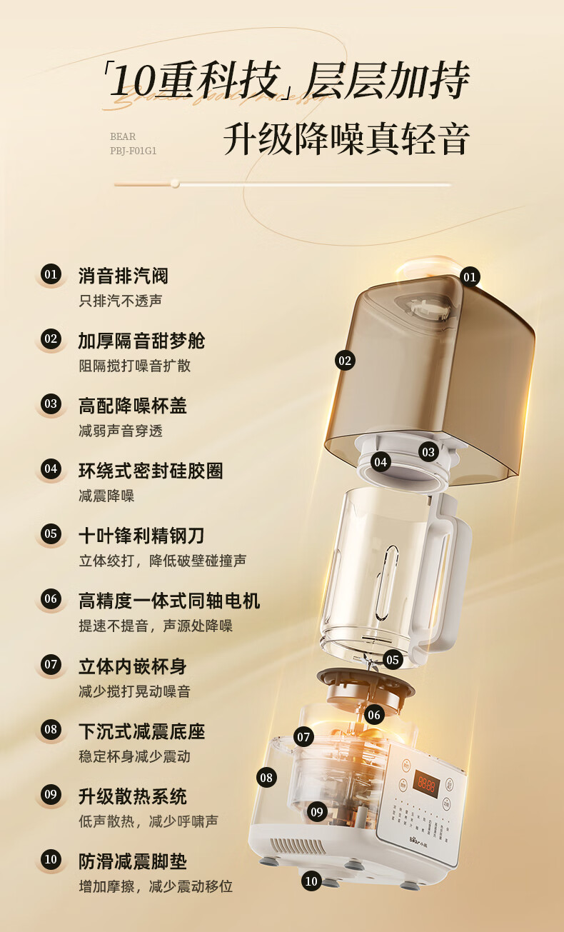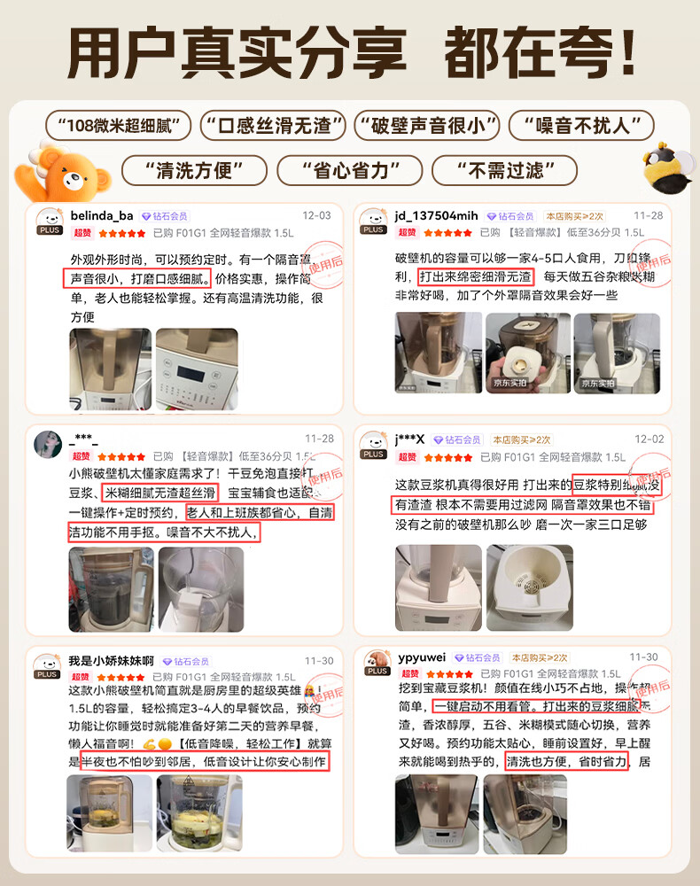 小熊(Bear)低音降噪破壁机1.5L家用全自动豆浆机榨汁料理辅食机预约多功能破壁免滤3-4人用F01G1