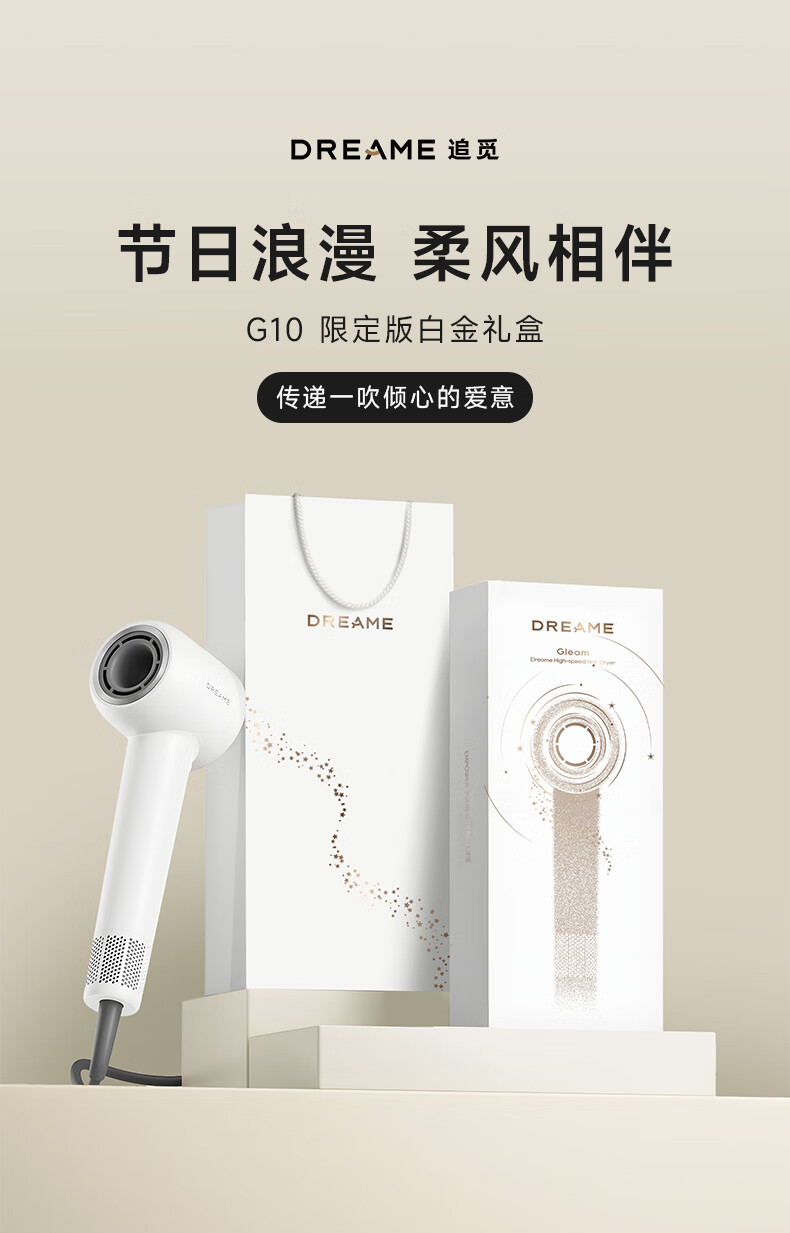 追觅G10Pro高速吹风机家用电吹风大功率速干电吹风筒大风力低噪音 白金礼盒AHD11B 送礼礼物