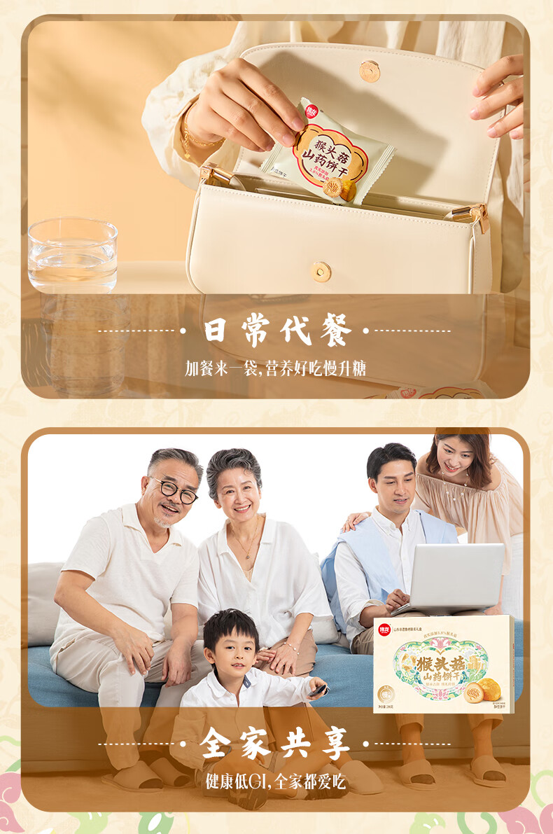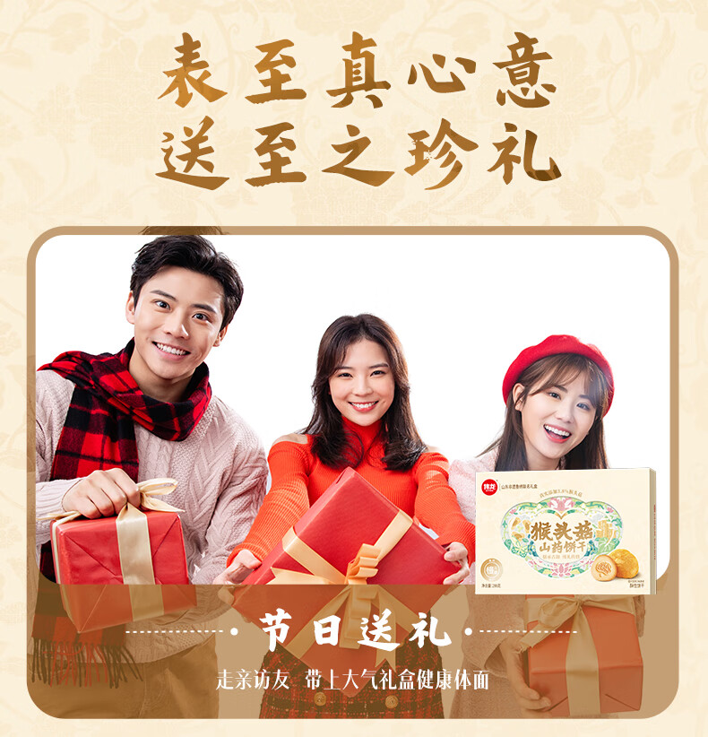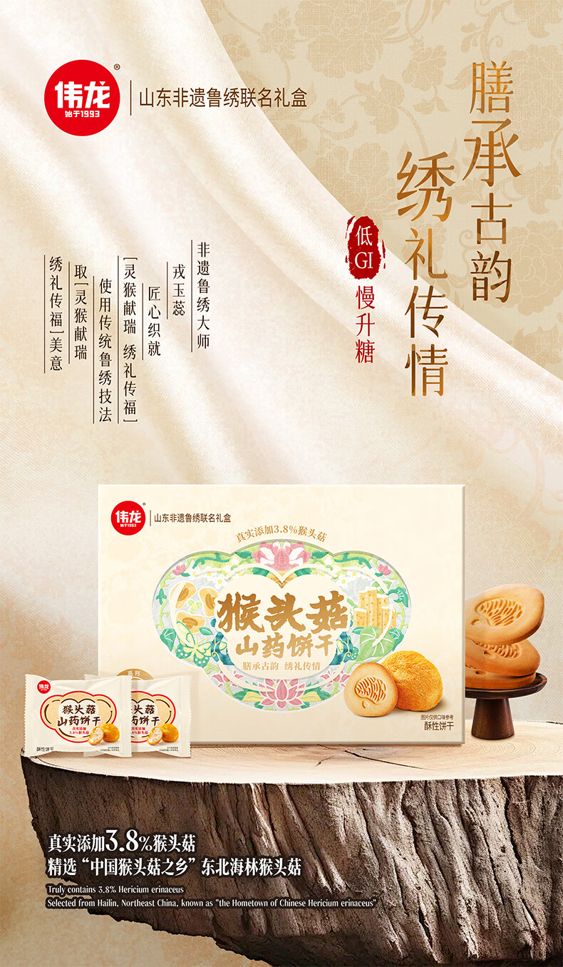 伟龙猴头菇山药饼干286g礼盒低GI 老年人长辈过年送礼健康休闲零食 伟龙山东非遗鲁绣联名礼盒286g*2盒