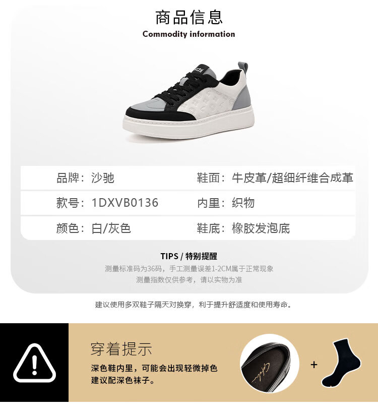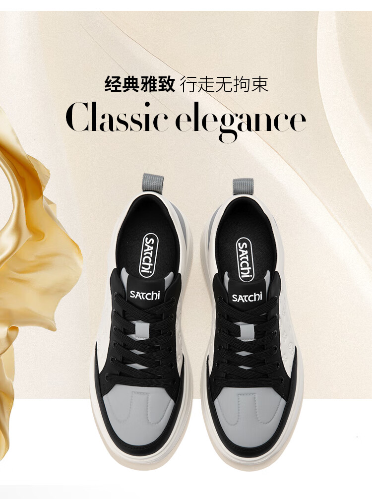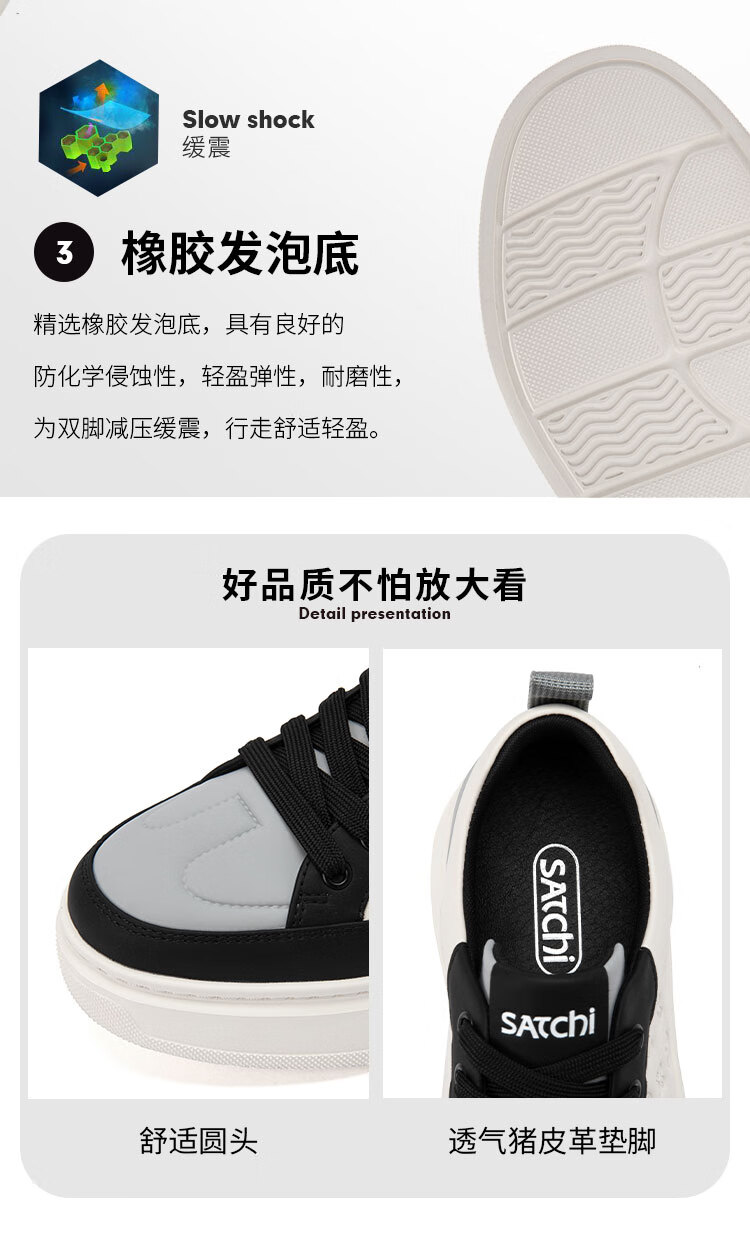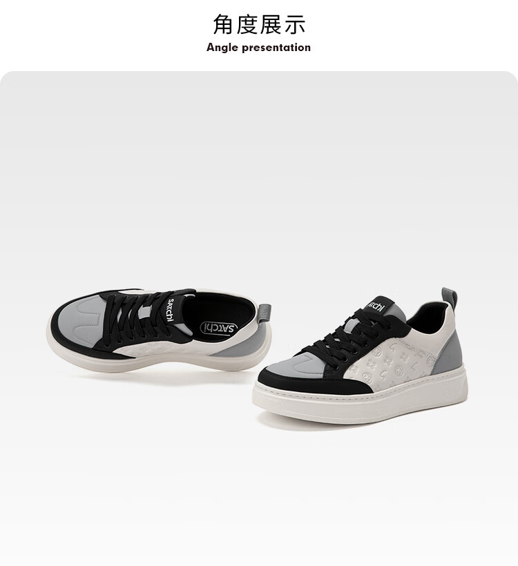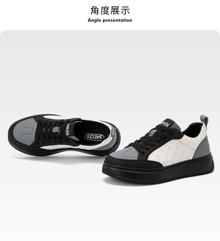 沙驰(SATCHI)男鞋新款摩登逸履印花潮流板鞋厚底运动休闲鞋户外鞋跑步鞋 白/黑(1DXVB0134) 41 欧码(选小一码)