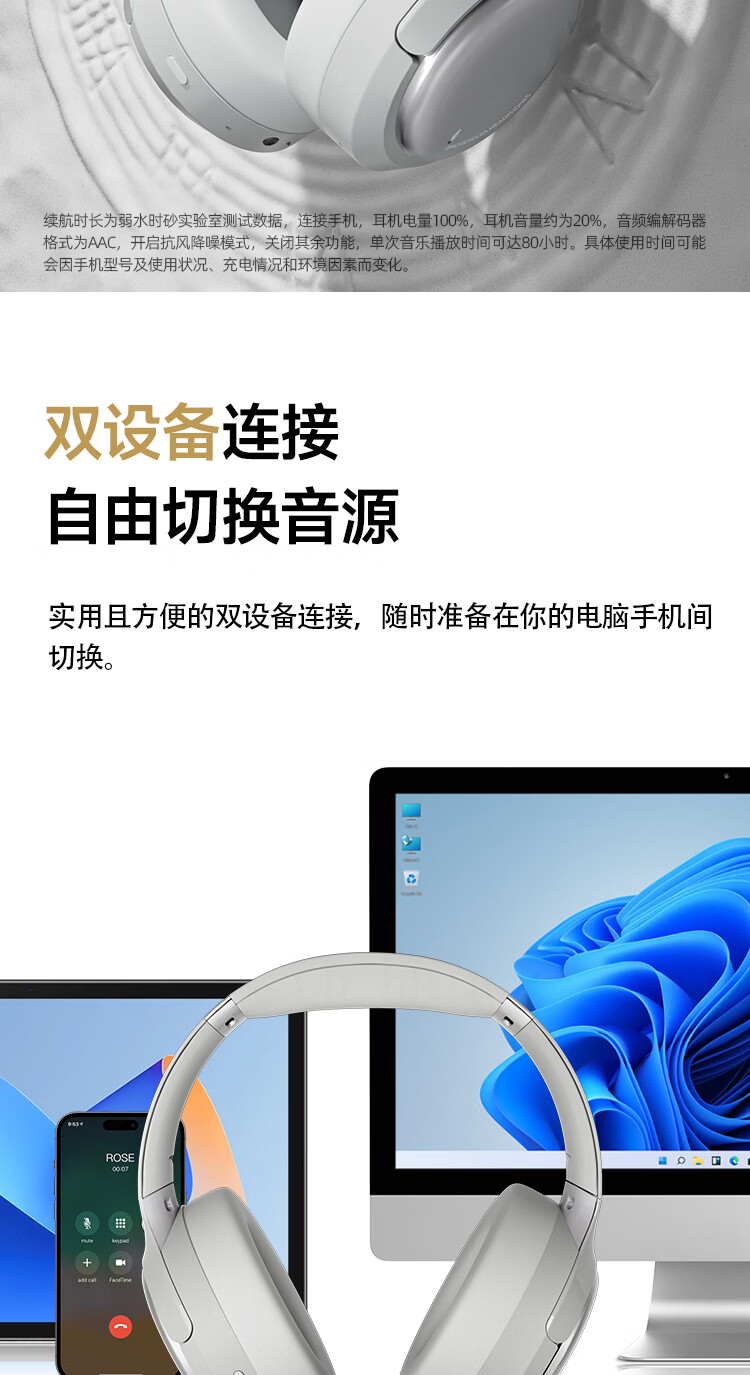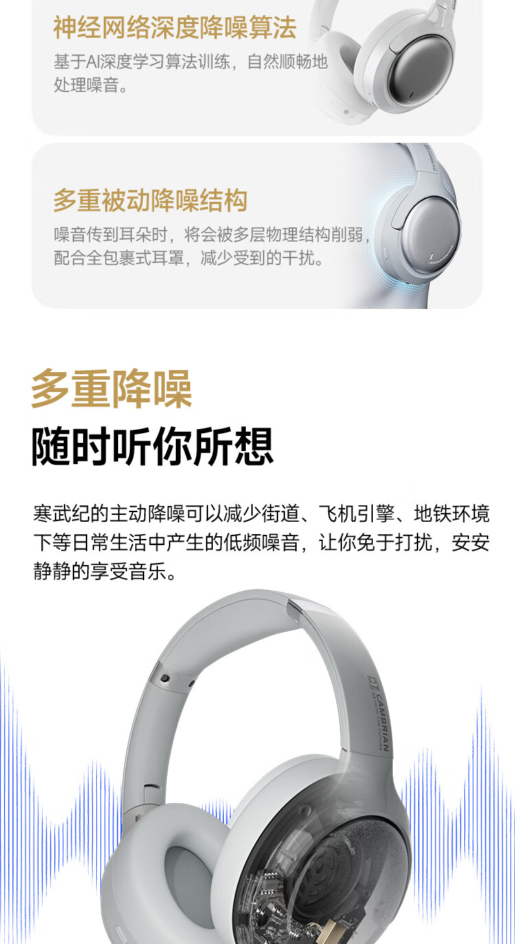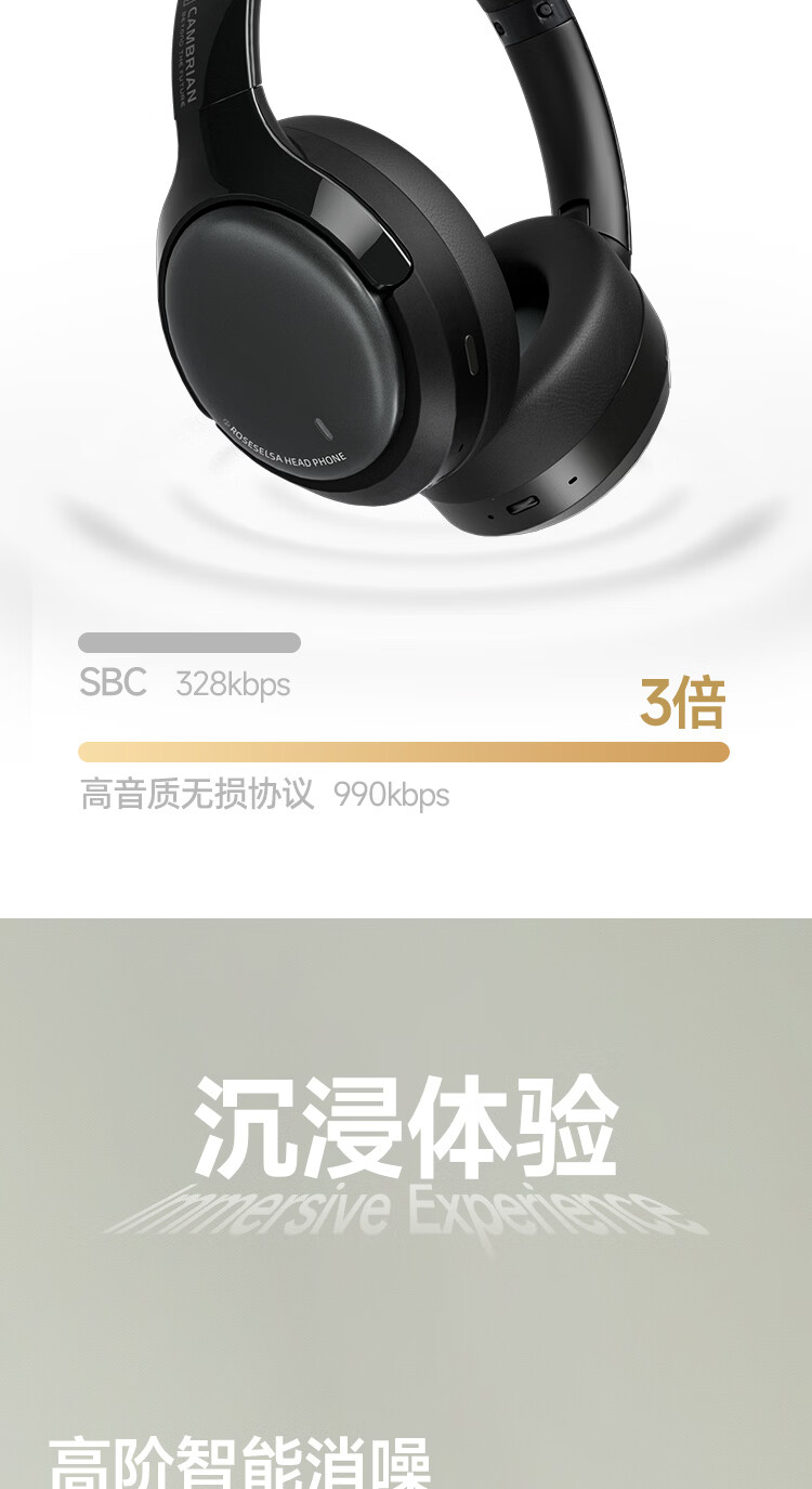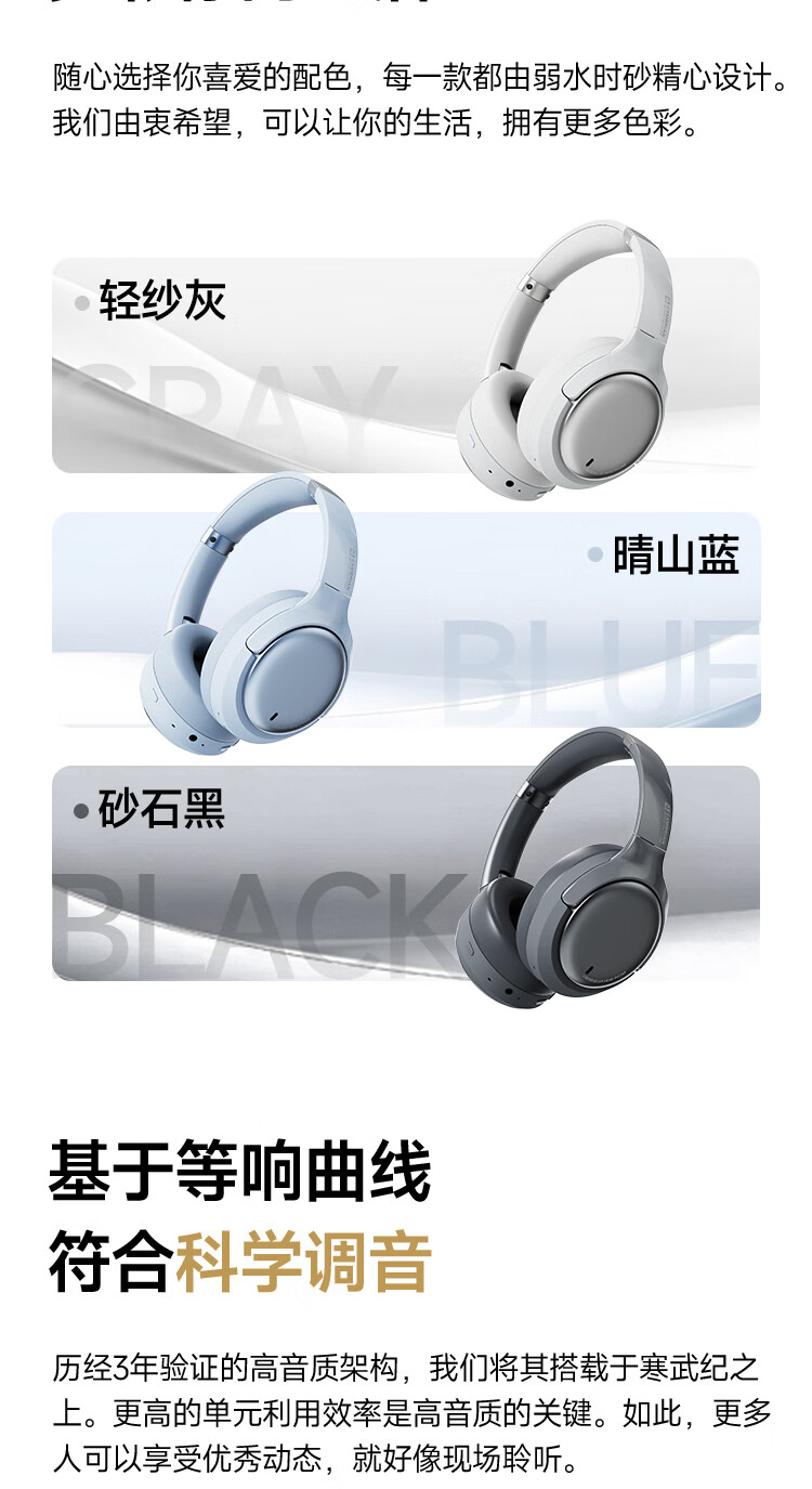 弱水时砂【2025新款】寒武纪头戴式耳机蓝牙无线降噪耳机手机电脑游戏低延迟超长续航送男女友学生 【旗舰版】轻纱灰|IMAX级沉浸声