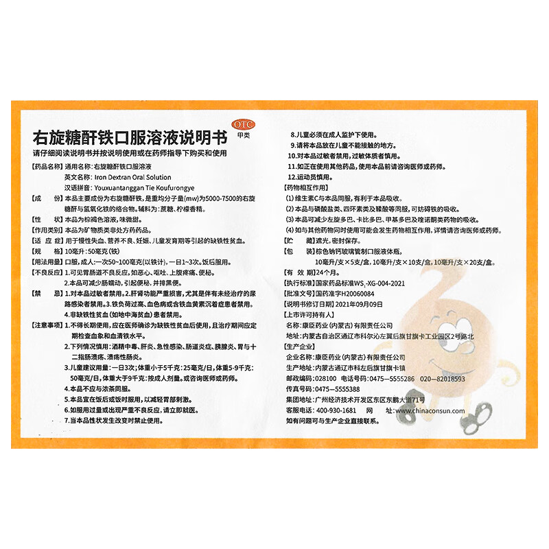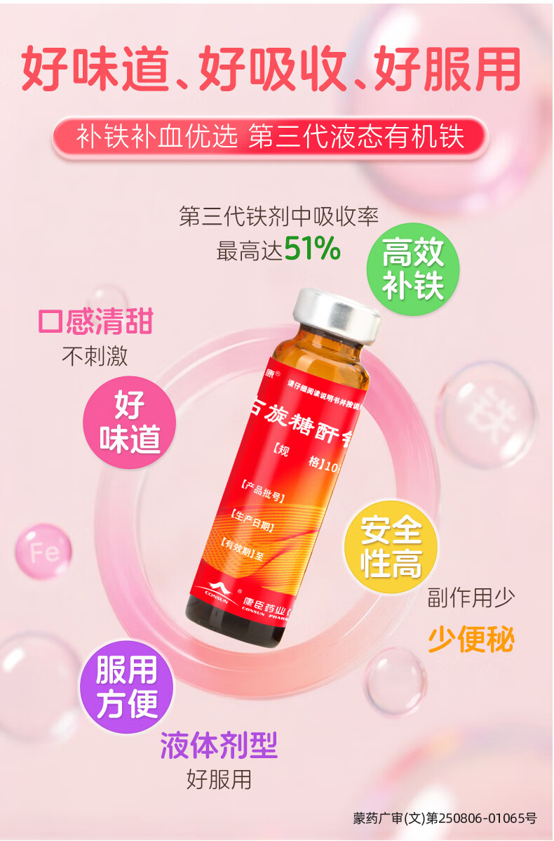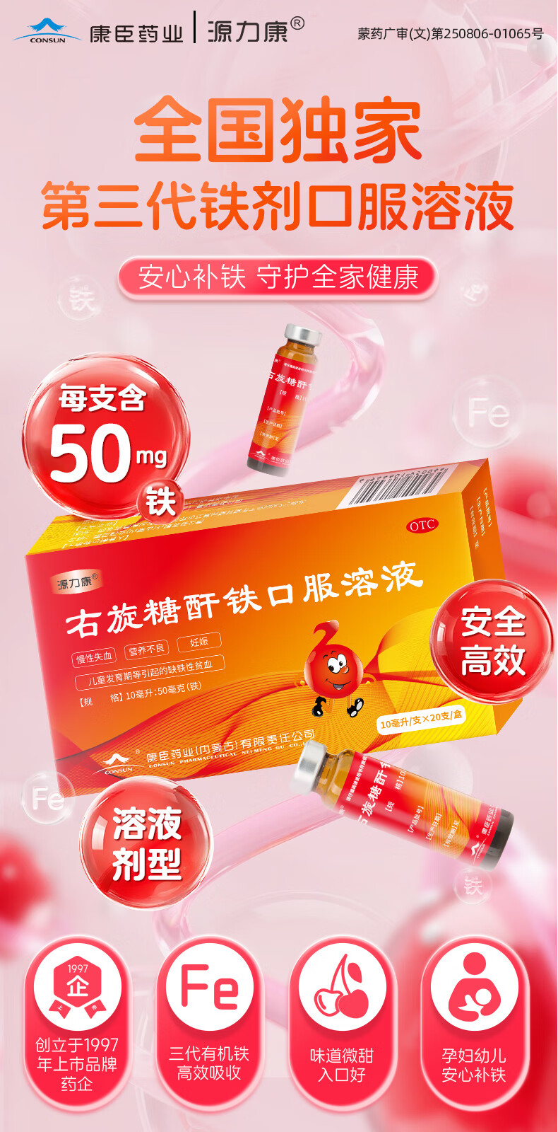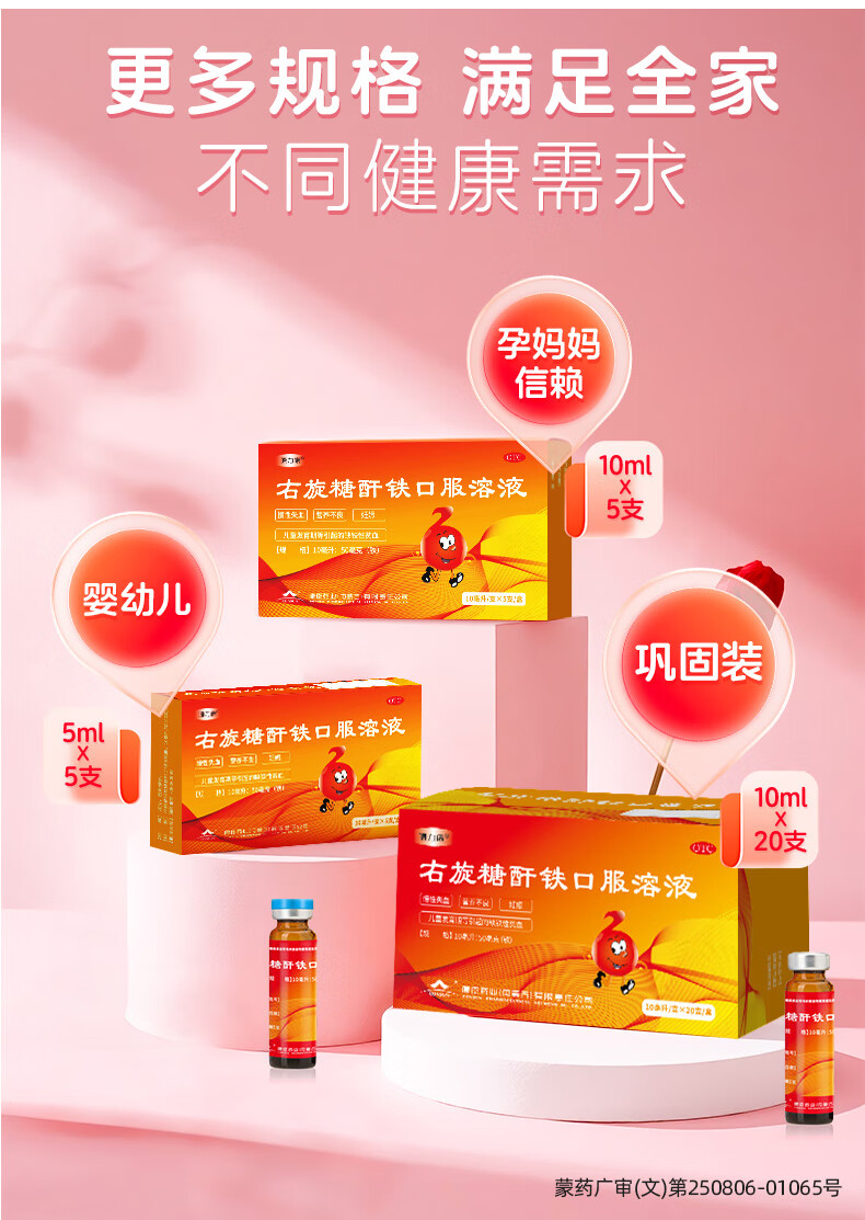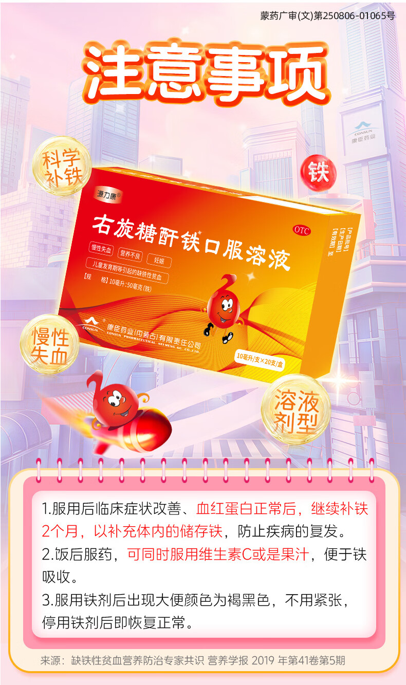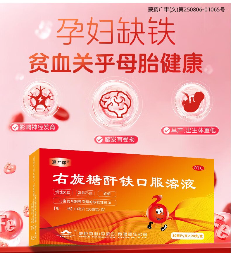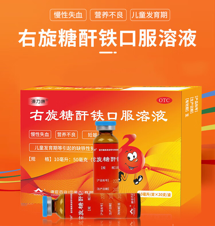 康臣 源力康 右旋糖酐铁口服溶液 10ml*20支 贫血补铁补血补气铁剂铁片 孕期补铁 女性补铁 缺铁性贫血 年货节
