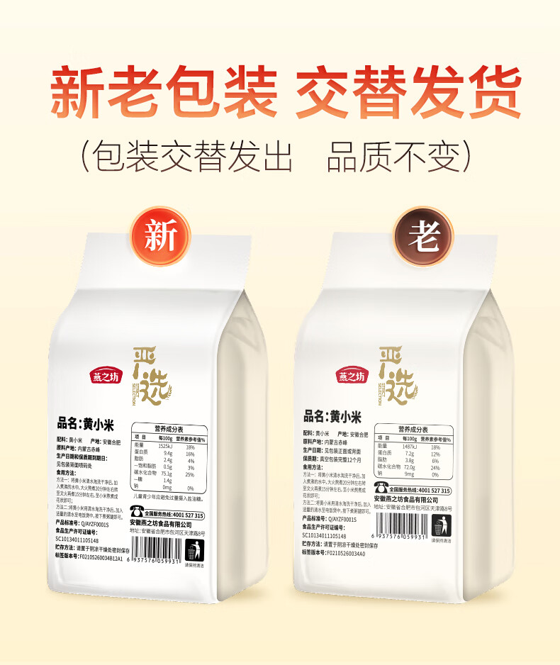 燕之坊黄小米2斤内蒙古赤峰小黄米小米粥五谷杂粮粗粮