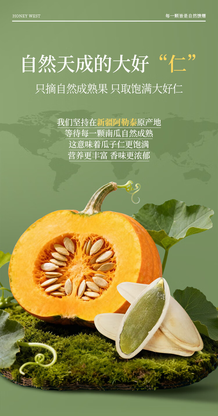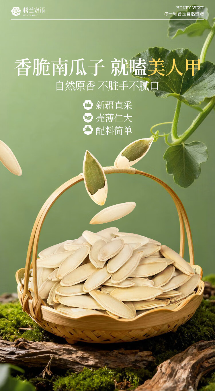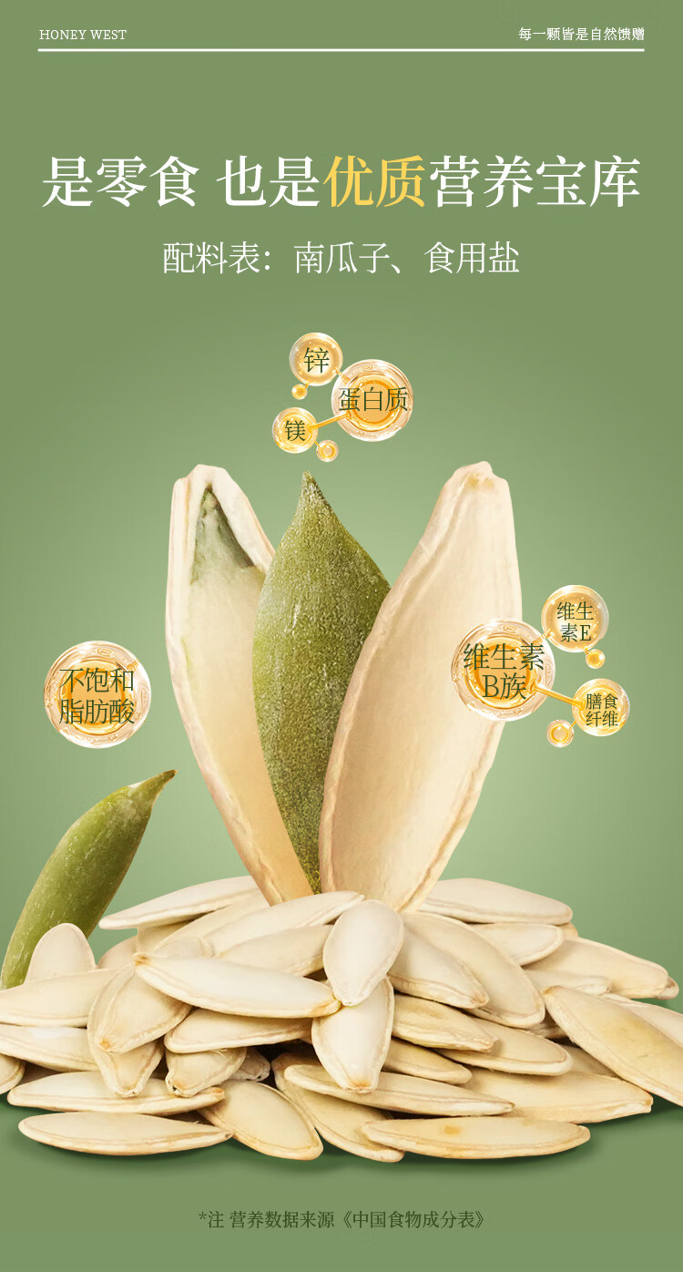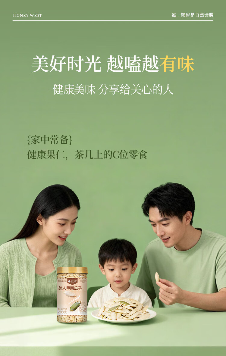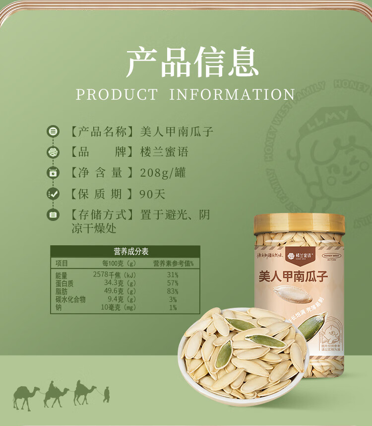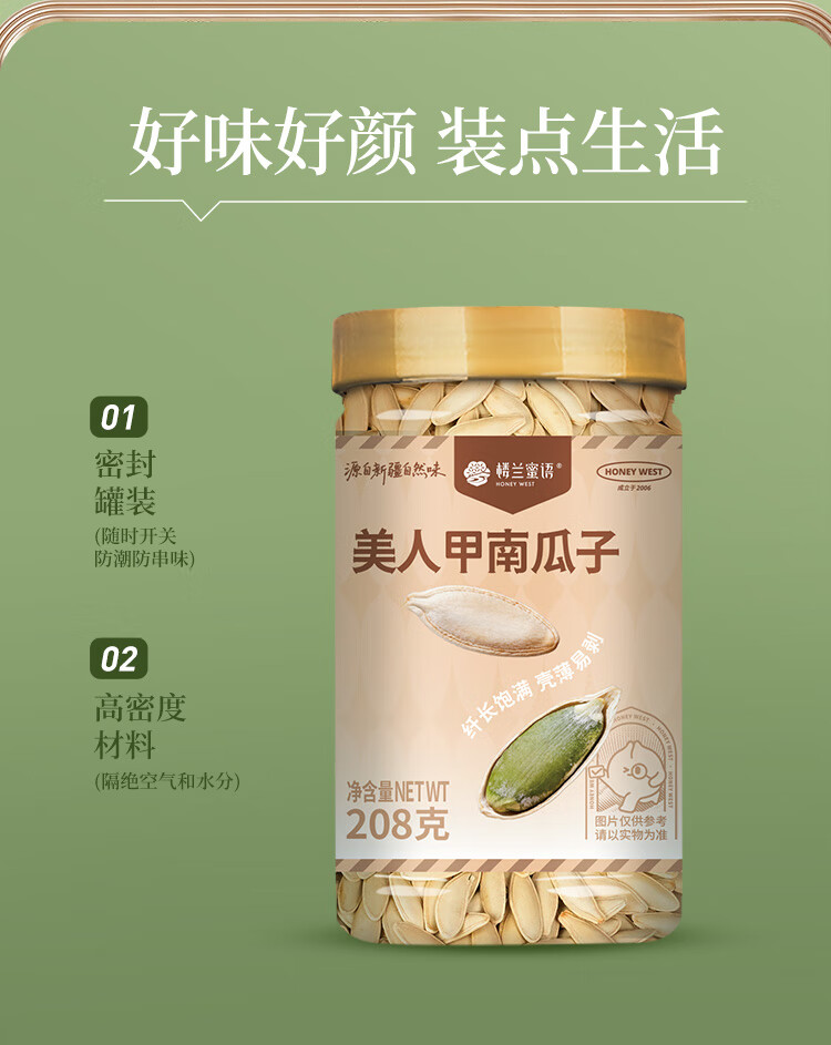 楼兰蜜语新疆美人甲南瓜子208g/罐 原味长粒熟瓜籽仁坚果炒货