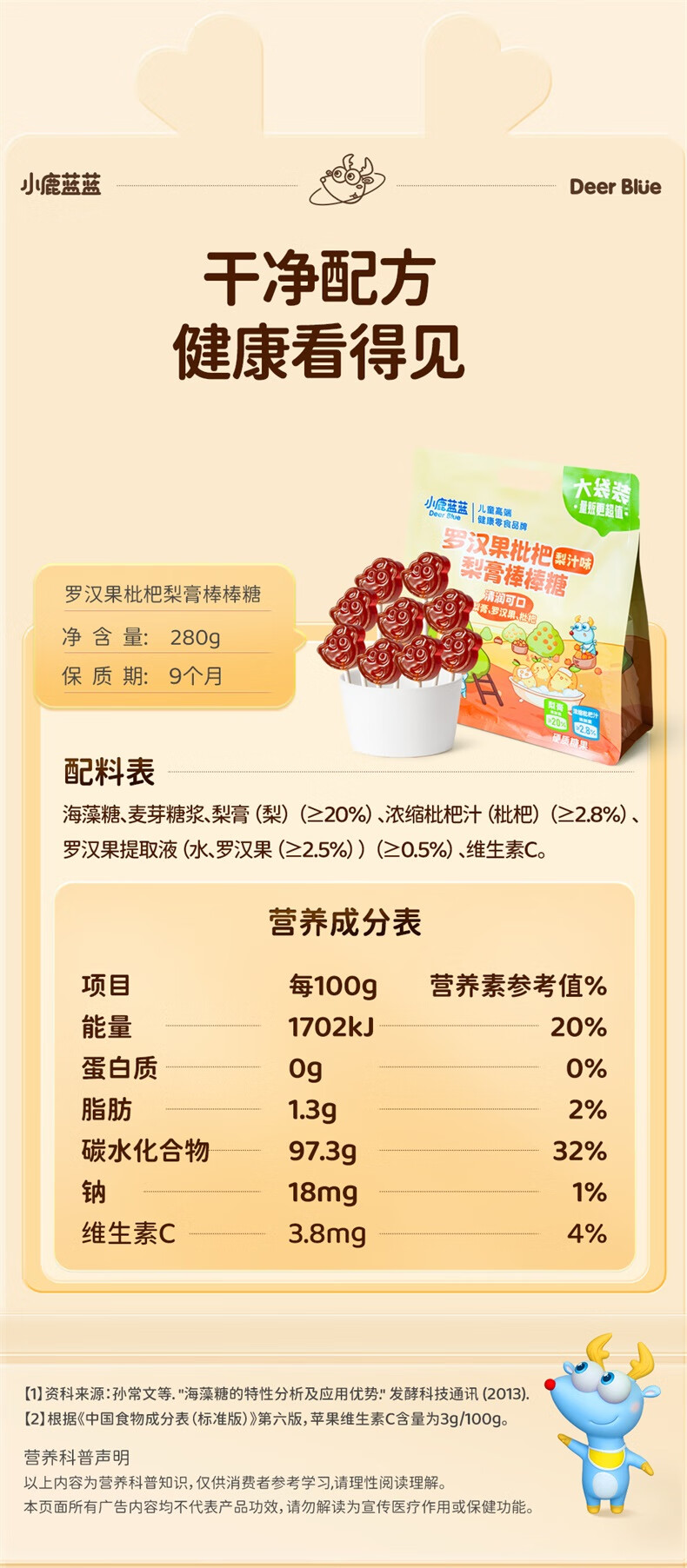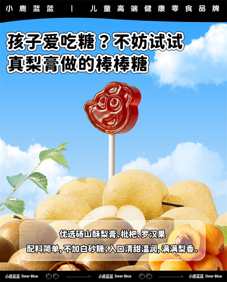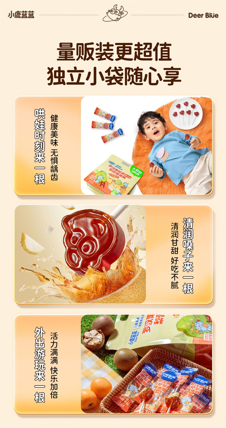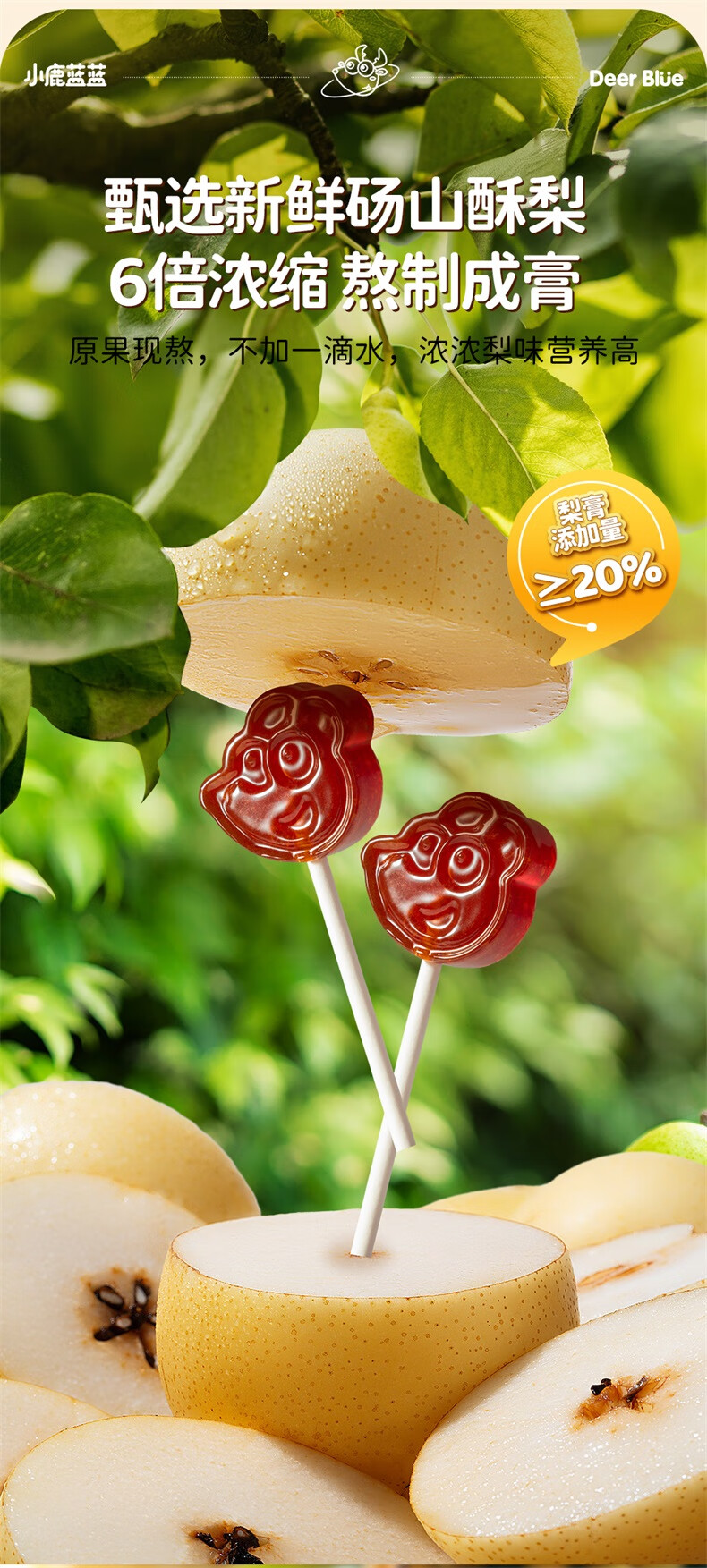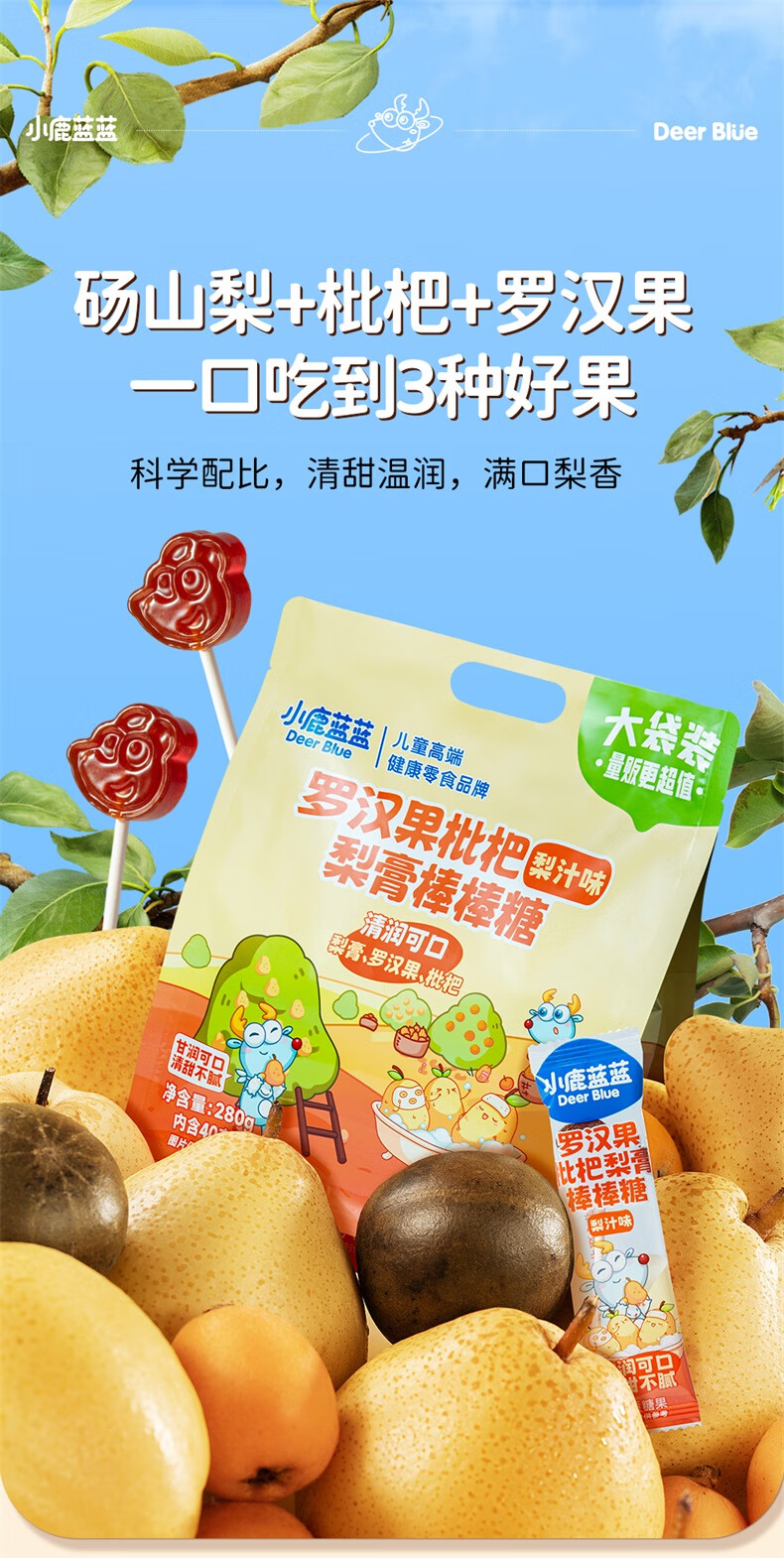 小鹿蓝蓝 罗汉果枇杷雪梨膏糖棒棒糖40支独立包装宝宝儿童梨膏零食280g