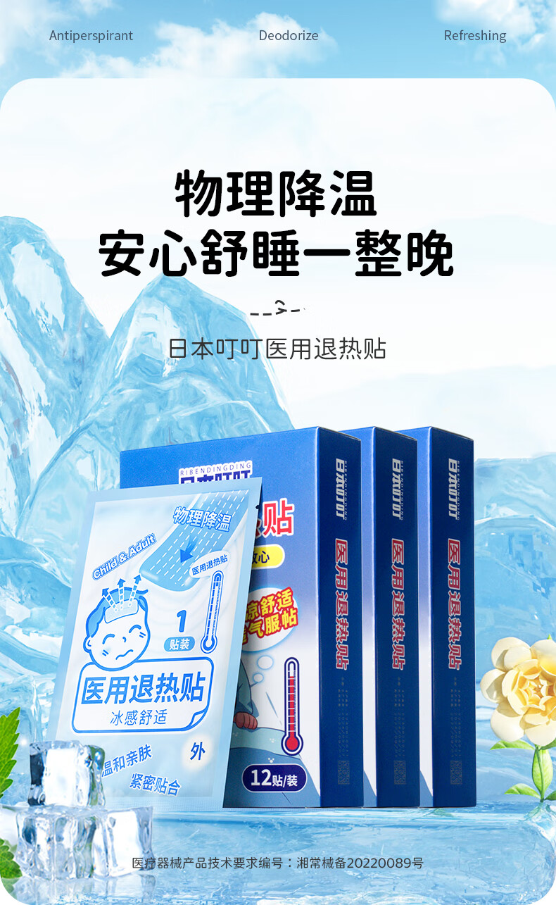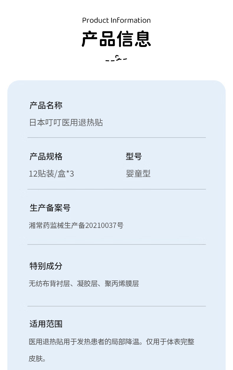 日本叮叮医用退热贴儿童3盒36贴退烧贴发烧贴冰凉贴物理降温流感防护优选