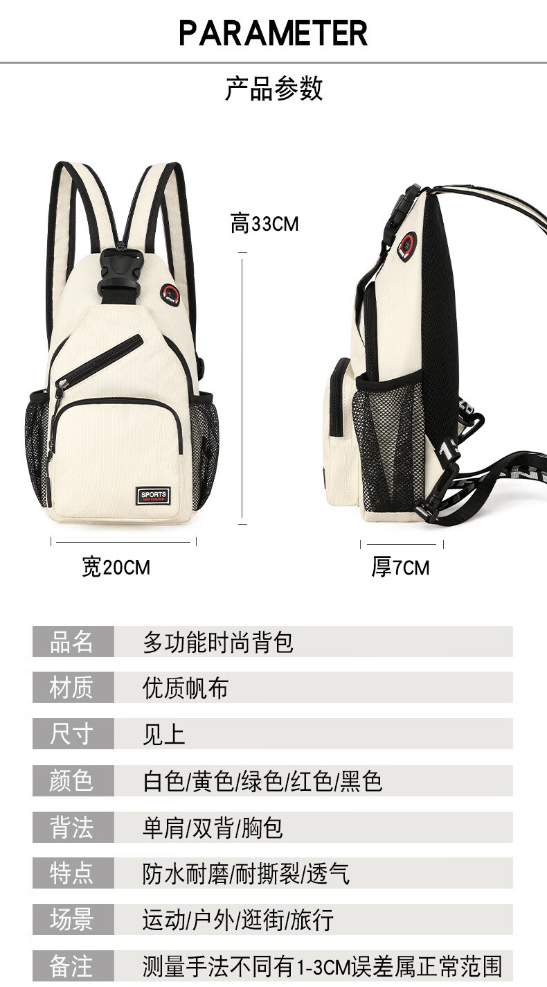 【优选好物】女士胸包女防水大容量双肩包休闲挎包牛津布斜挎包多 黑色
