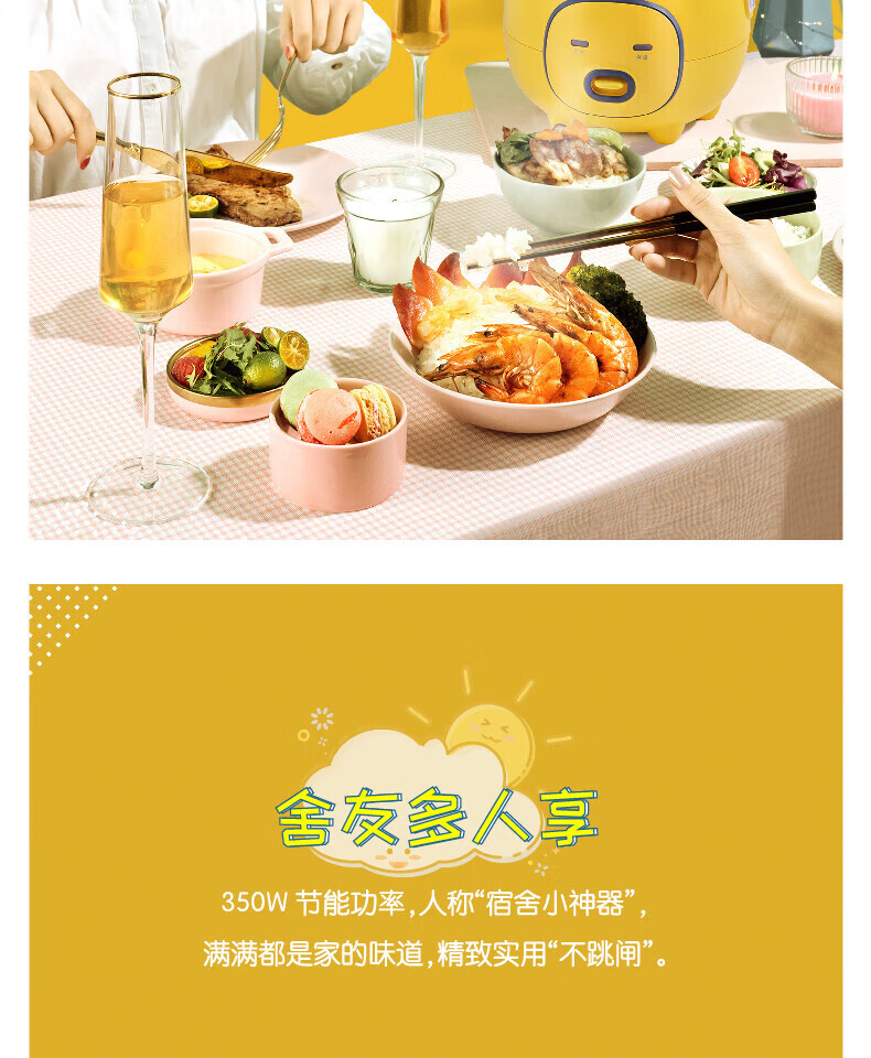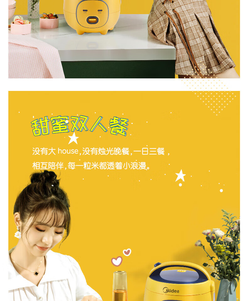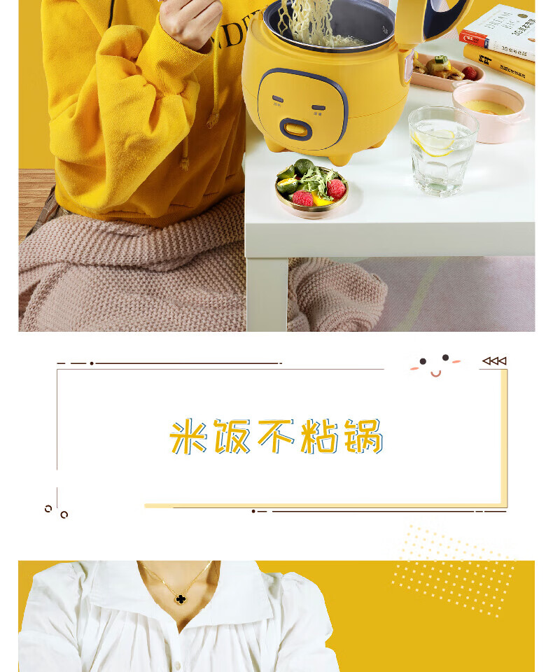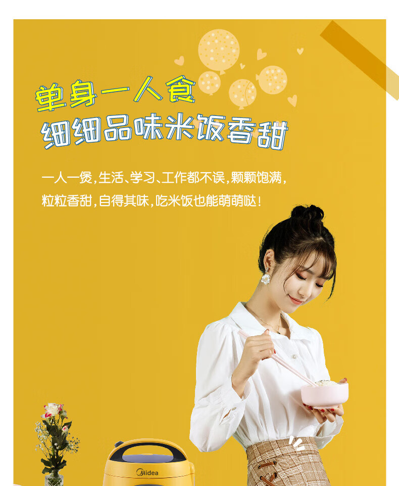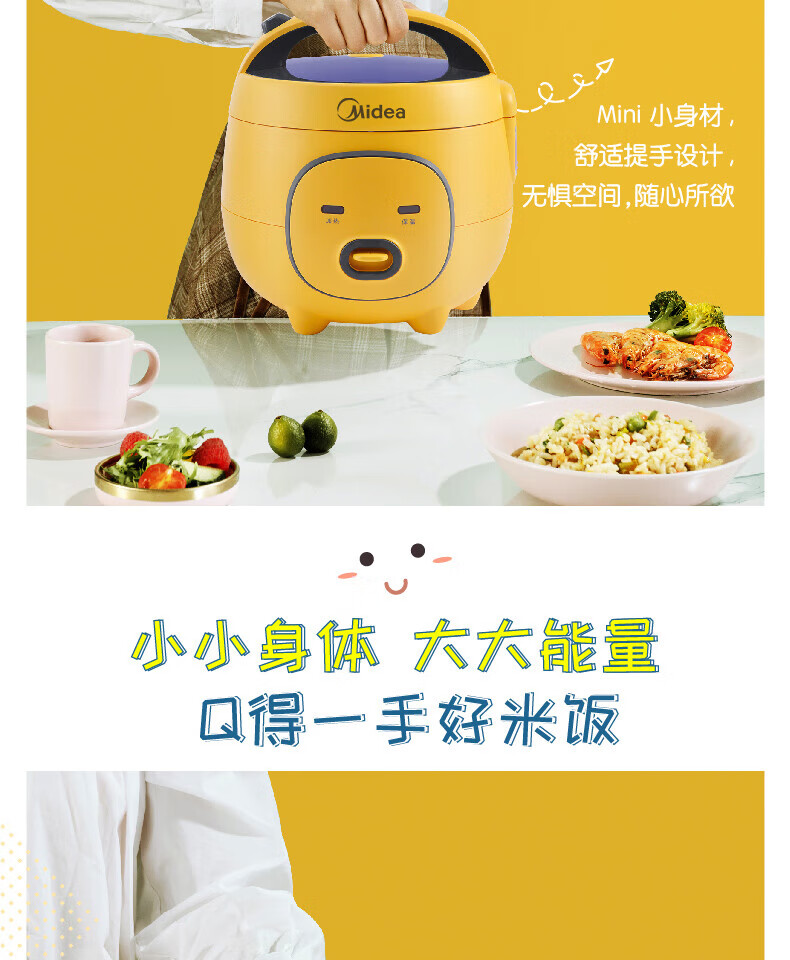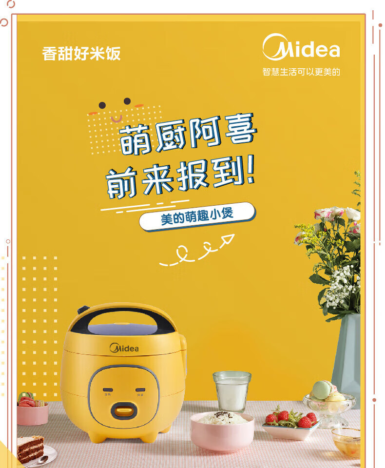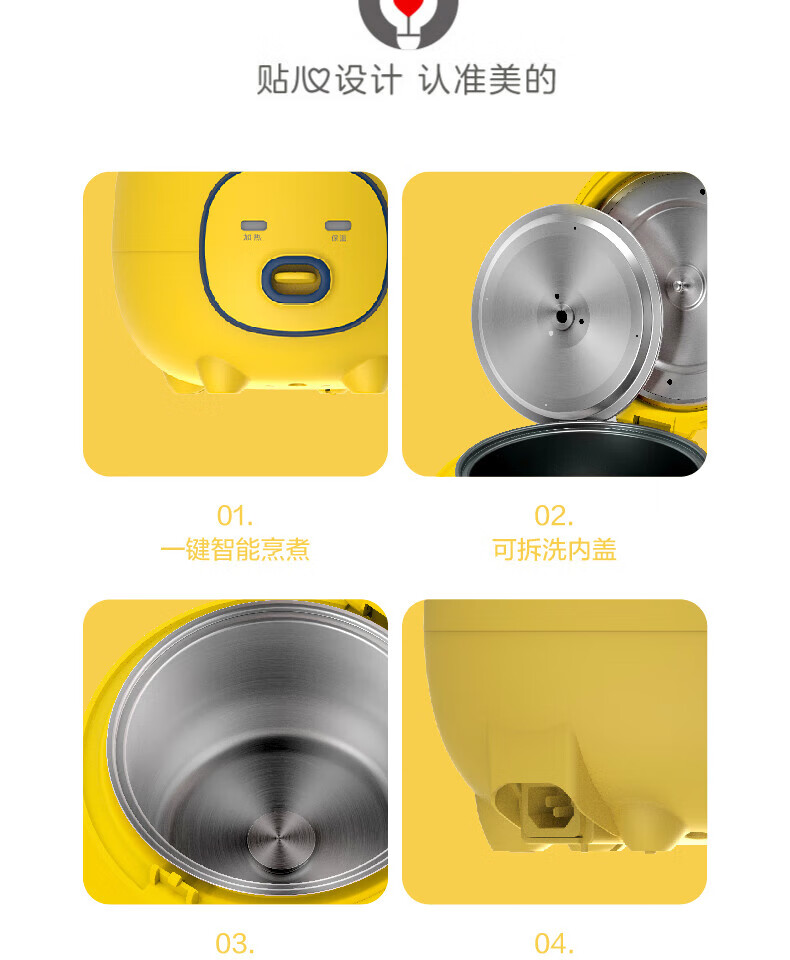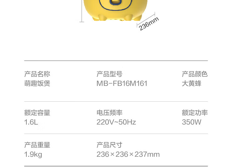 美的(Midea)大黄蜂 智能电饭煲电饭锅一人食1-2人家用小型微压多功能1.6L迷你宿舍萌趣可拆洗 MB-FB16M161 【活力大黄蜂】不粘内胆 1.6L