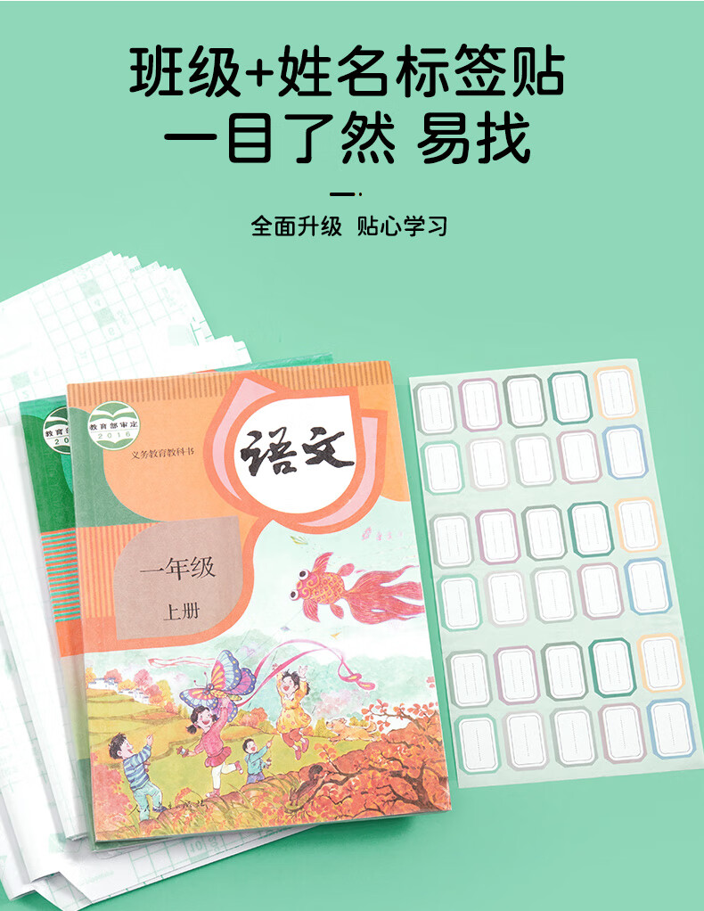 六品堂文具包书皮书套包书膜书皮纸自粘透明磨砂加厚16K小学生A4A5一体化书壳全套塑料防水课本保护套 大20中20小10 送90枚姓名贴