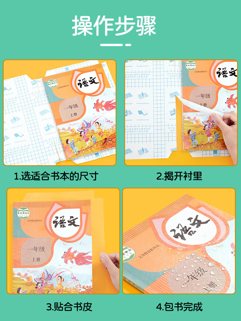 简菲自粘包书皮透明磨砂书皮纸课本包书膜小学生一二三四五年级上册书套a416k包装纸保护套书壳包书纸 【热销组合30张】小中大各10张