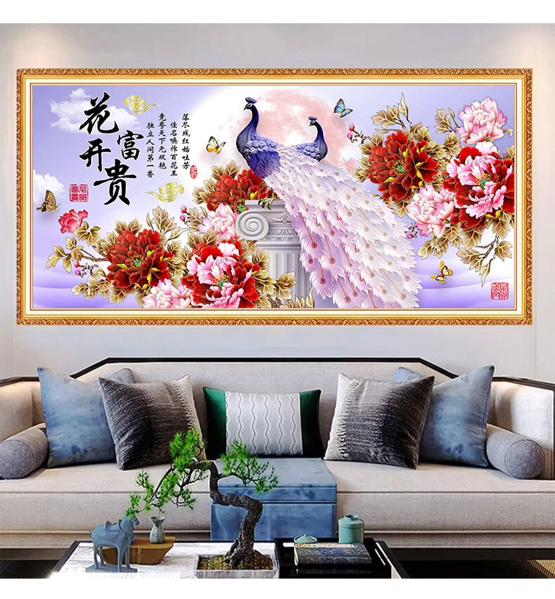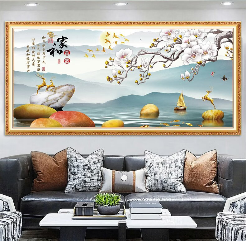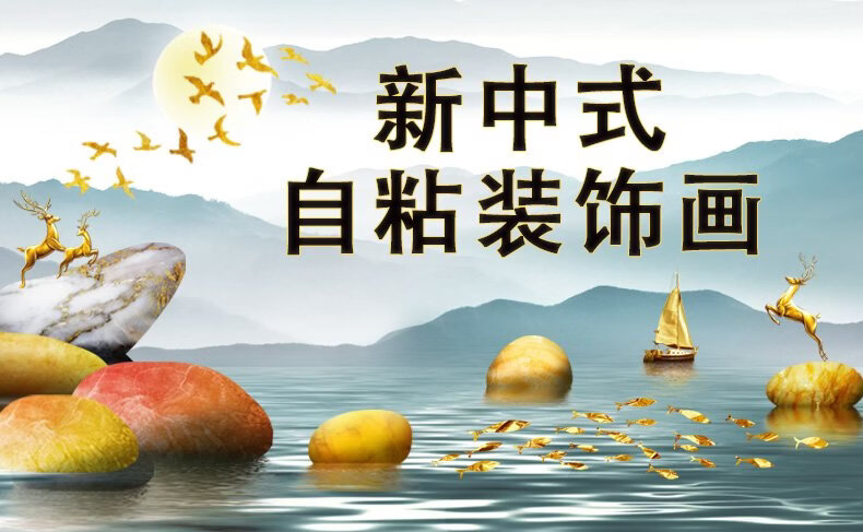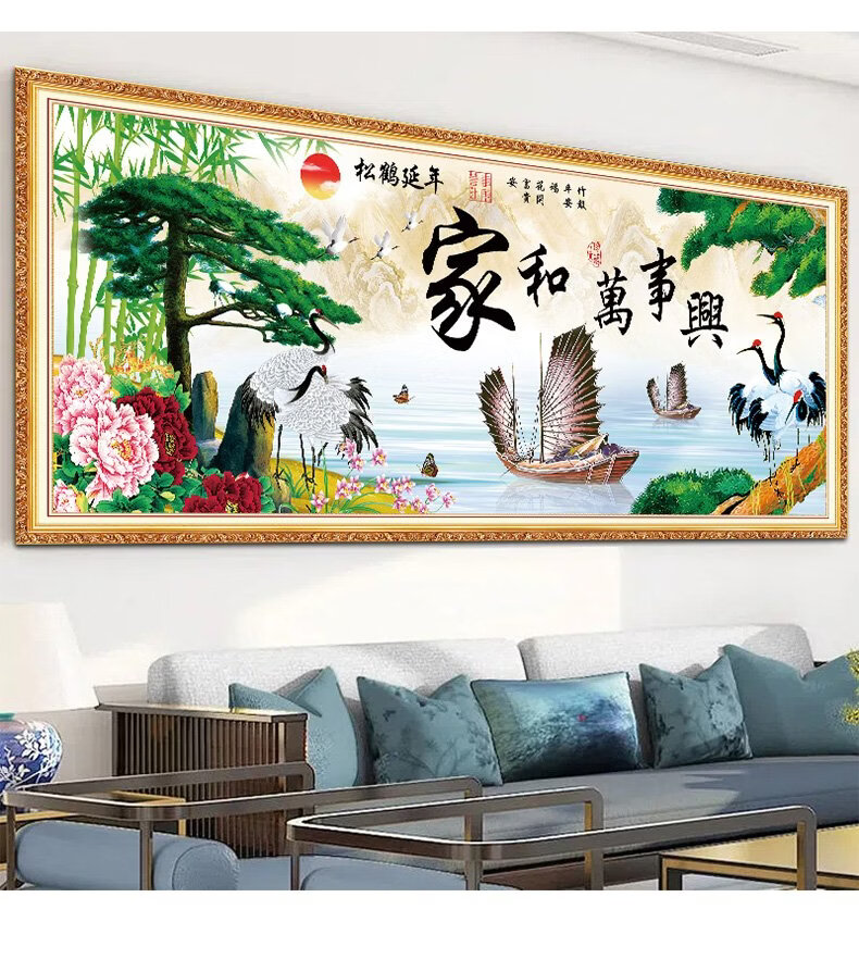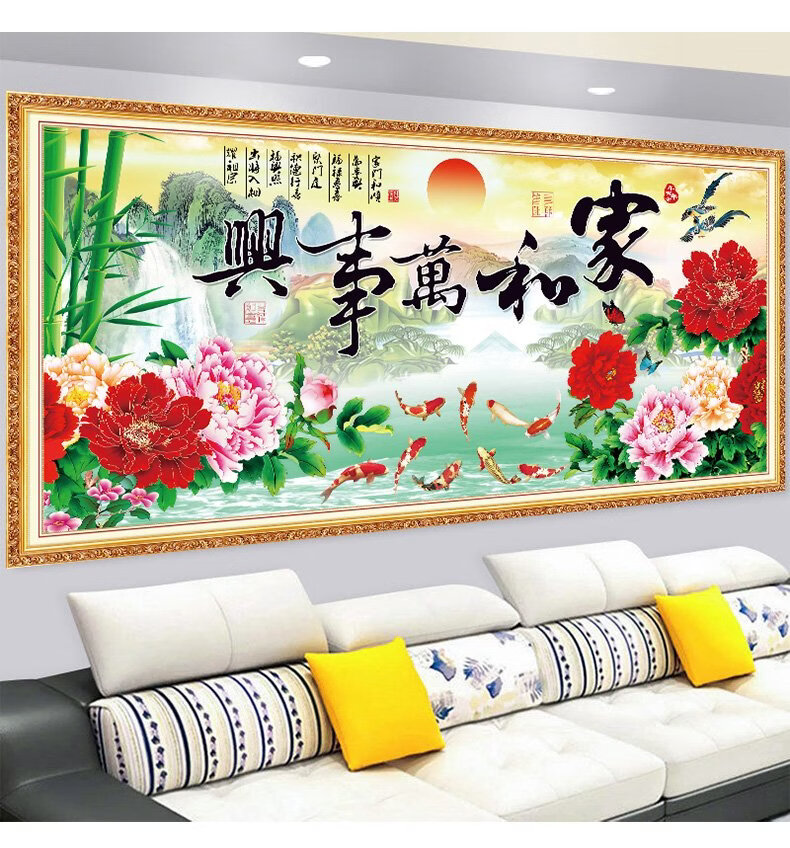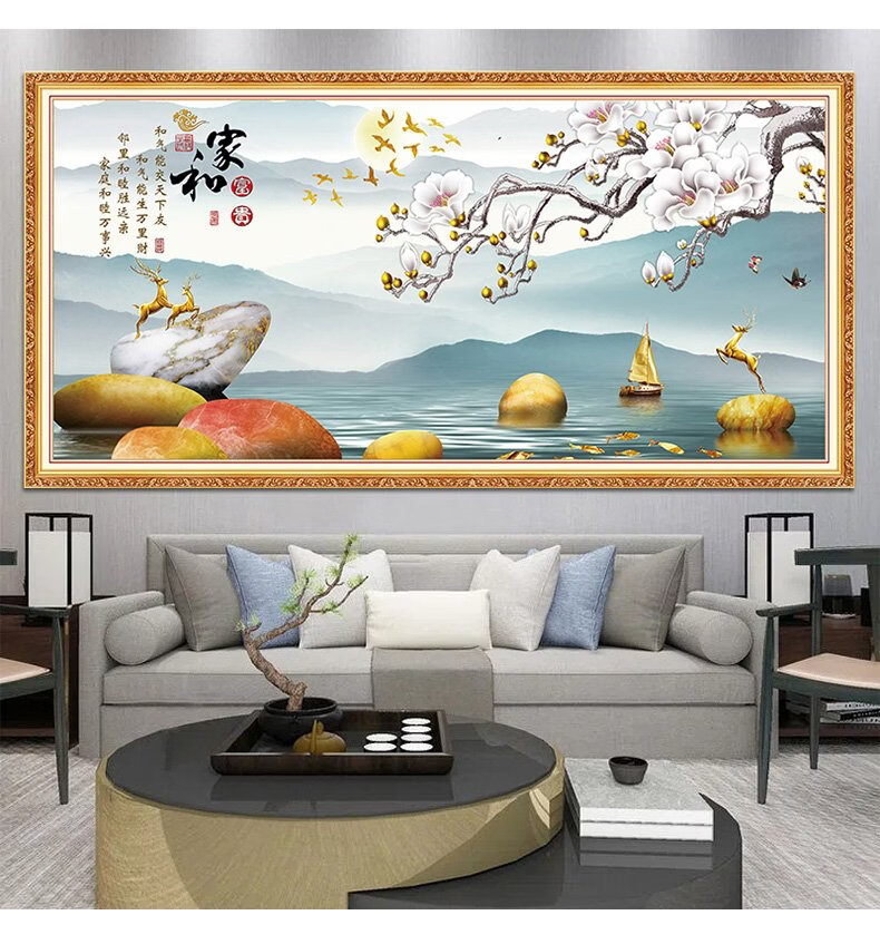 客厅沙发背景墙花开富贵装饰画墙贴纸山水画家和万事兴墙纸壁画 41.家和万事兴 宽256cm-高122cm