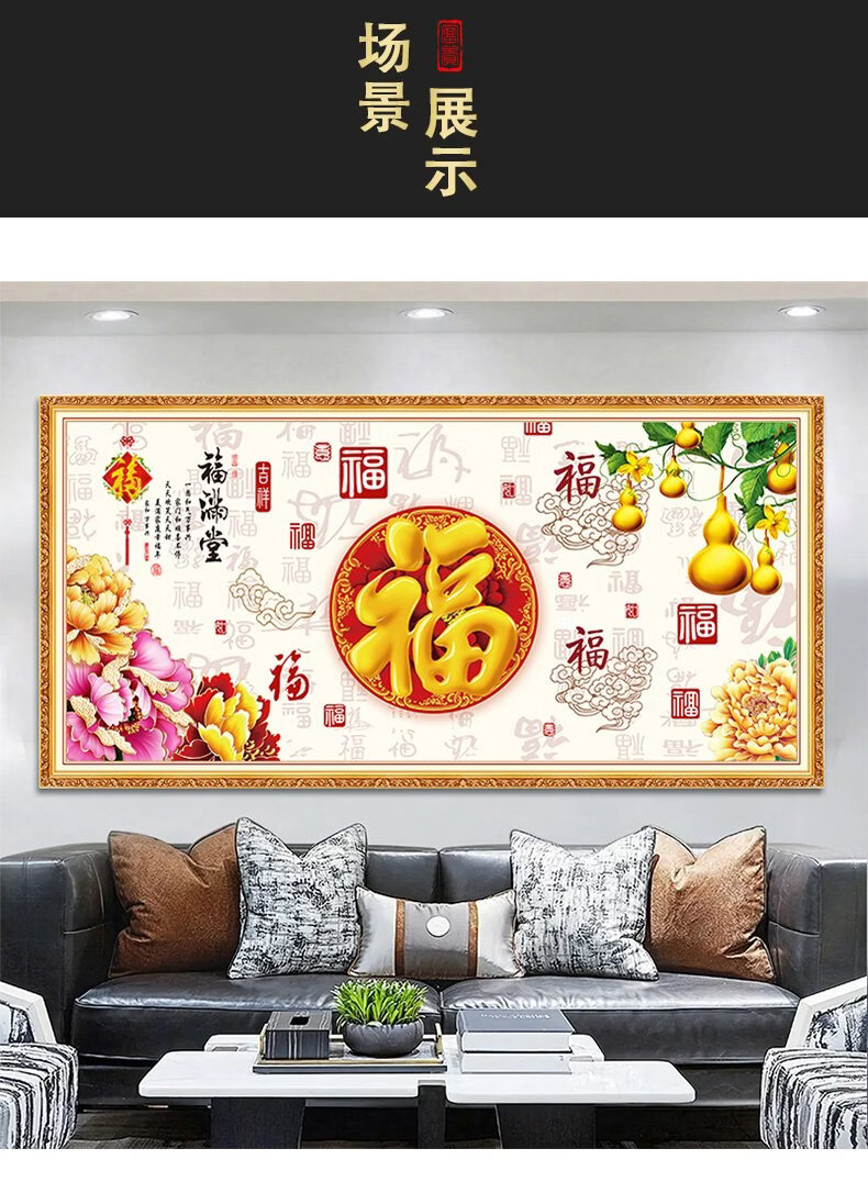 2026年新款福字入户玄关装饰画正对门自粘贴画高端客厅走廊墙壁画 百福图 宽120cm-高240cm 打印边框