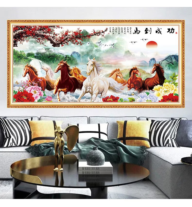 柳莺花燕流水生财客厅挂画新中式沙发背景墙国画办公室装饰字画山水画壁画 旭日东升 100cm*200cm【铝合金框】 画布纹理【画面】
