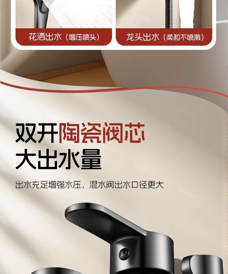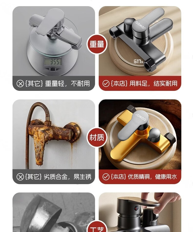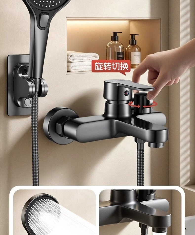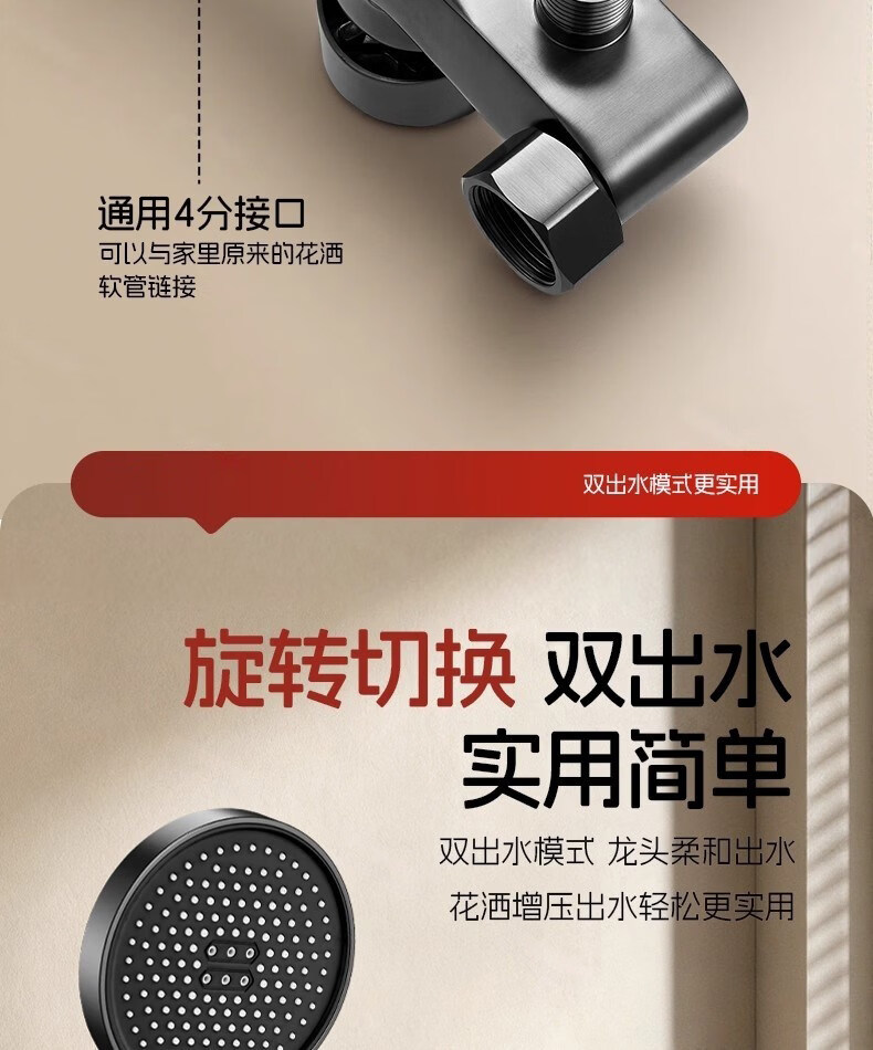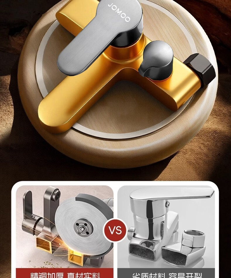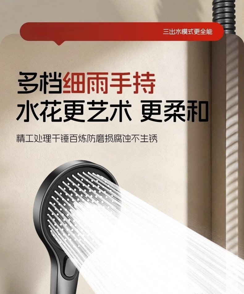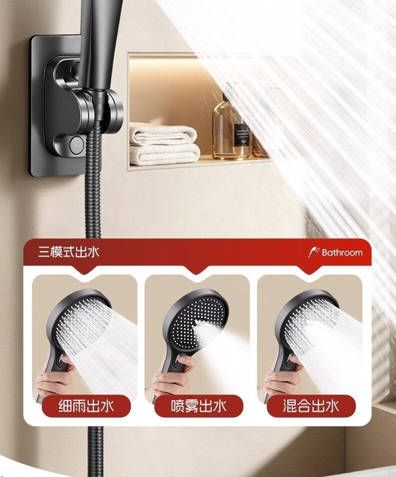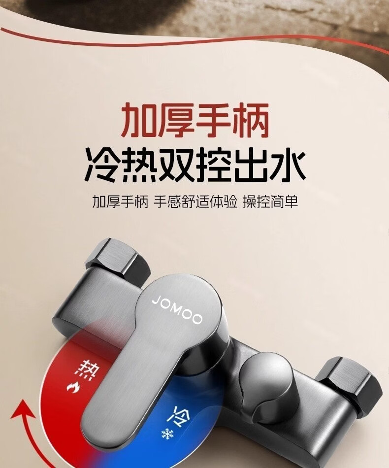 九牧(JOMOO)浴花洒套装卫浴室家用三联增压混水阀套装水龙头一体式 银色-简易侧开【三挡支架套装】
