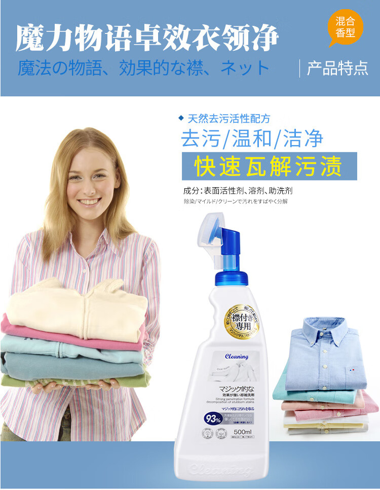 衣飞扬日本小林衣领净深层去渍袖口衣领羽绒服清洁剂雪地靴助洗剂 衣领净500ml*1瓶