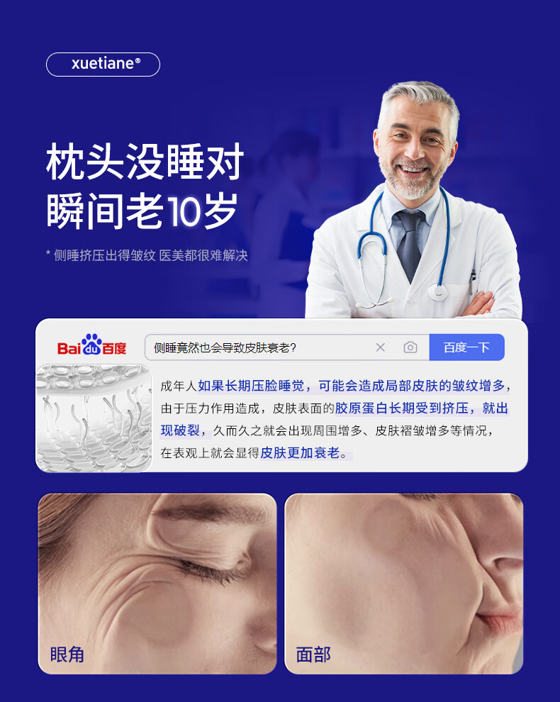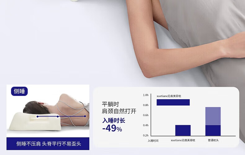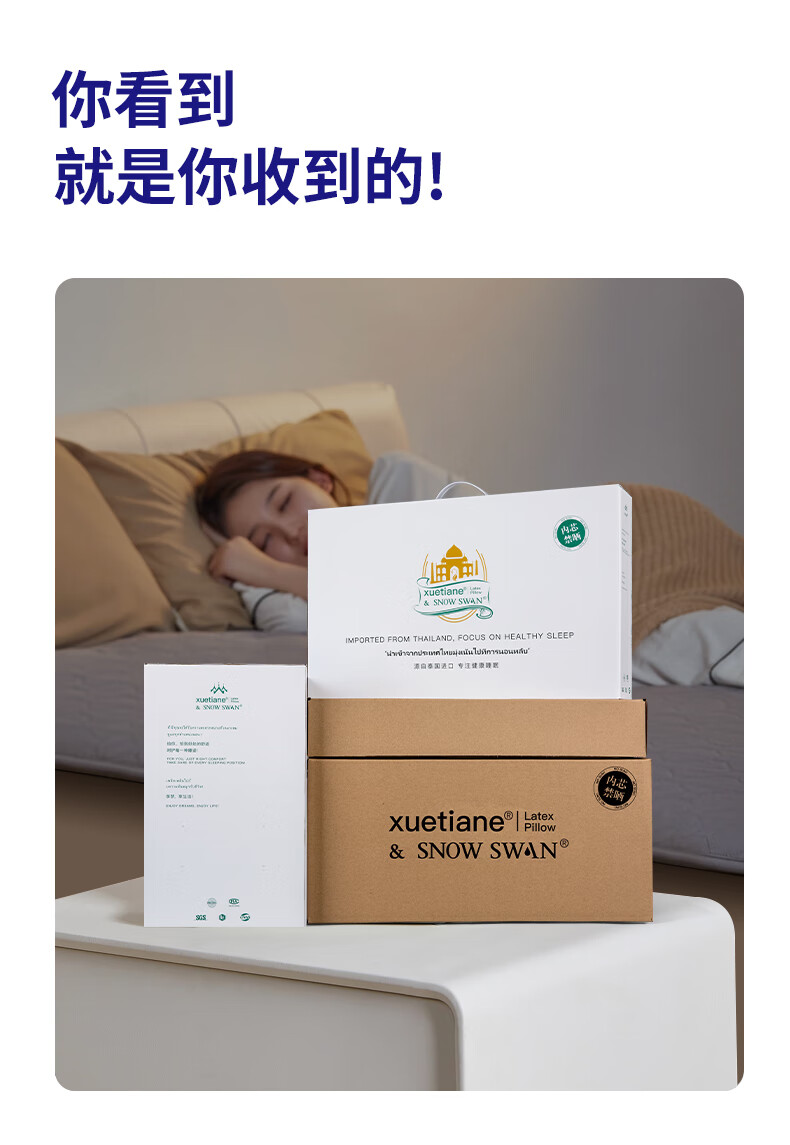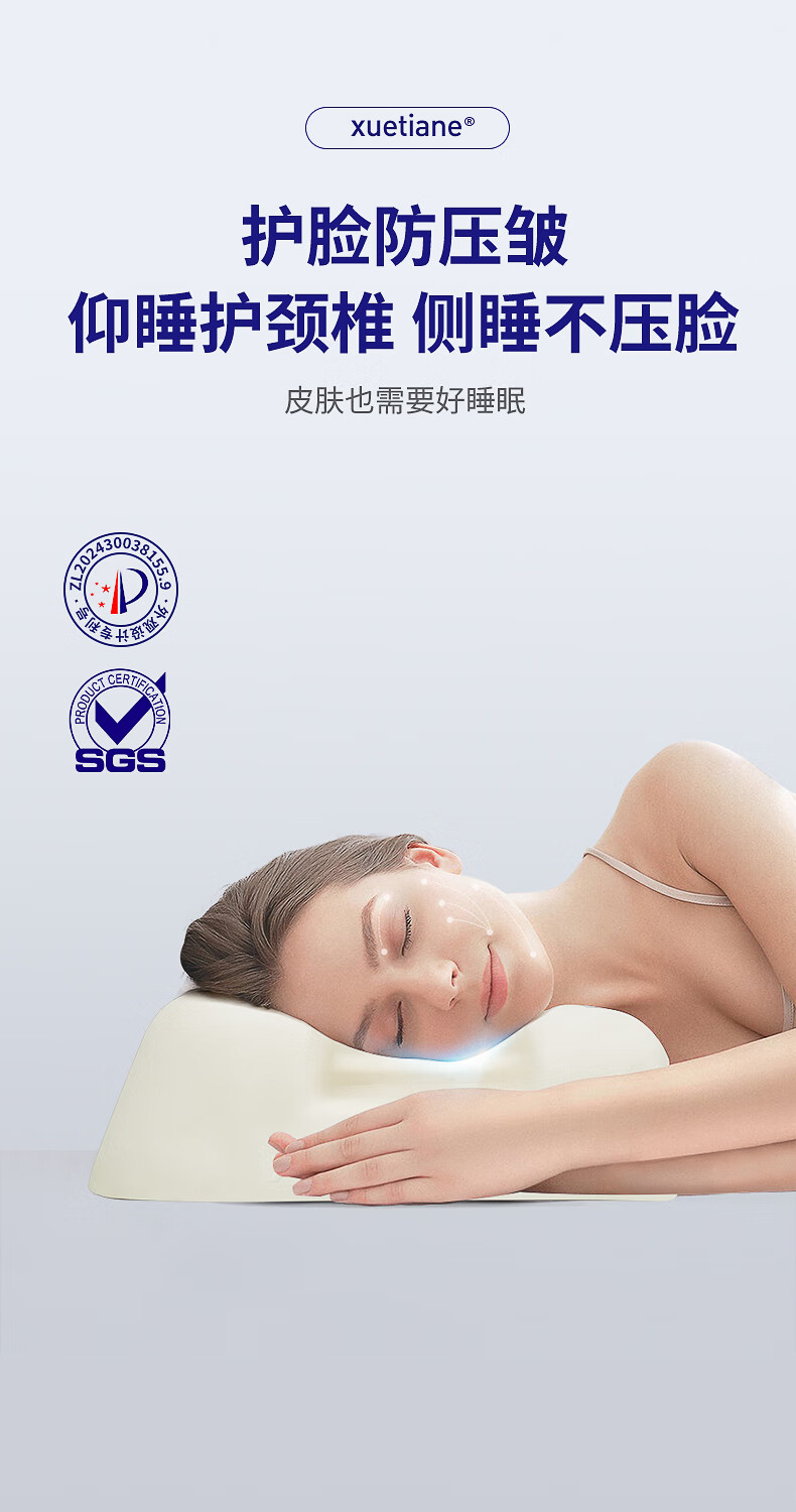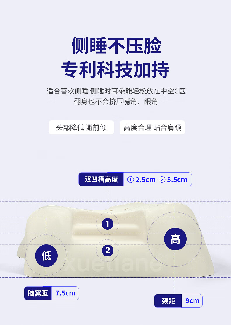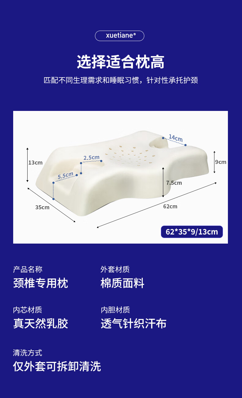 雪天鹅(XUETIANE)天然乳胶枕颈椎头美容侧睡不压脸耳防皱法令纹专用护颈枕 62*35*9/13CM【配天鹅白枕套】 单只