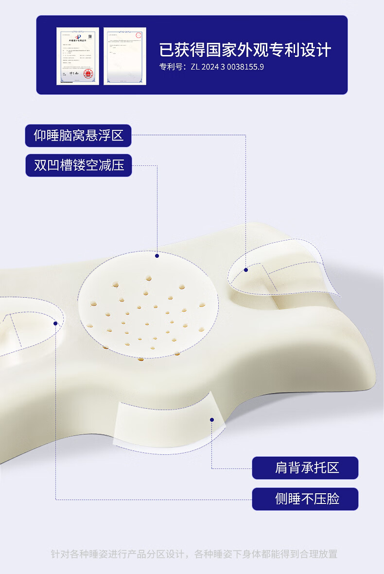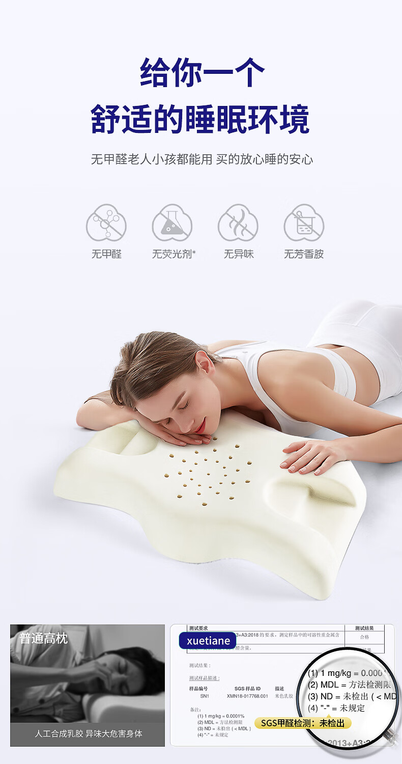 索斐(SUOFEI)泰国原装进口纯天然乳胶枕头橡胶枕肩颈按摩枕微瑕疵不影响使用 矮平滑畅享款60*37*8/10(瑕疵款)