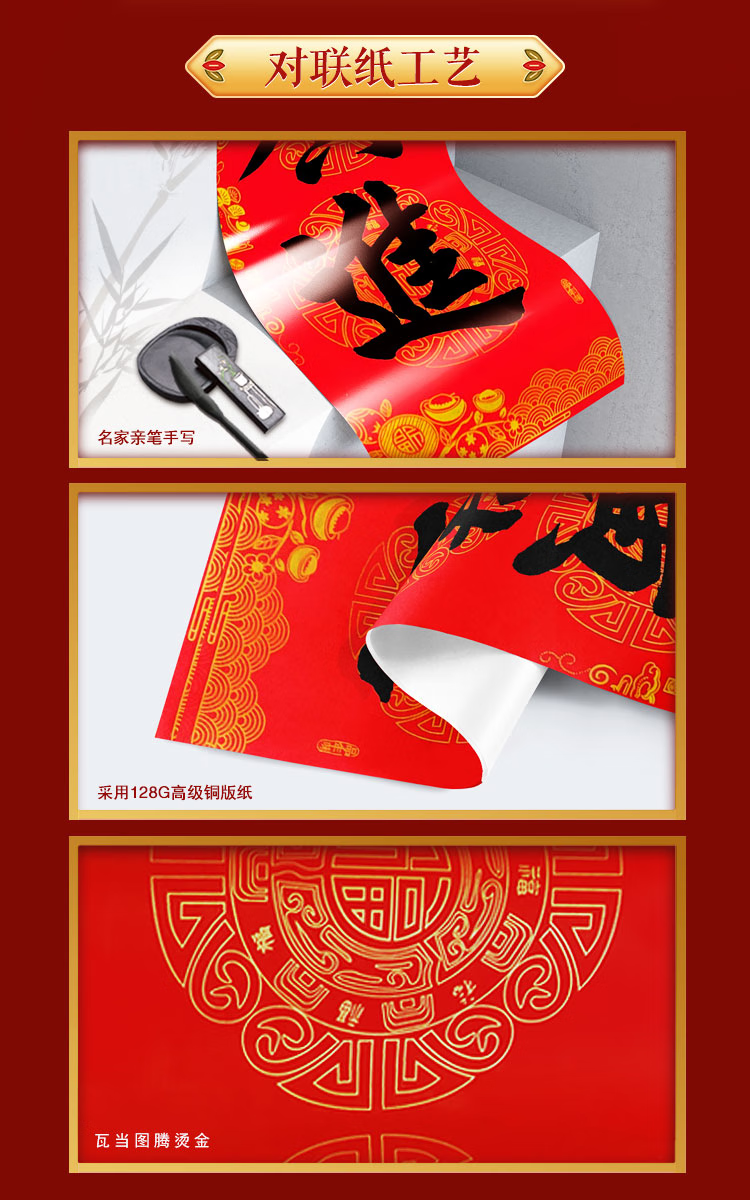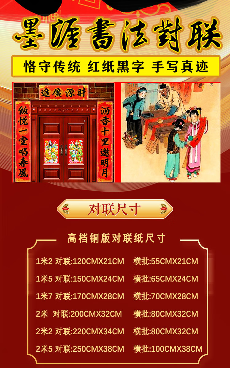 手写定制对联新款2026马年春联装饰门贴书法黑字门联生意对联贴纸 福满华堂添富贵,财临吉宅永平安 3米 宽38公分