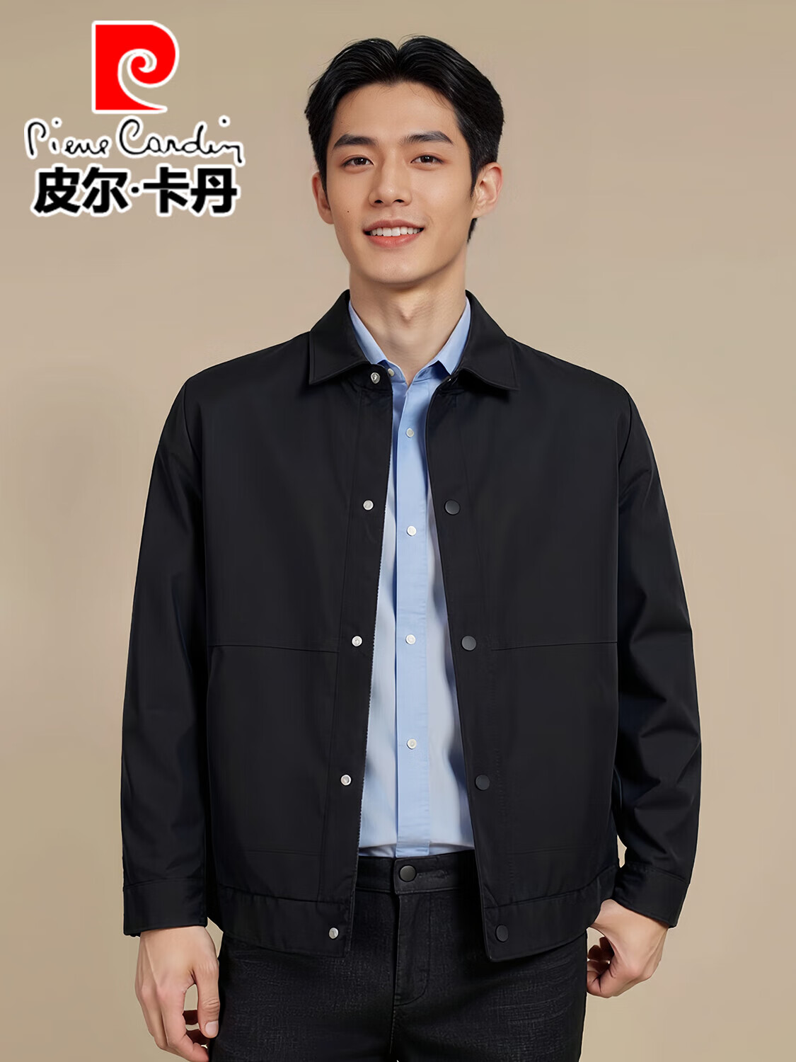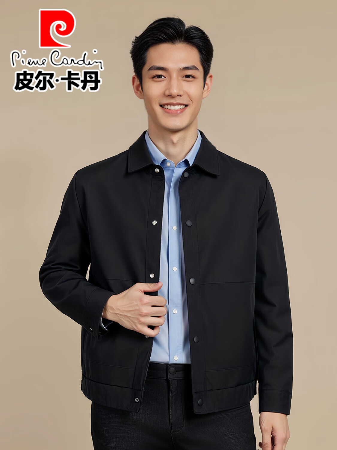 皮尔卡丹商务休闲夹克男男百搭舒适外套男秋冬季加棉保暖男装时尚男装 黑色 XL (建议120-140斤)
