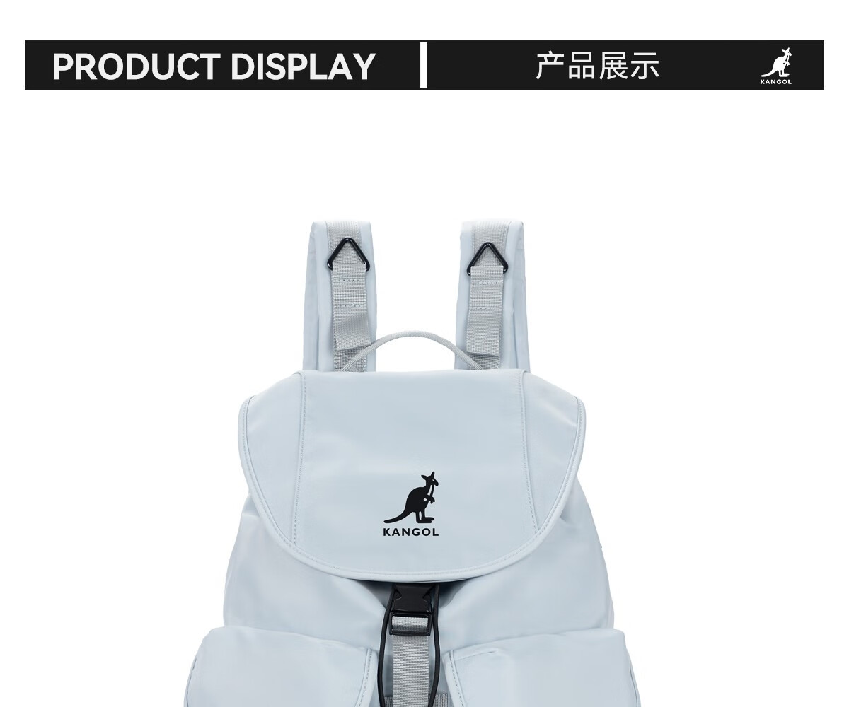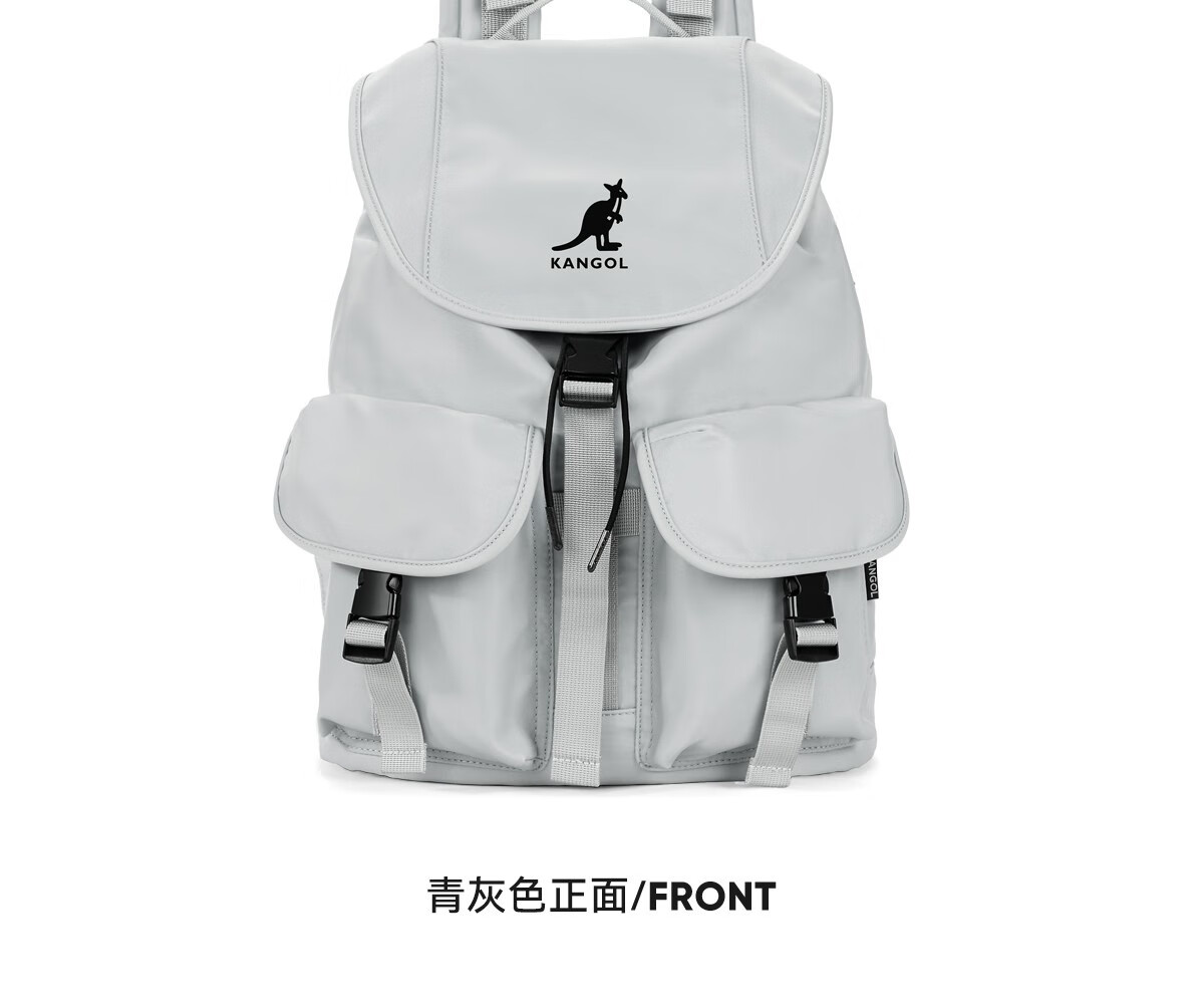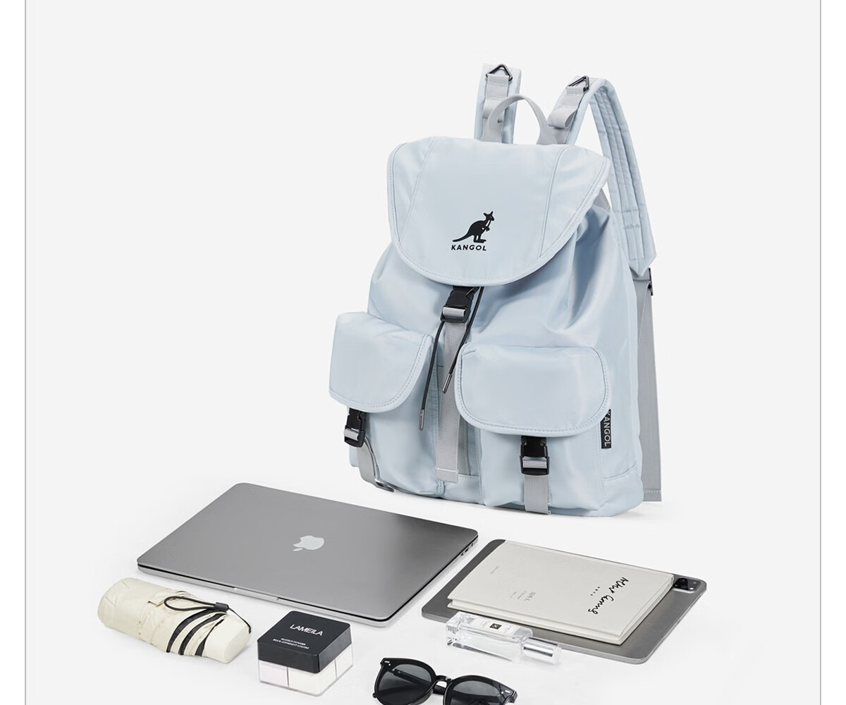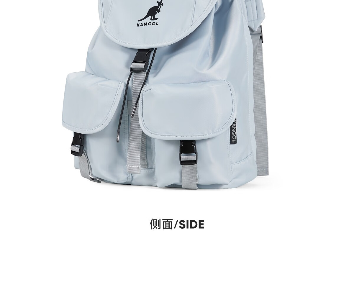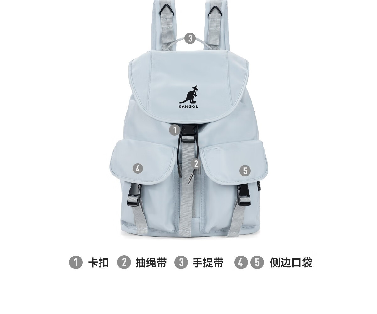 KANGOL时尚抽绳双肩包女大学生设计感旅游轻便大容量运动男生通勤背包 冰川蓝