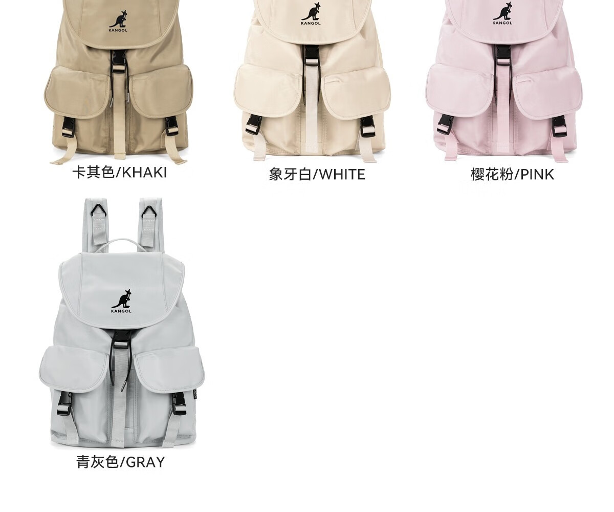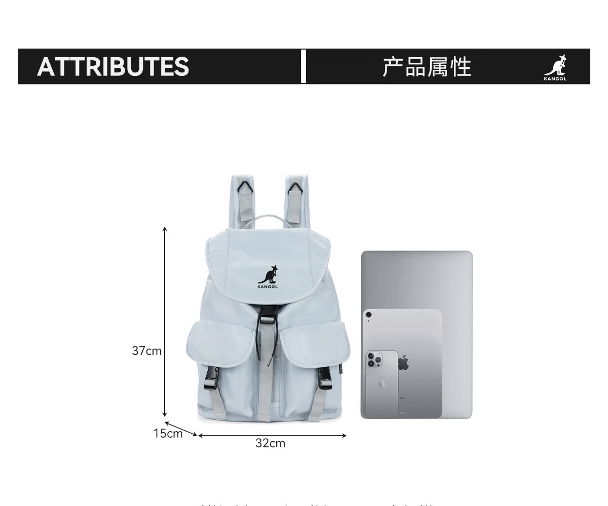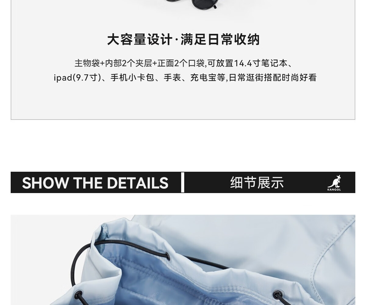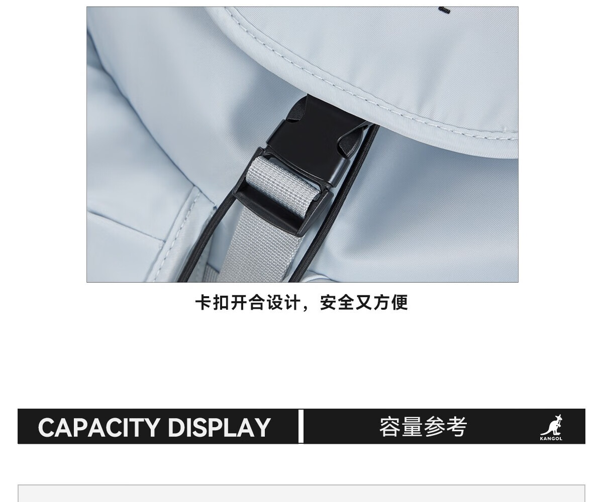 KANGOL时尚抽绳双肩包女大学生设计感旅游轻便大容量运动男生通勤背包 冰川蓝