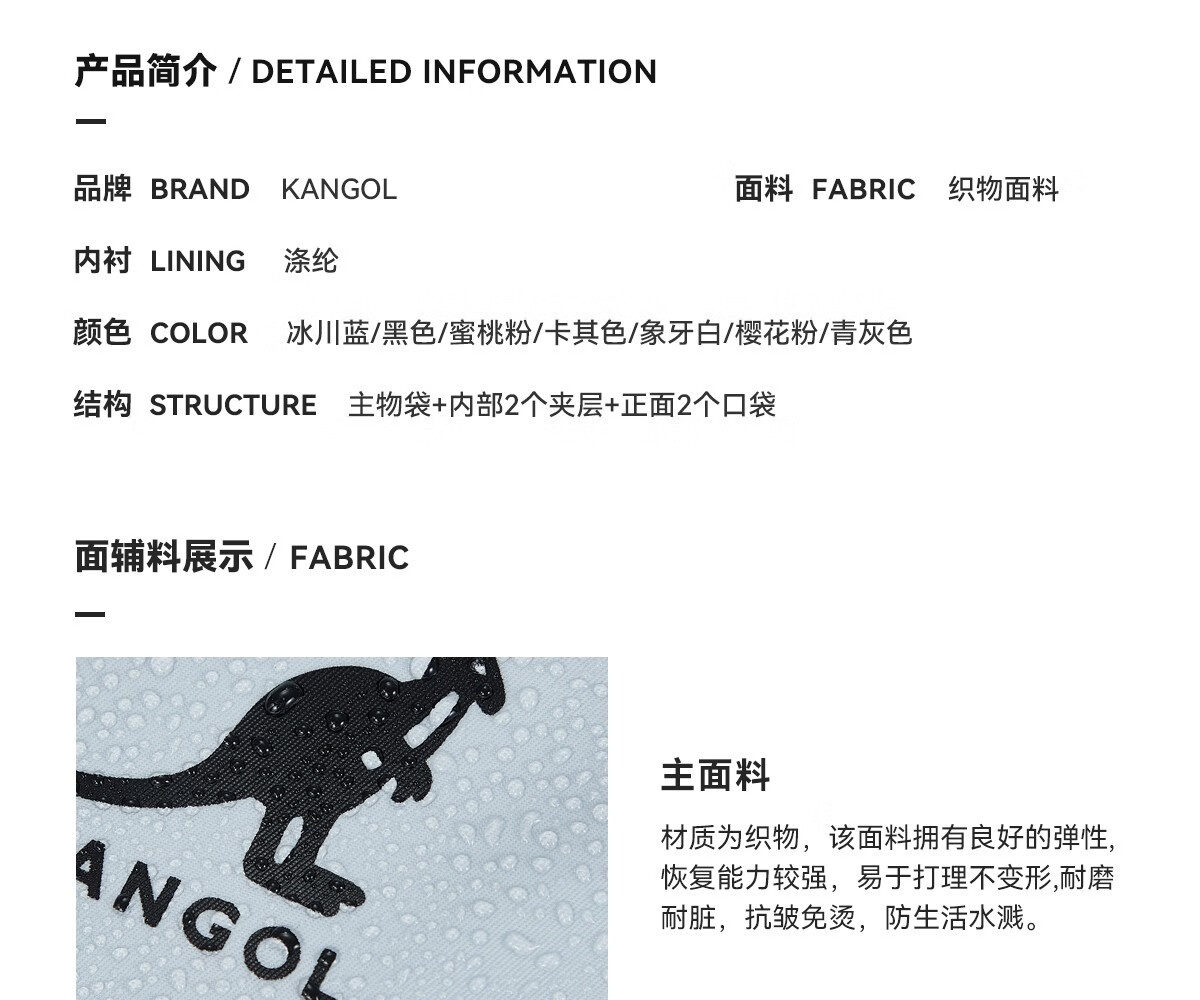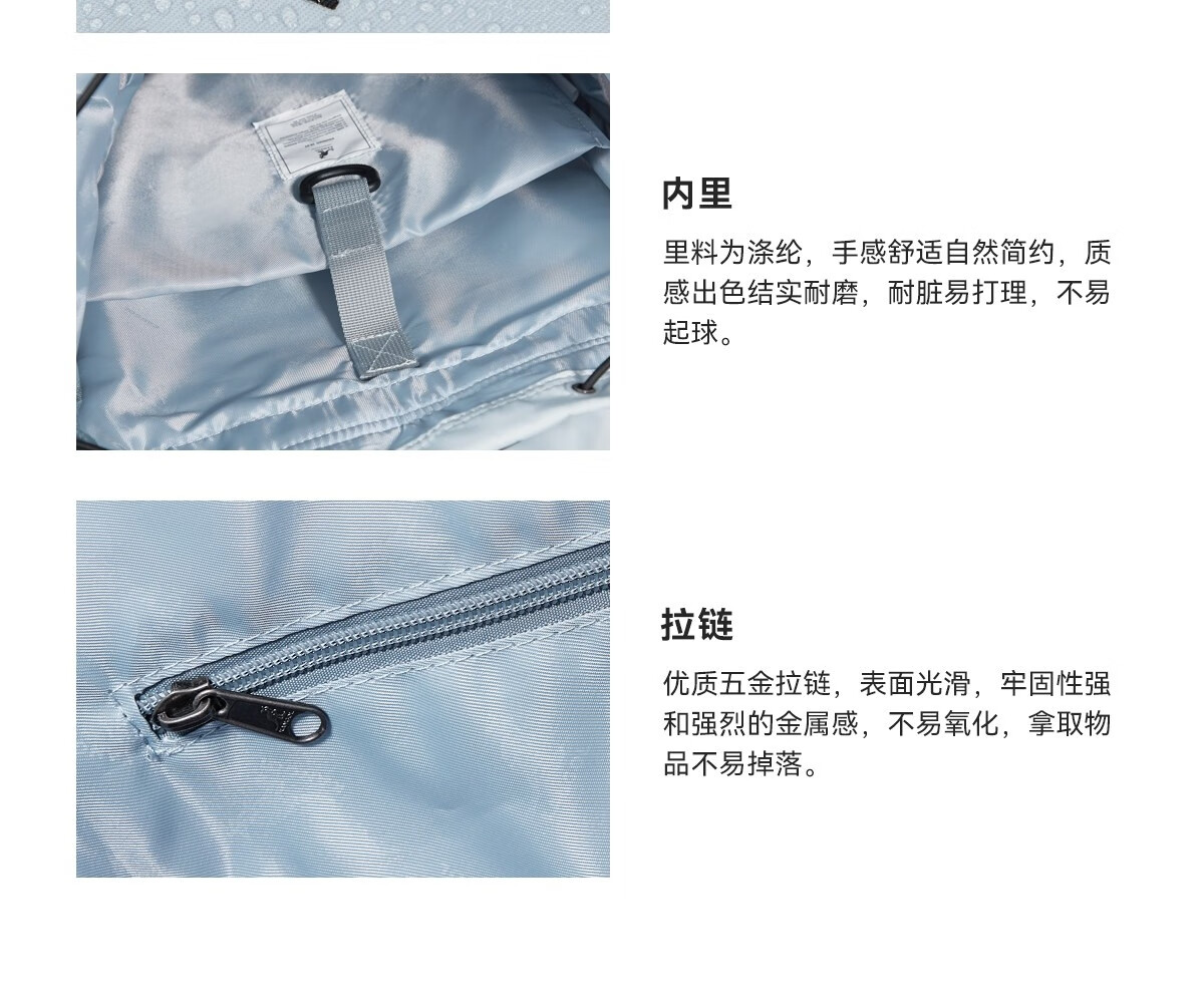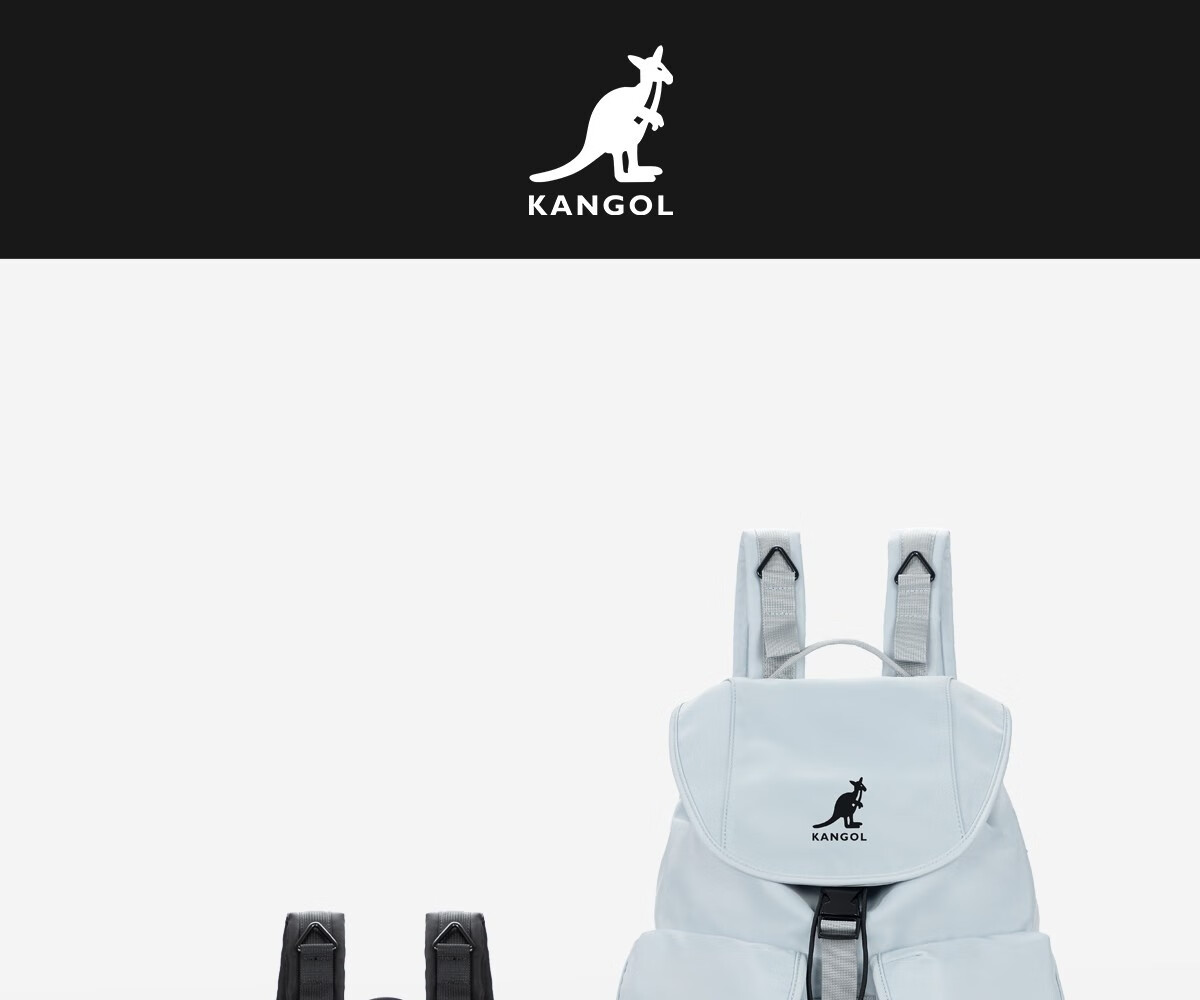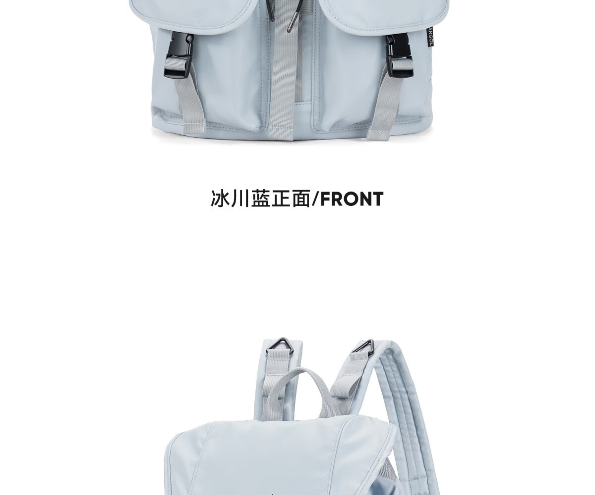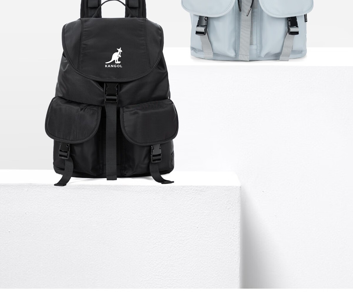 KANGOL时尚抽绳双肩包女大学生设计感旅游轻便大容量运动男生通勤背包 冰川蓝