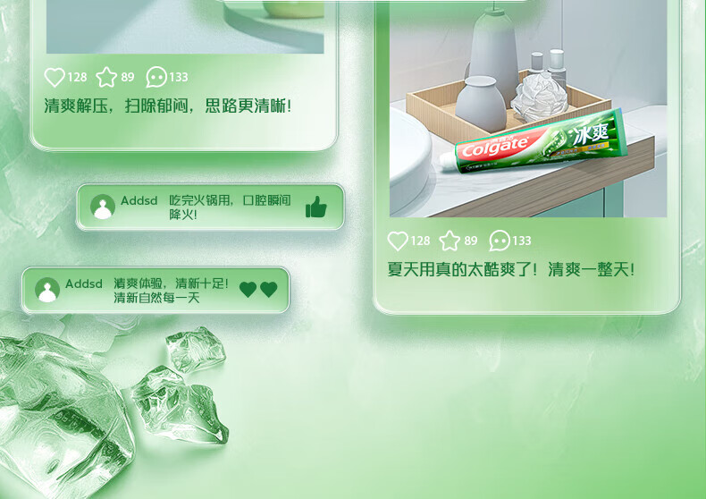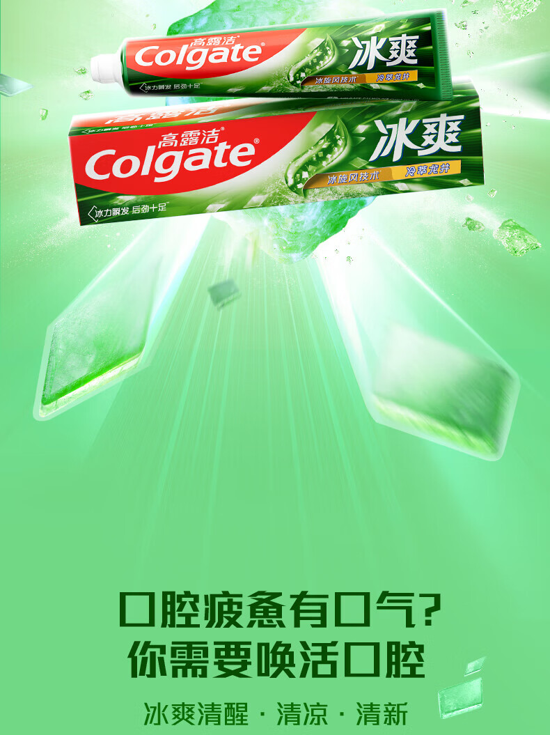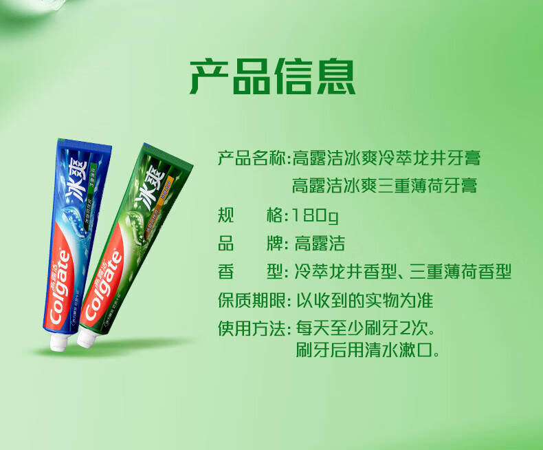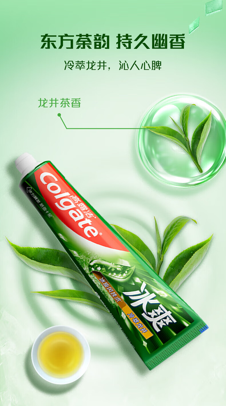 高露洁(Colgate)冰爽牙膏茶香冷萃龙井牙膏冰爽薄荷家庭装清新口气去牙渍 冰爽龙井 120g*2支 +洁银90g*2支