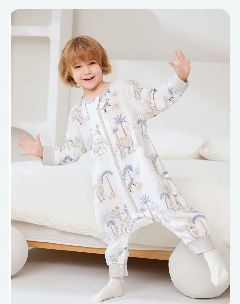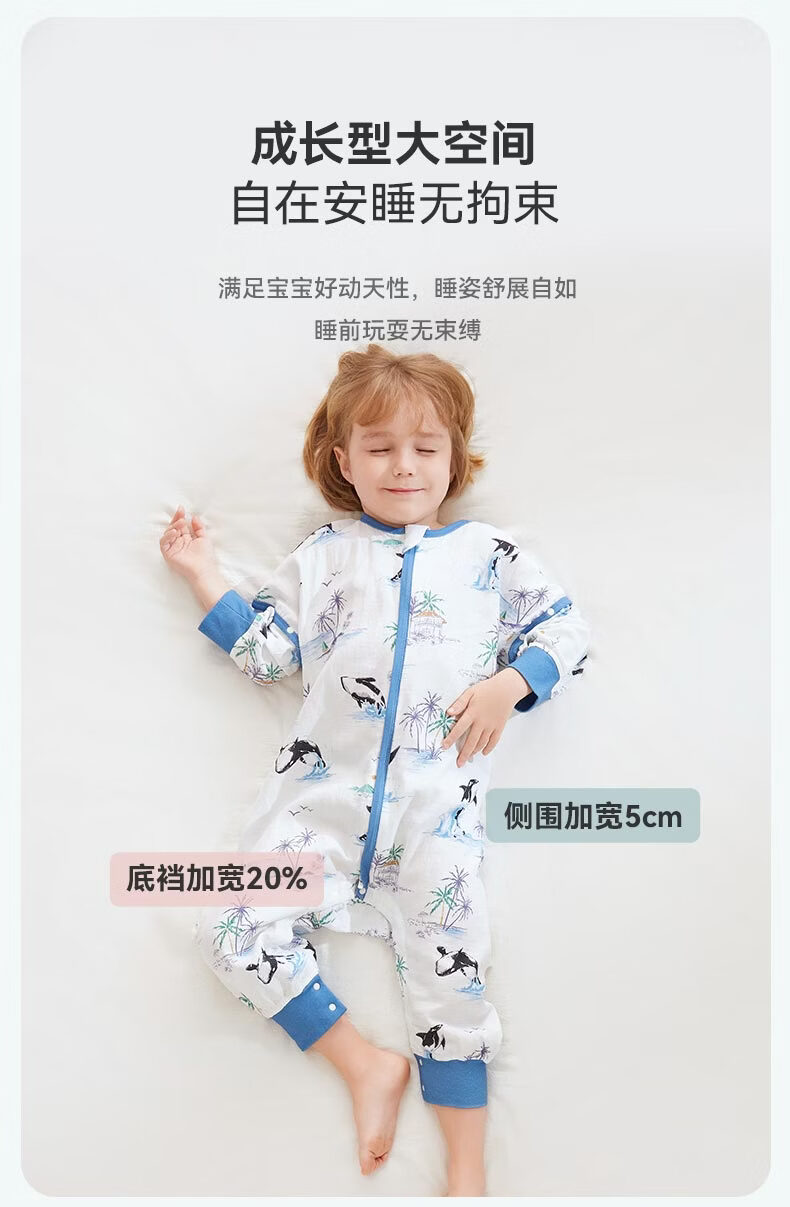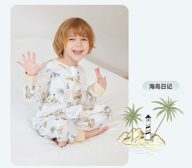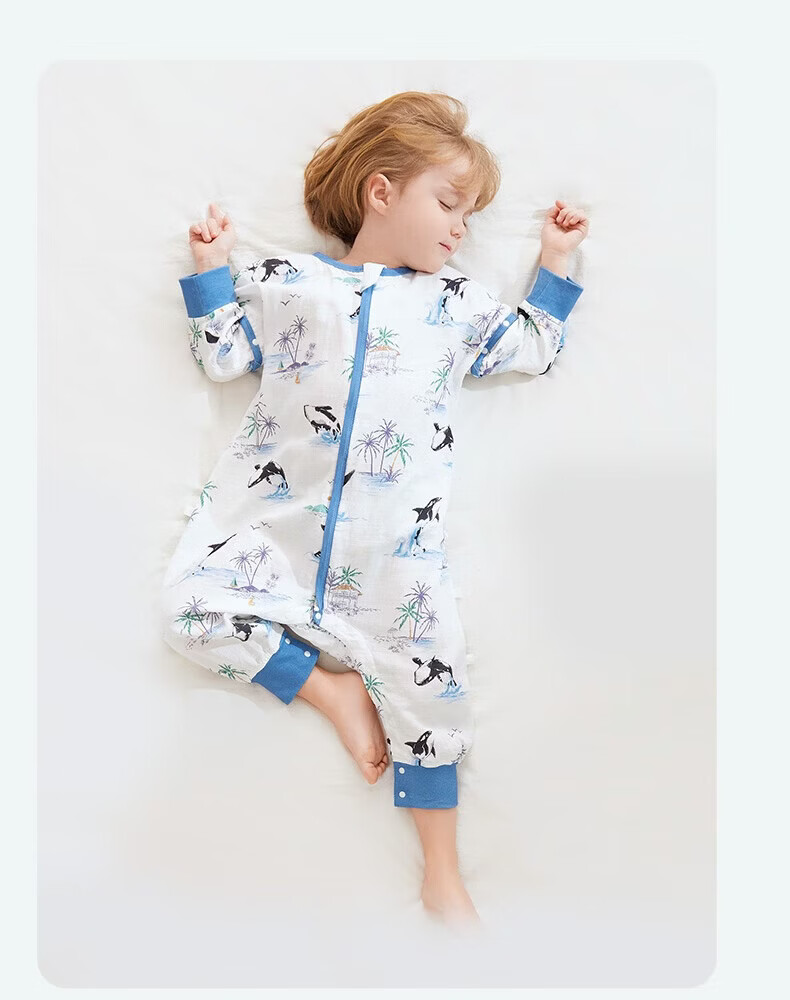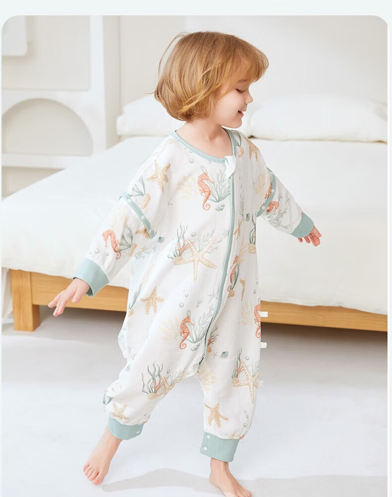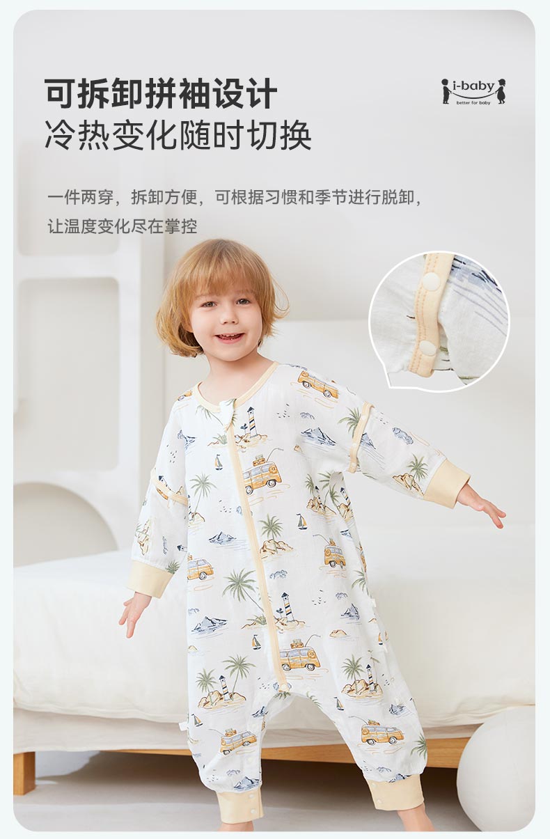 ibaby【四层纱布恒温睡袋】宝宝分腿睡袋秋季防踢被B 四层纱布-海岛日记-可拆袖(室温24-28℃) 80码