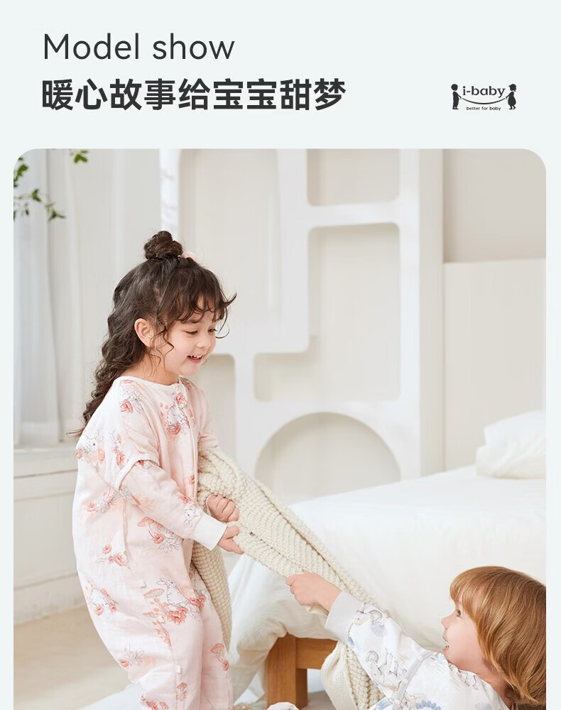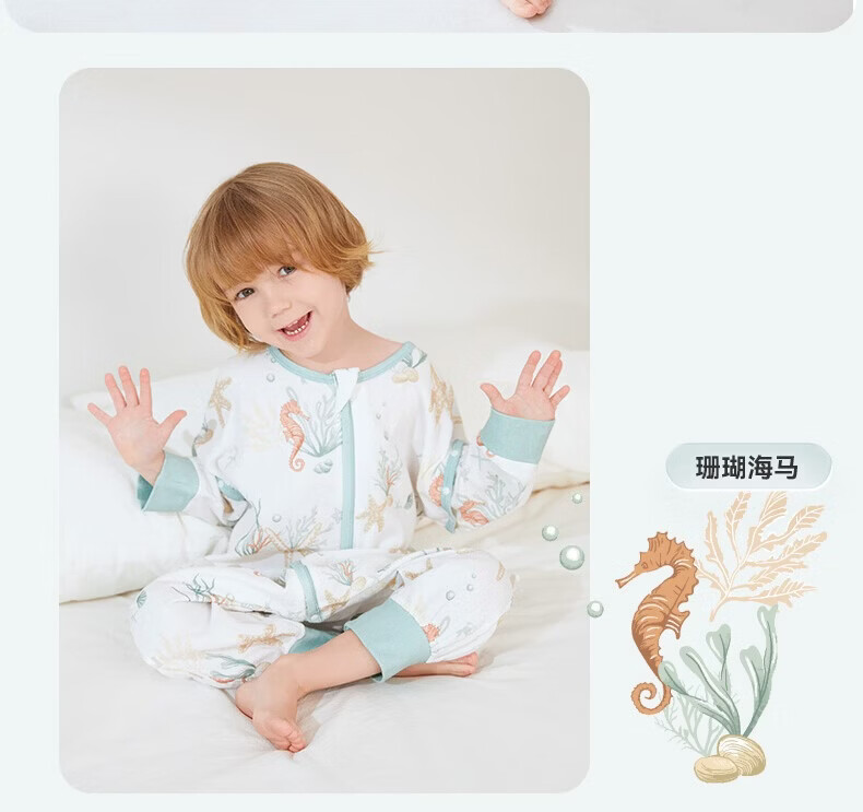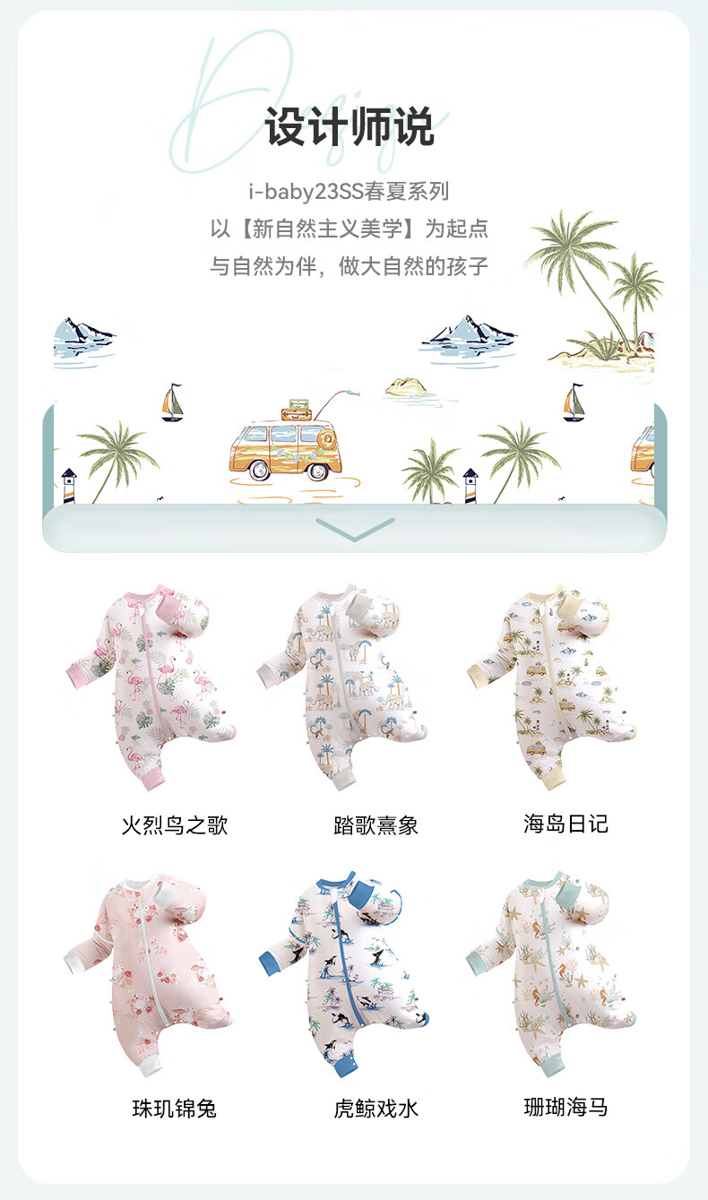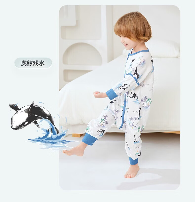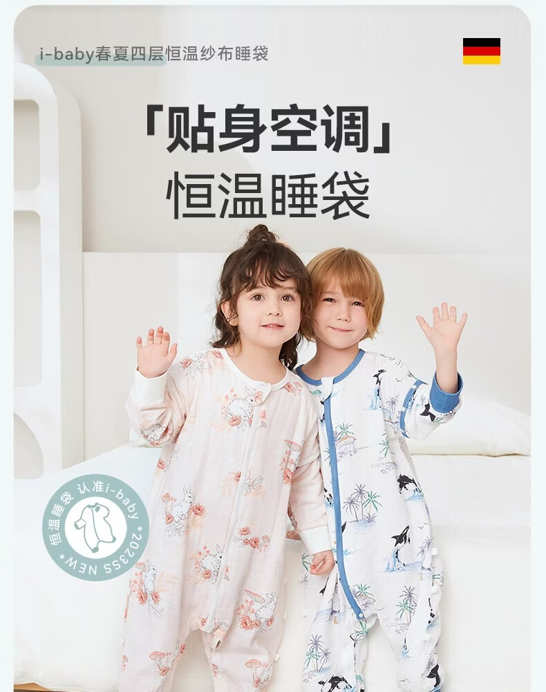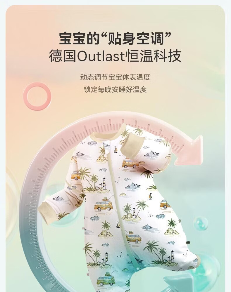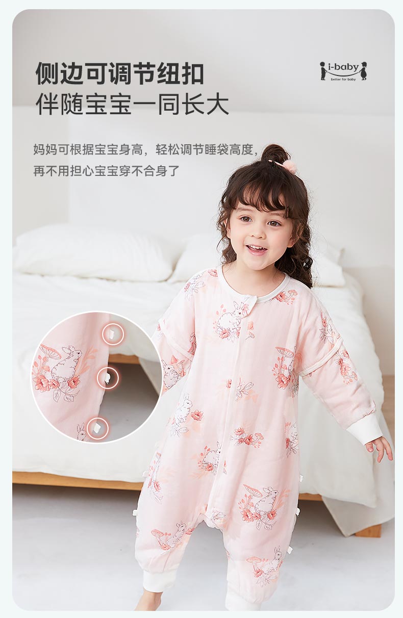 ibaby【四层纱布恒温睡袋】宝宝分腿睡袋秋季防踢被B 四层纱布-海岛日记-可拆袖(室温24-28℃) 80码