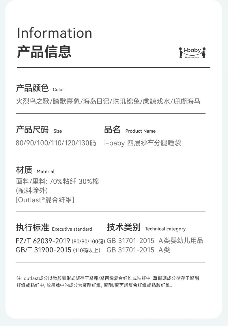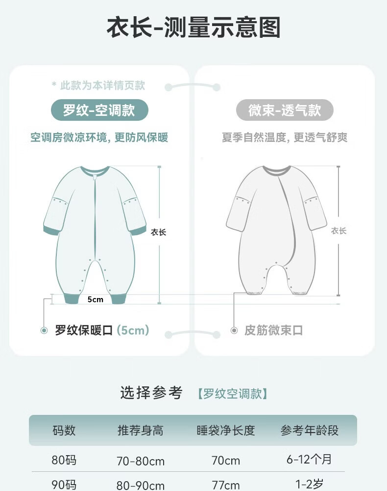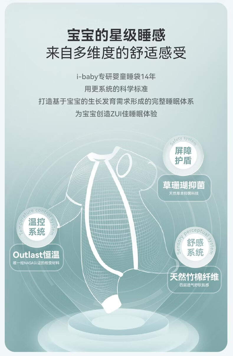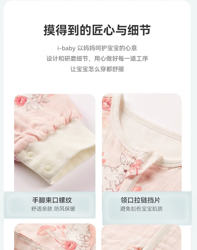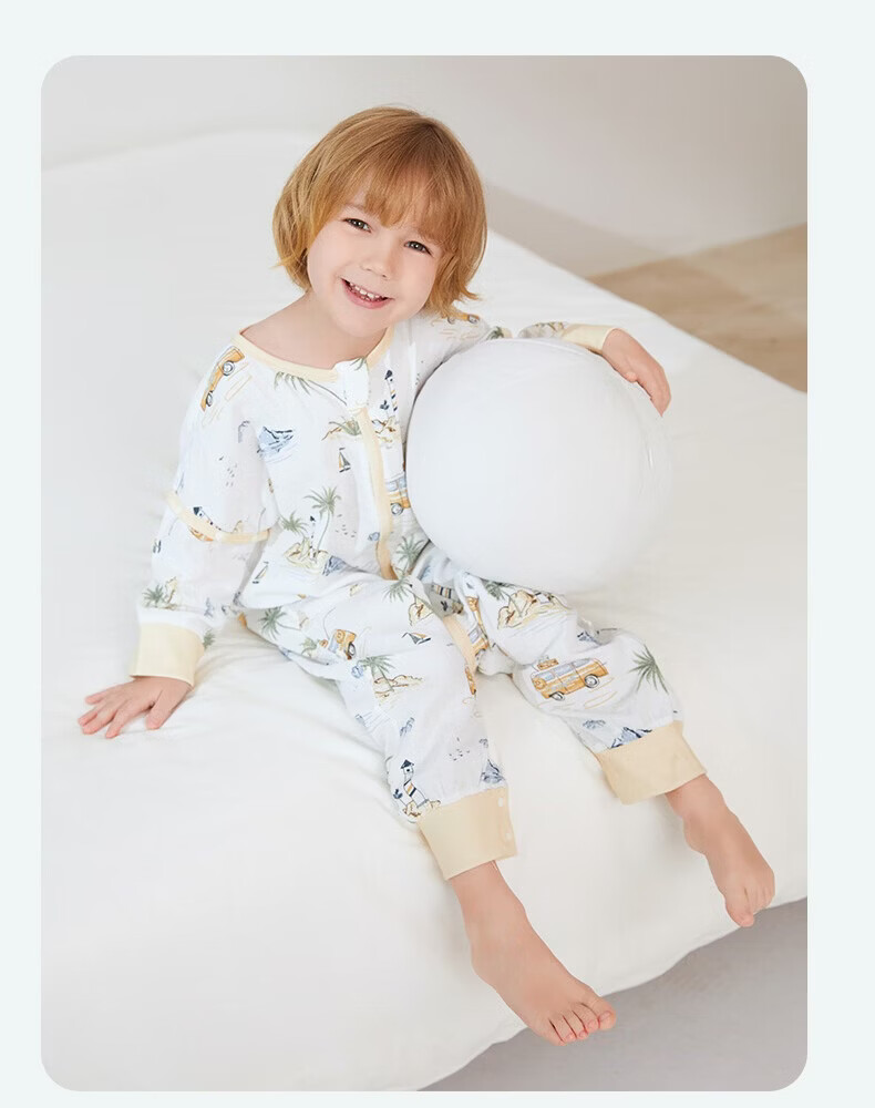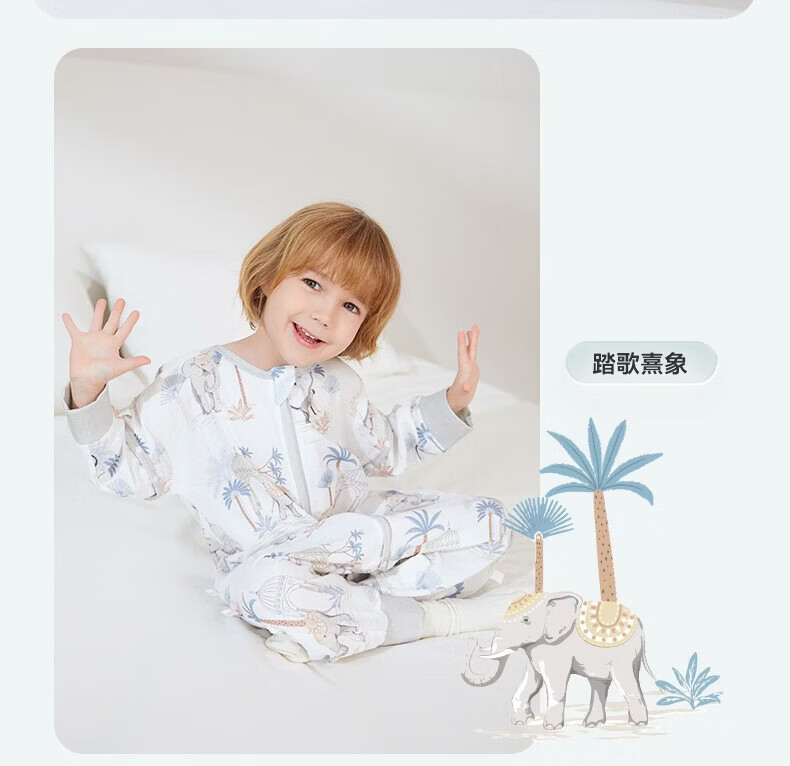 ibaby【四层纱布恒温睡袋】宝宝分腿睡袋秋季防踢被B 四层纱布-海岛日记-可拆袖(室温24-28℃) 80码