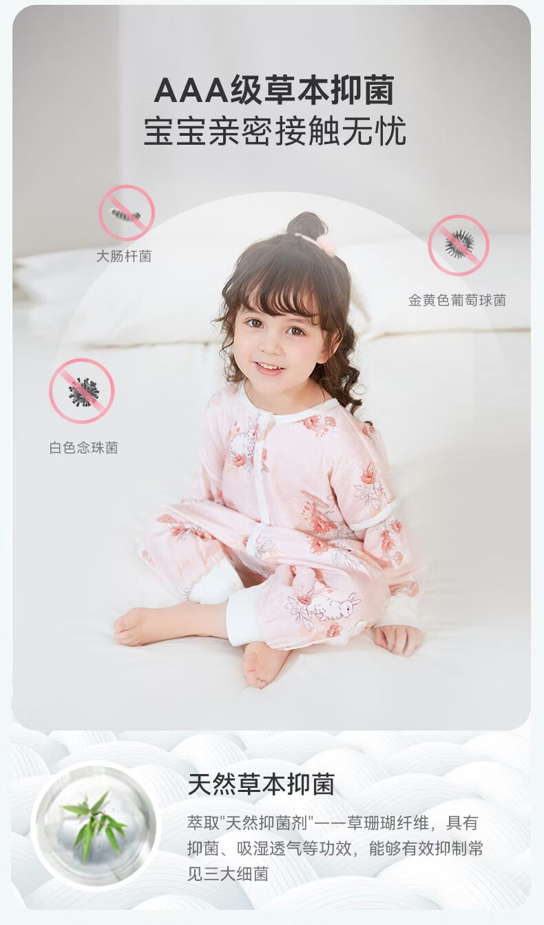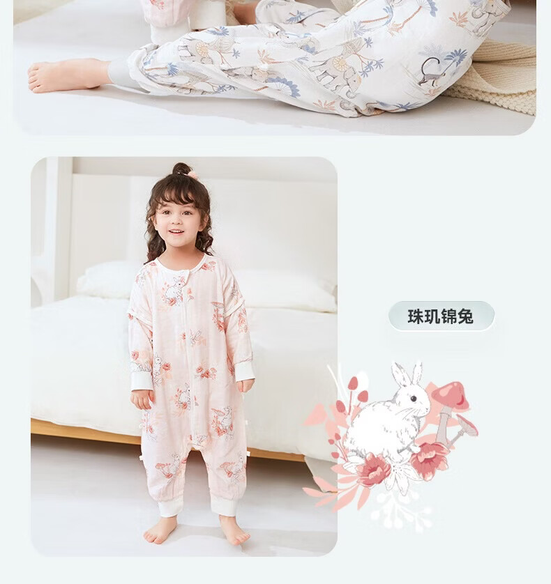欧孕(OUYUN)【小清心】婴儿睡袋秋薄竹棉纱布防踢被新生儿睡袋 熊猫乐园【前六后四】 105cm100建议身高90-(2-4岁)