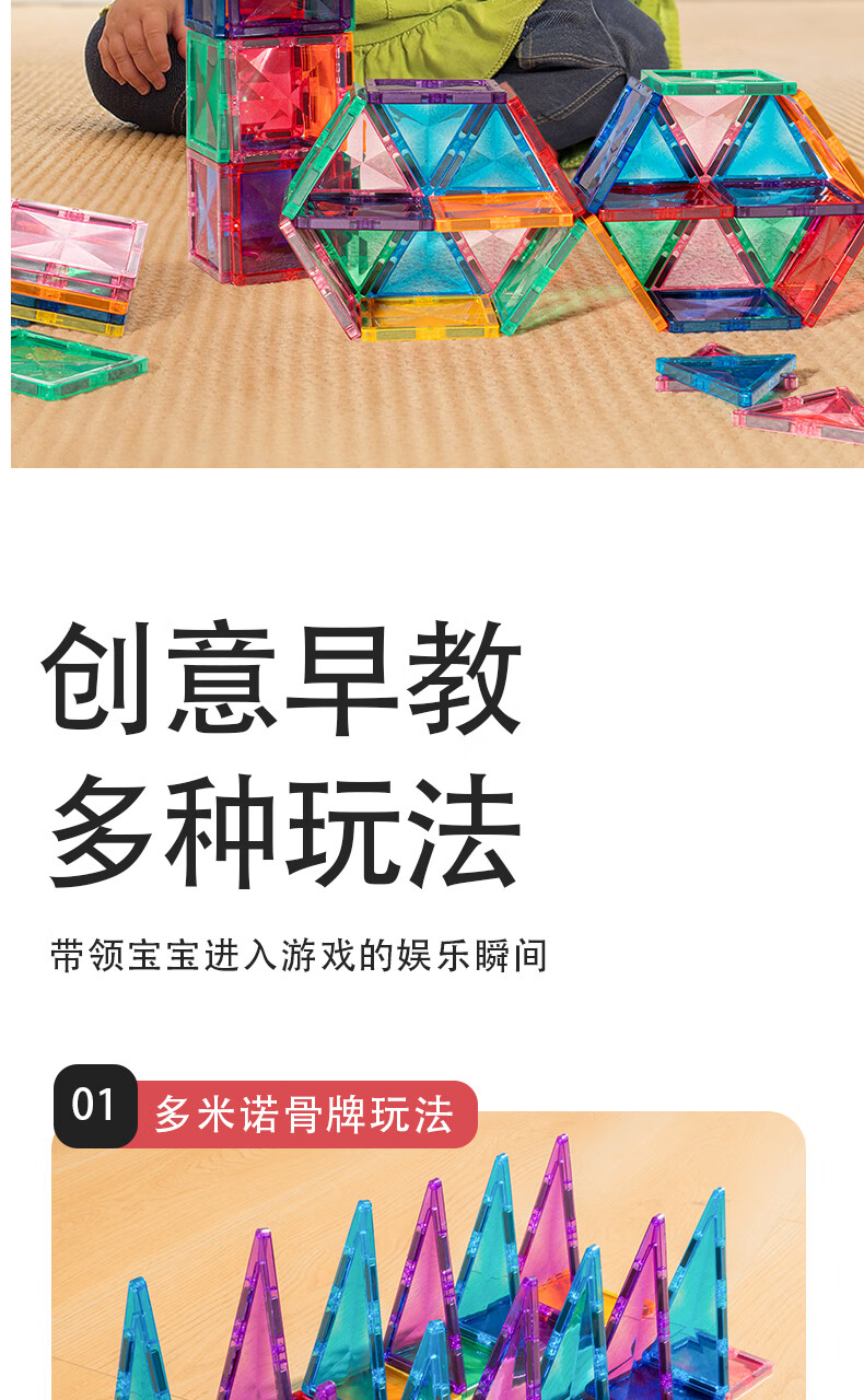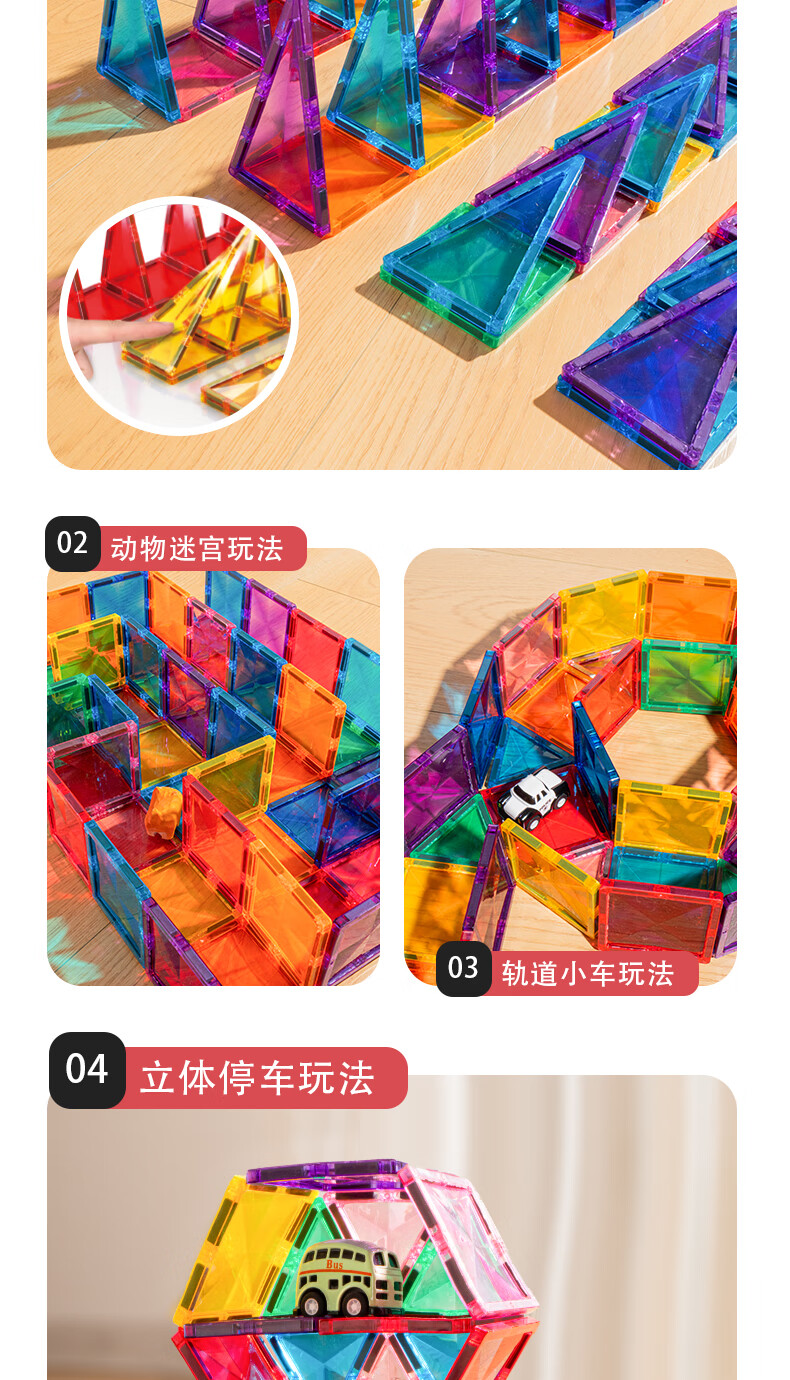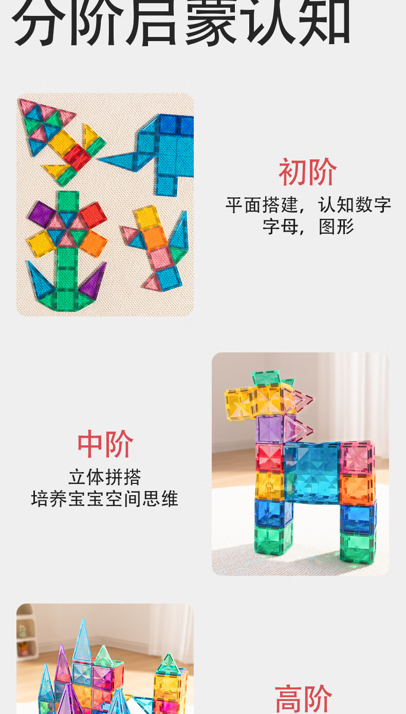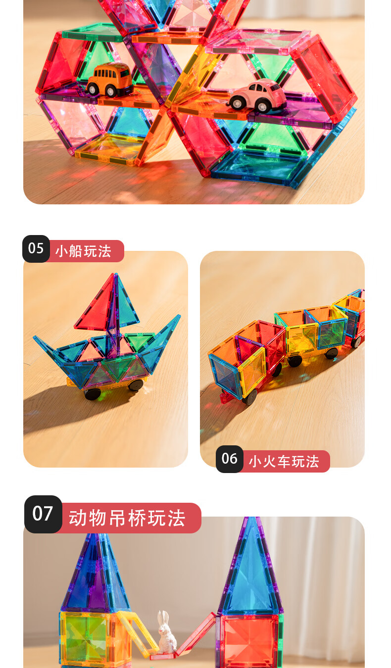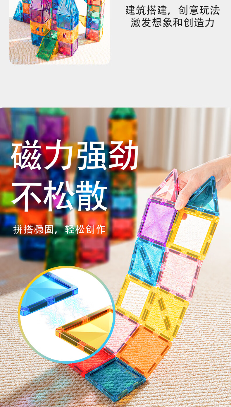 mobee儿童磁力片3-6岁男女孩生日礼物7-14岁磁铁拼装早教益智玩具马年 圣诞小镇磁力片-186套装 节日礼物 强劲磁吸 大面积防误吞