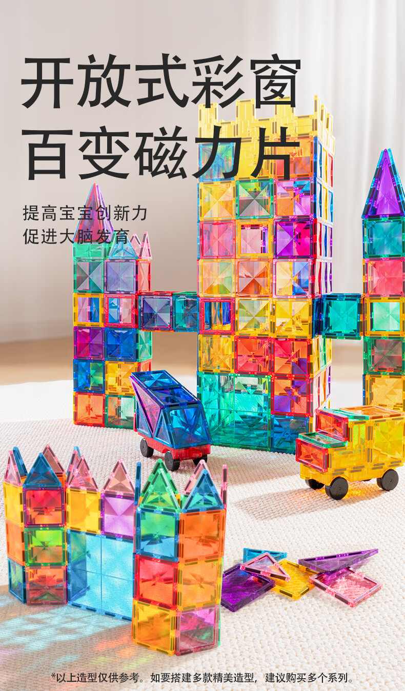 乐乐鱼(leleyu)磁力片星光钻面彩窗积木磁吸男女孩益智拼装拼图生日礼物玩具 热销:108片-双钻面彩窗【含小车*2+收纳箱】