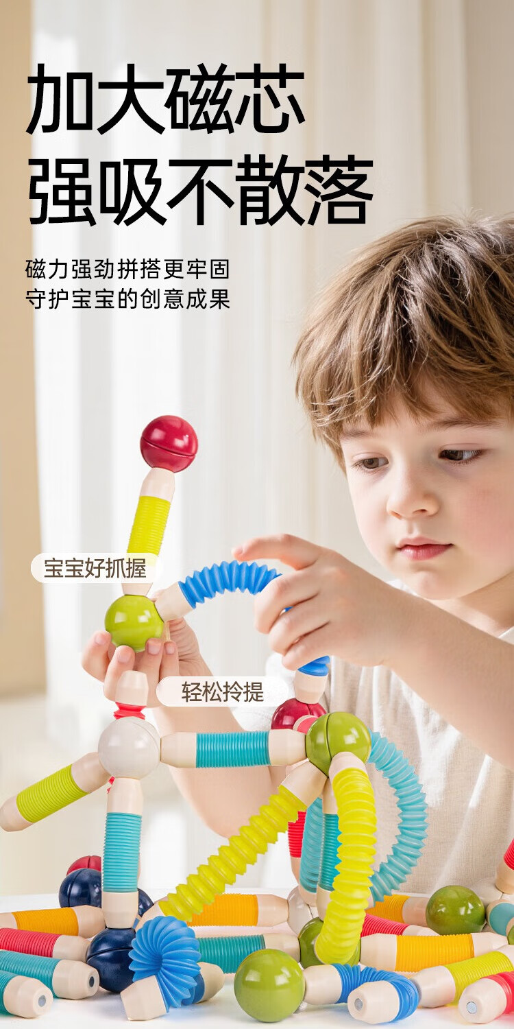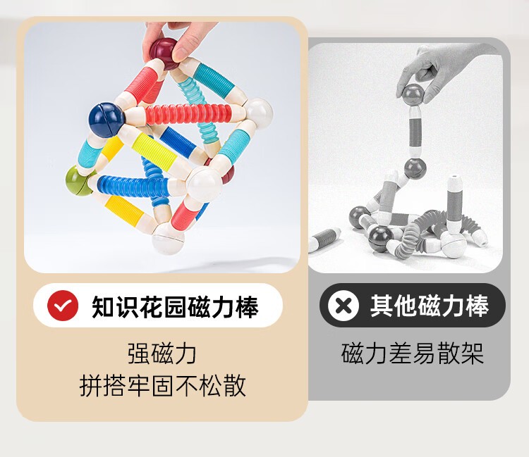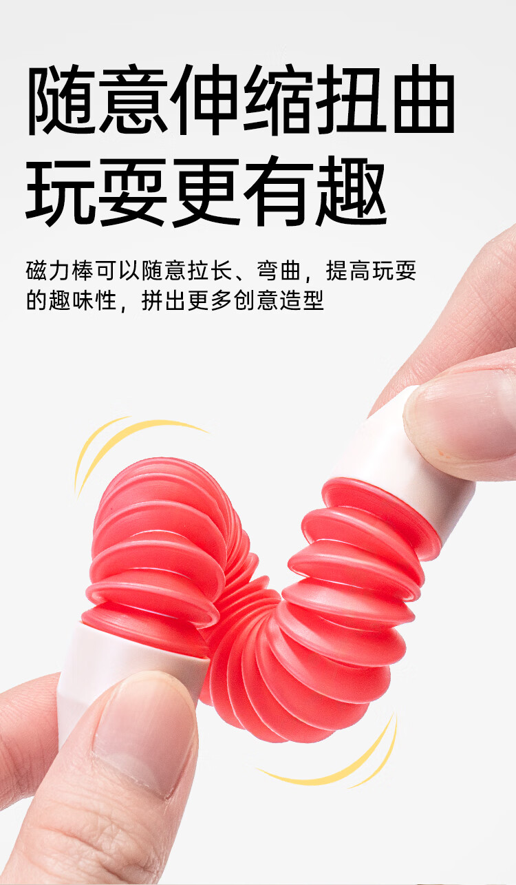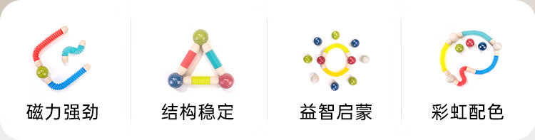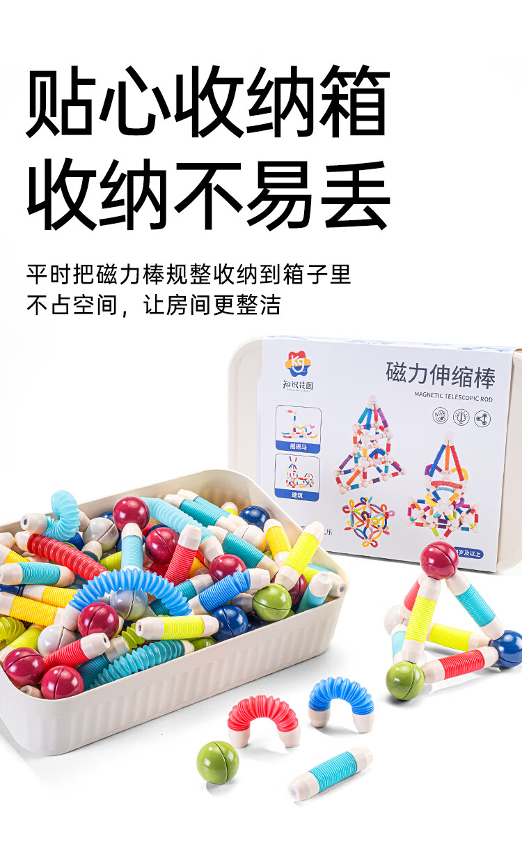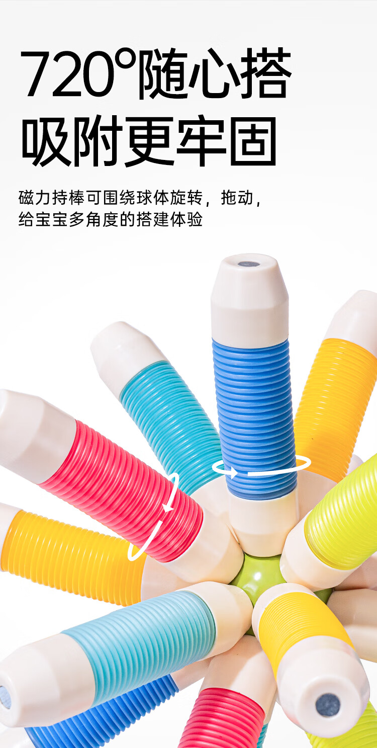 知识花园磁力片磁力棒铁球拼装儿童大尺寸7.5cm思维玩具女男孩生日礼物 磁力伸缩棒(96PCS) 彩色款