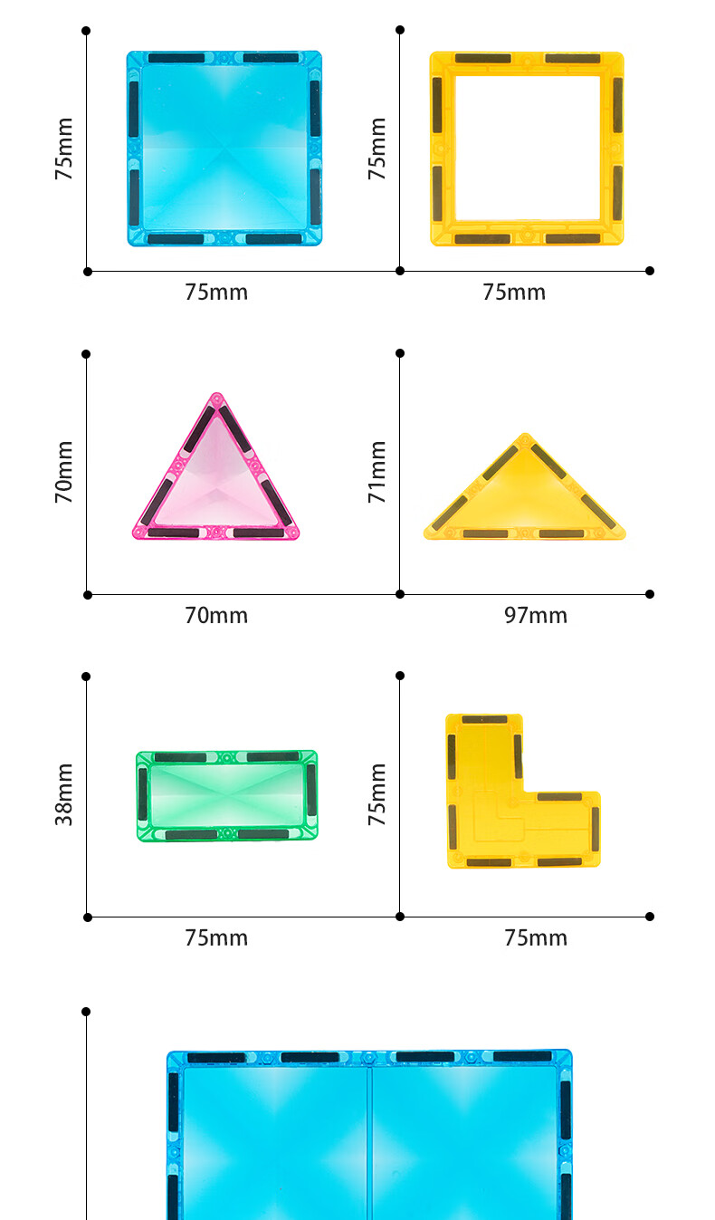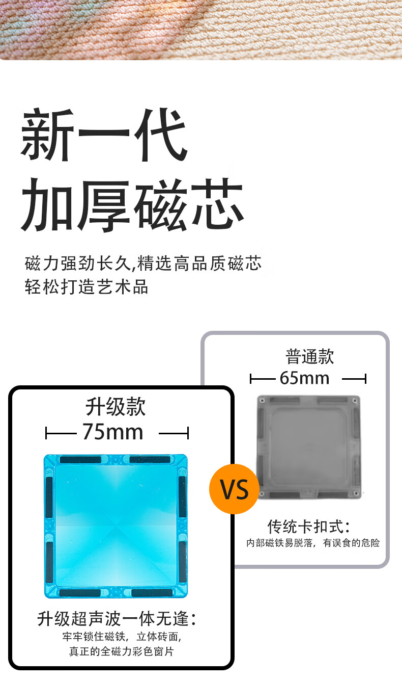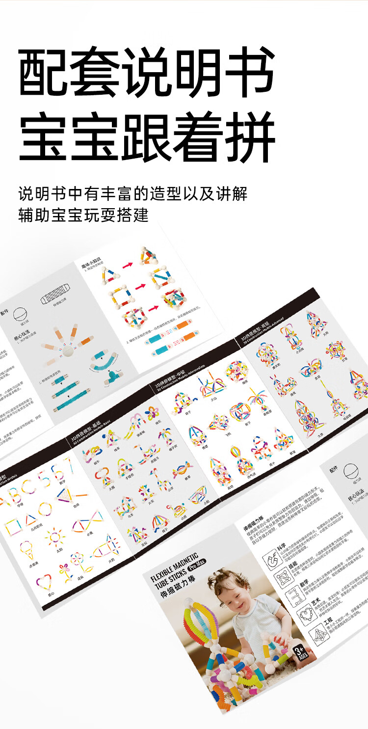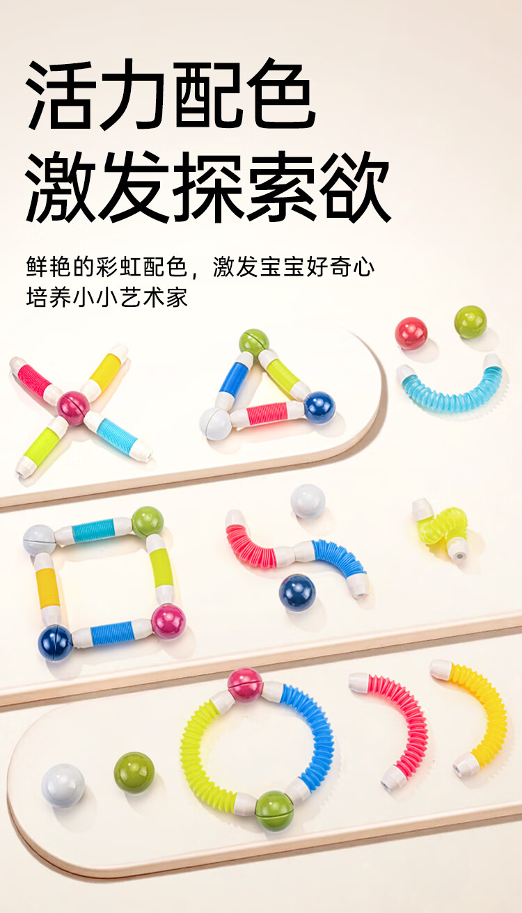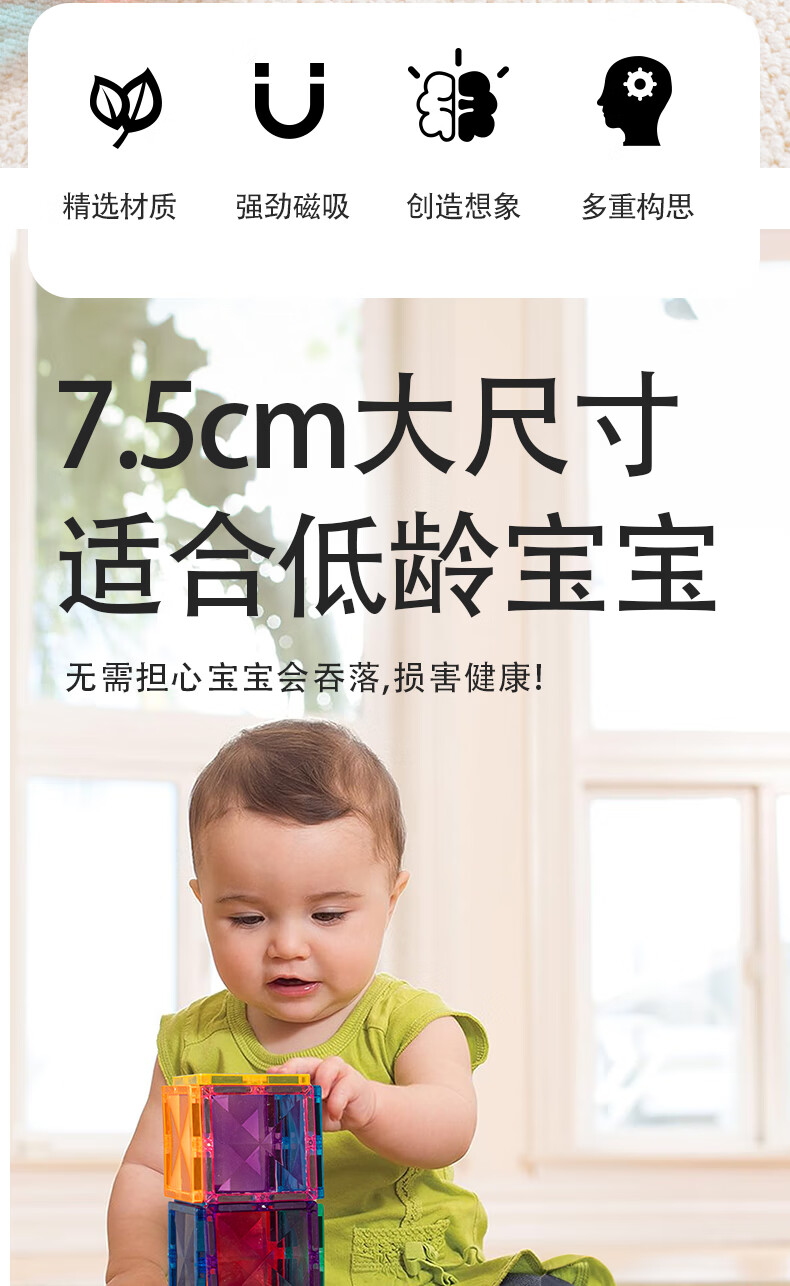 知识花园磁力片磁力棒铁球拼装儿童大尺寸7.5cm思维玩具女男孩生日礼物 磁力伸缩棒(96PCS) 彩色款