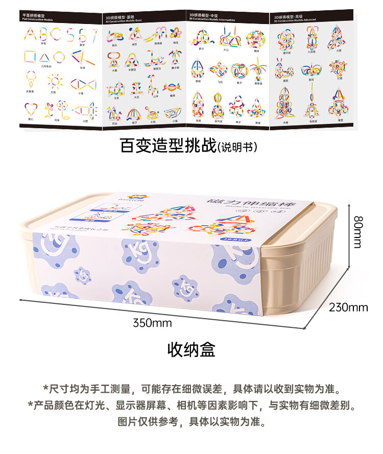 mobee雪花片儿童积木玩具立体拼图大号3-6diy益智手工装拼插新年节礼物 数字雪花片【300片】收纳箱装 色彩缤纷绚丽-光滑无刺-数字拼插