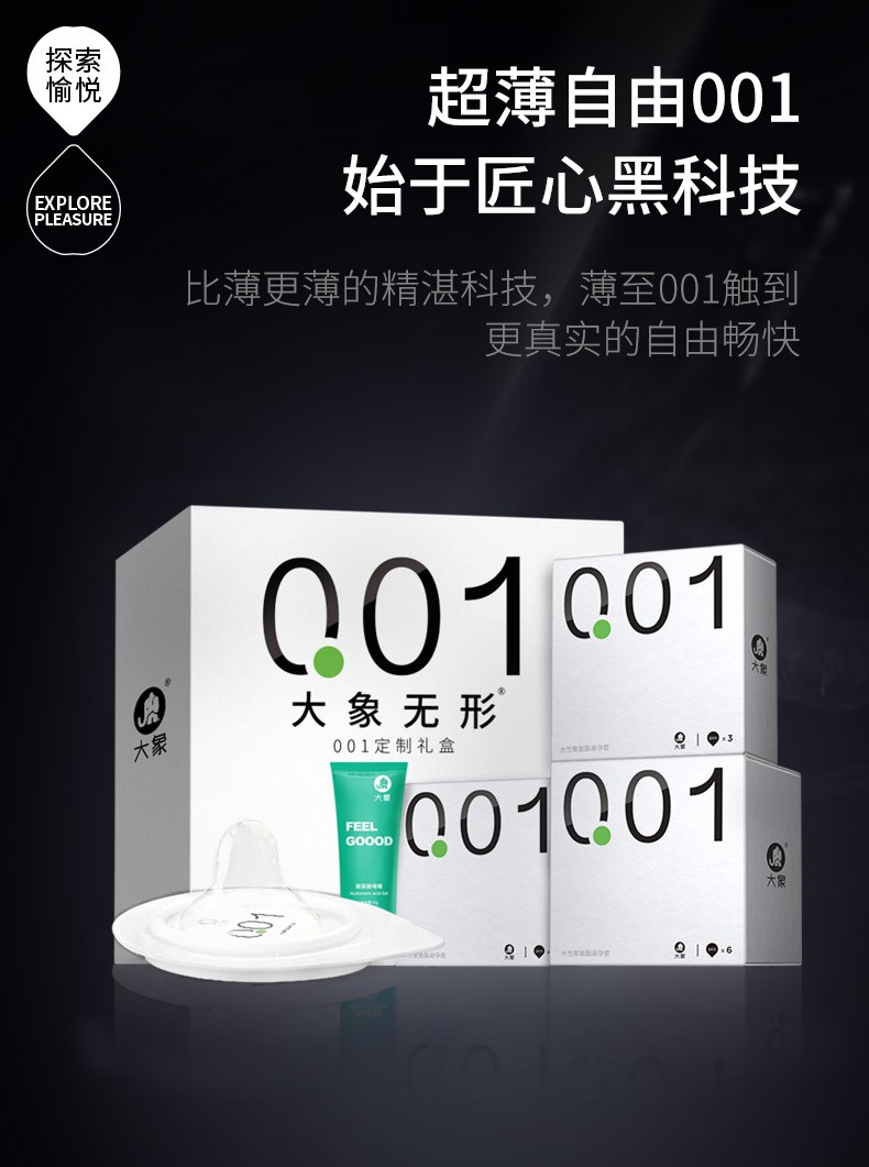 大象0.01mm避孕套超薄001安全套男用计生用品裸感无套裸入保险套套byt 经典001【聚氨酯】3只装