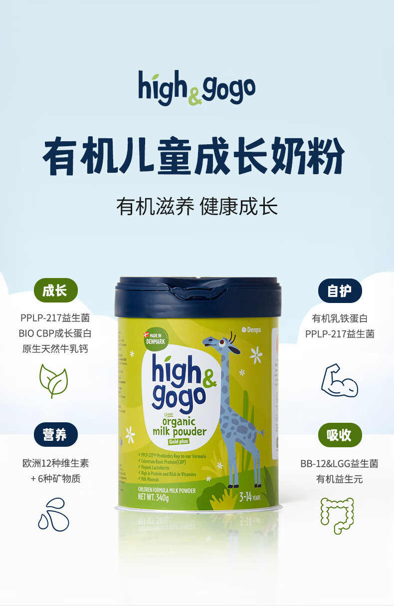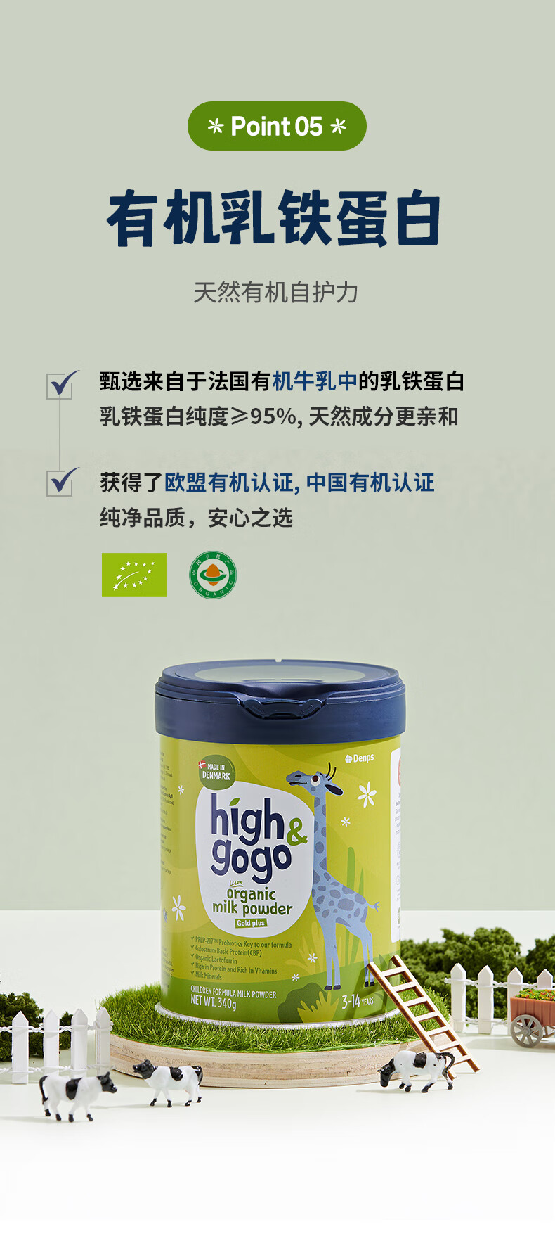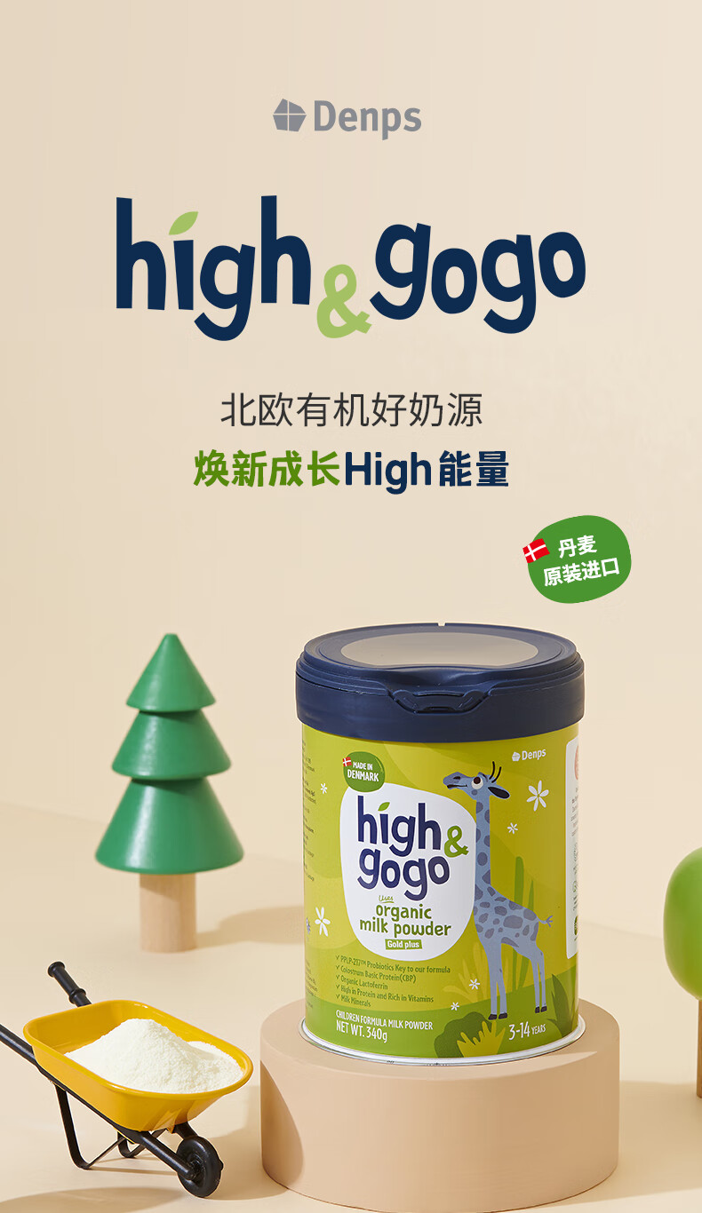 DENPS丹普斯【官方正品】Highgogo丹麦原装进口儿童有机成长牛奶粉 5罐 优选装【赠Denps文具礼盒】
