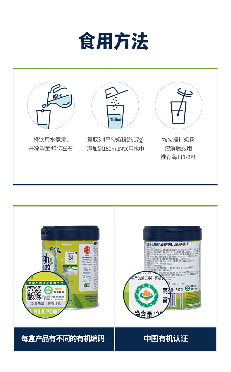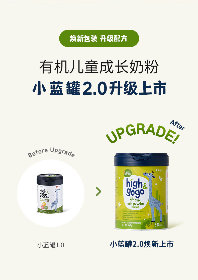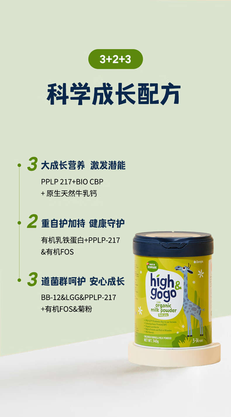 DENPS丹普斯【官方正品】Highgogo丹麦原装进口儿童有机成长牛奶粉 5罐 优选装【赠Denps文具礼盒】