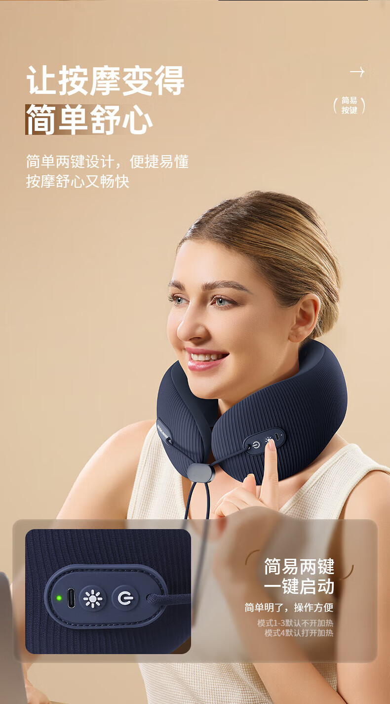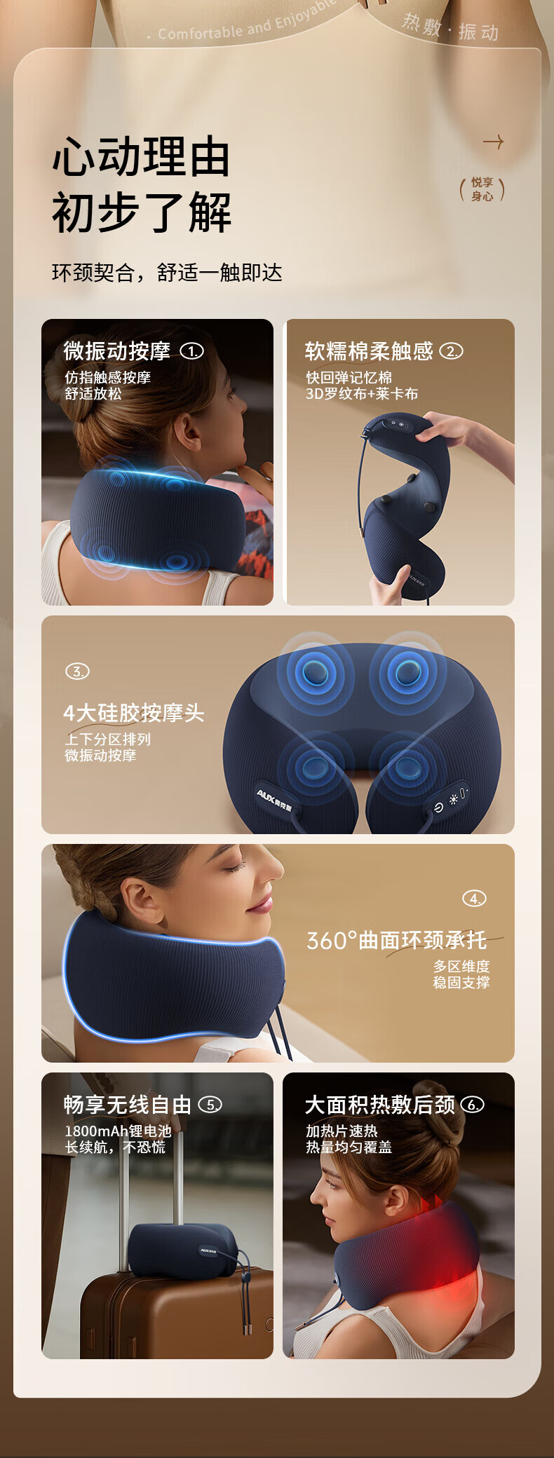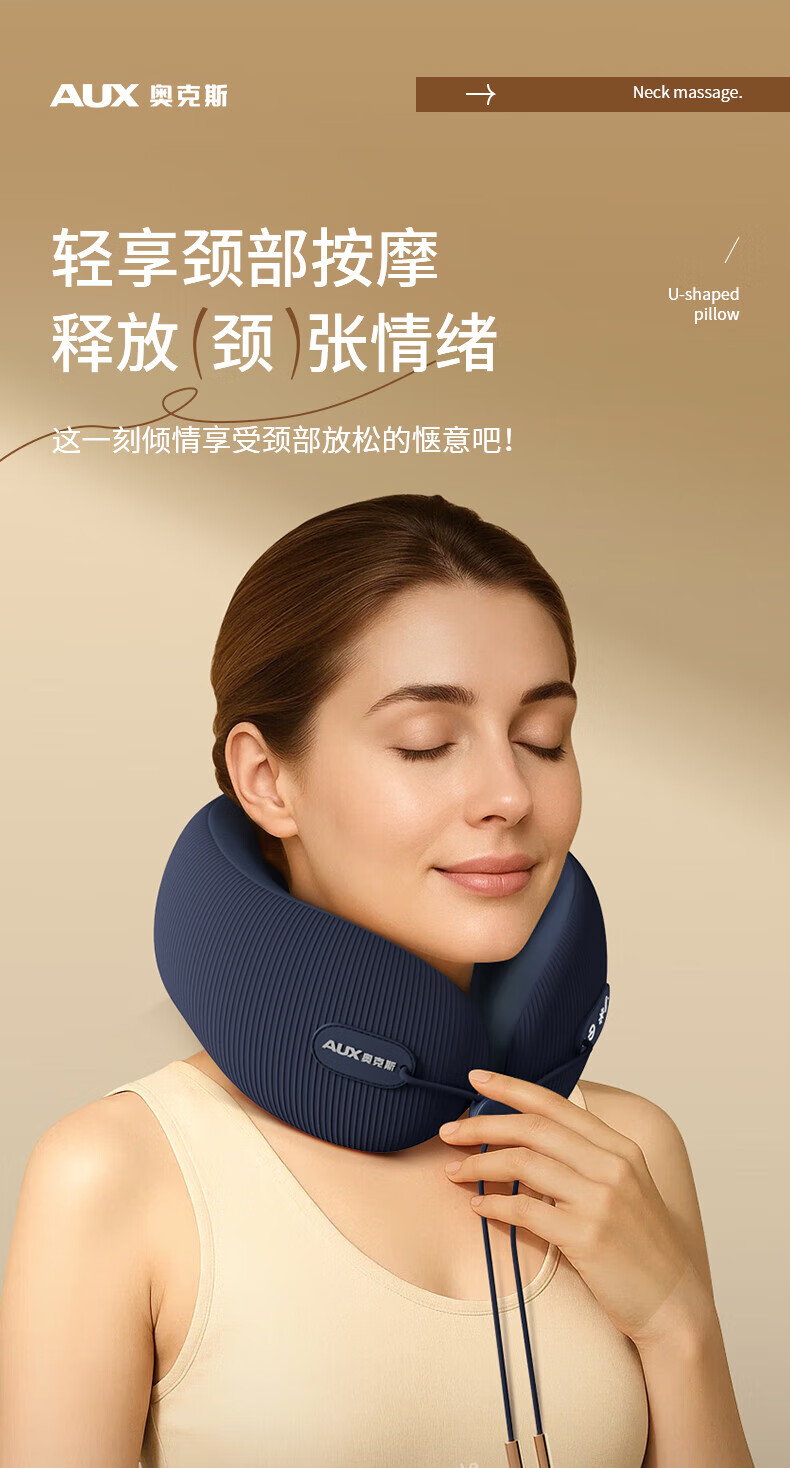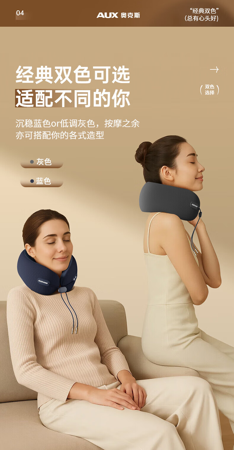 奥克斯肩颈按摩器颈椎按摩仪颈部脉冲揉捏护颈仪热敷按摩U型枕头汽车用办公室头枕航空围脖午睡前倾支撑 灰色旗舰款【仿真人按摩+4种模式+大面积热敷】 教师节礼物送男士女友爸妈妈父母长辈老年人的生日礼物