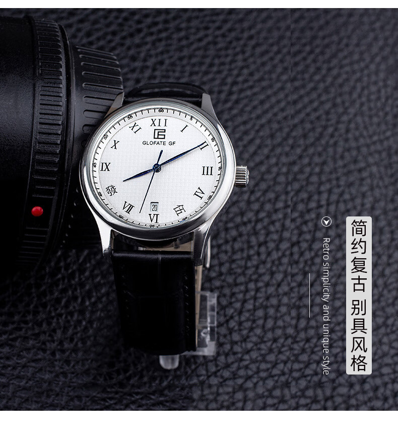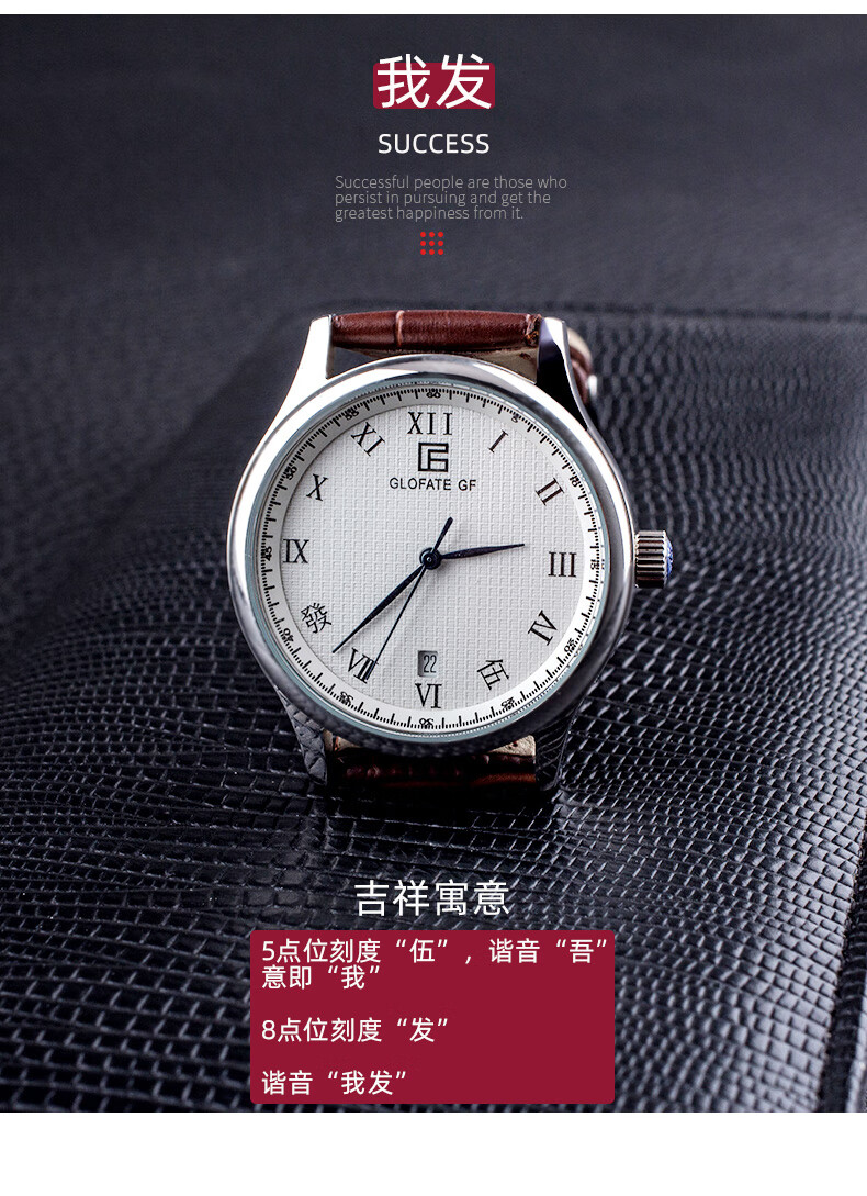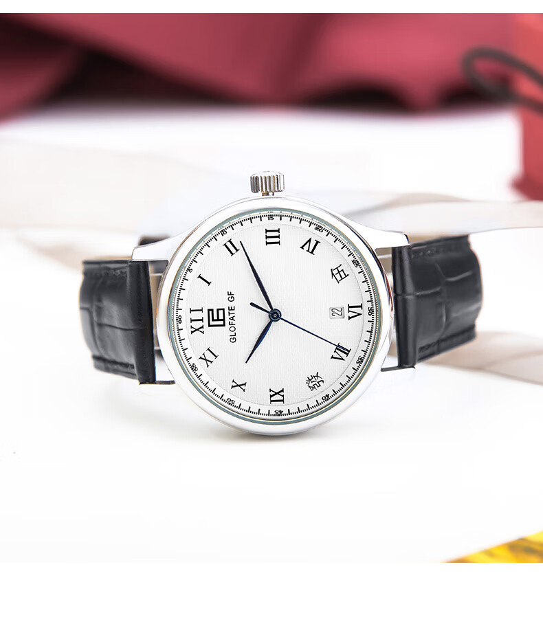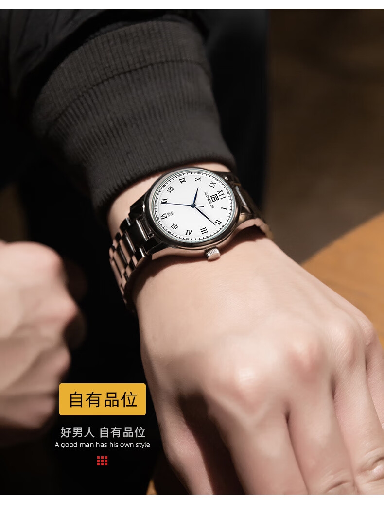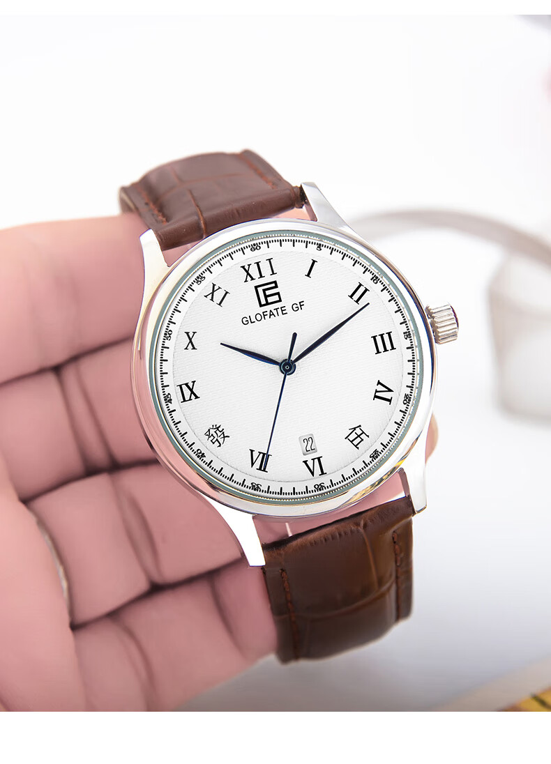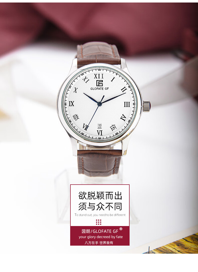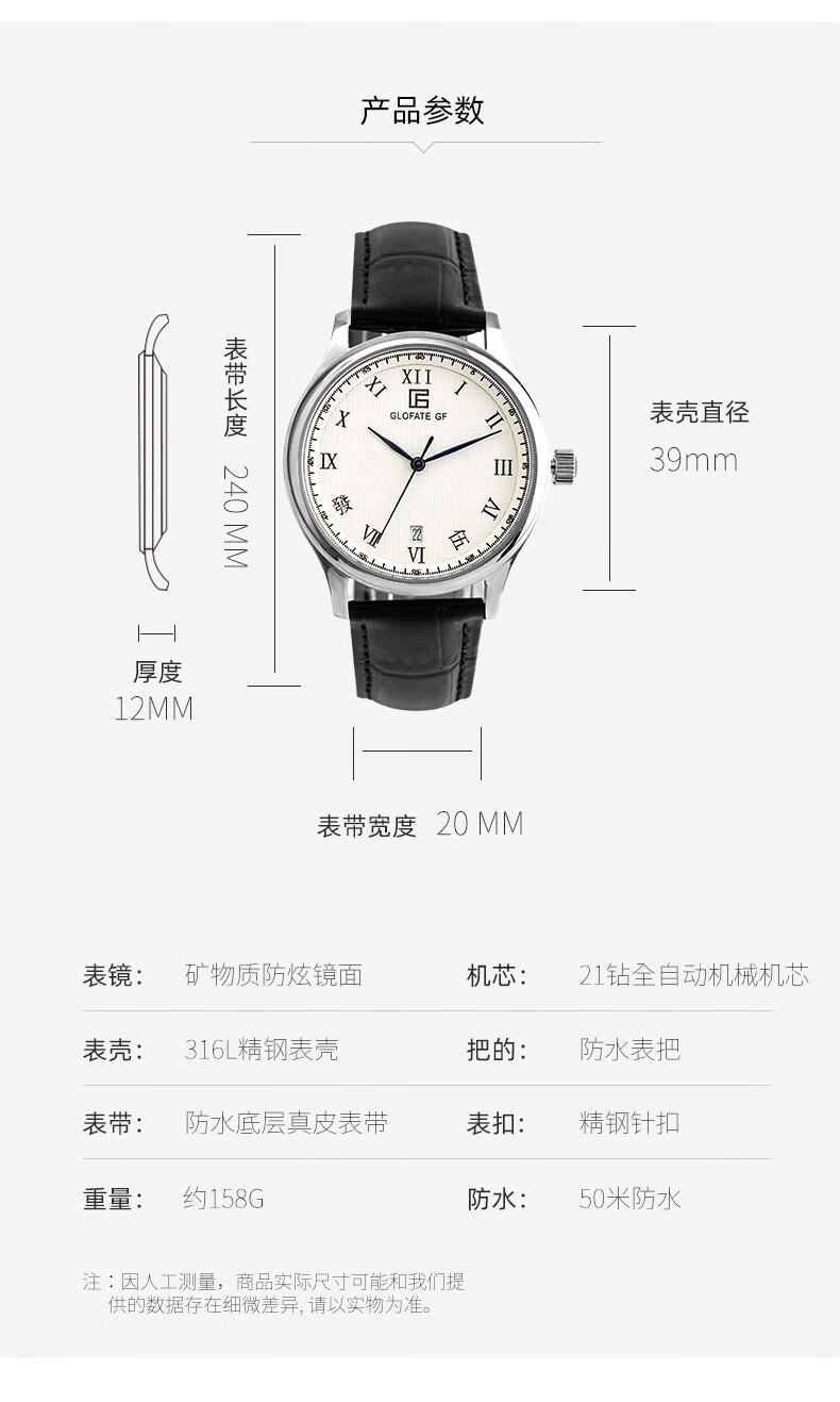 圀朗 GLOFATE GF品牌原创全自动机械手表男中文国货手表皮带钢带防水透底国潮风 白色 银色钢带 39mm