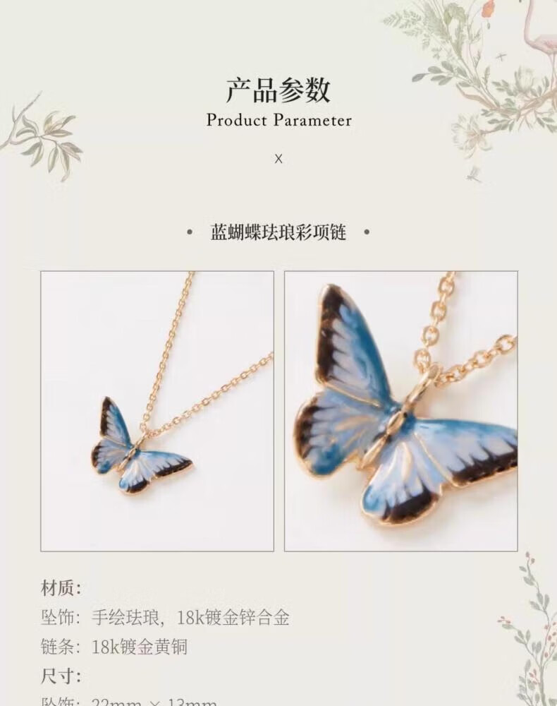 Fable【管乐同款】蓝蝴蝶珐琅彩项链女生小众高级感元旦生日礼物气质 蓝蝴蝶珐琅彩项链 一条