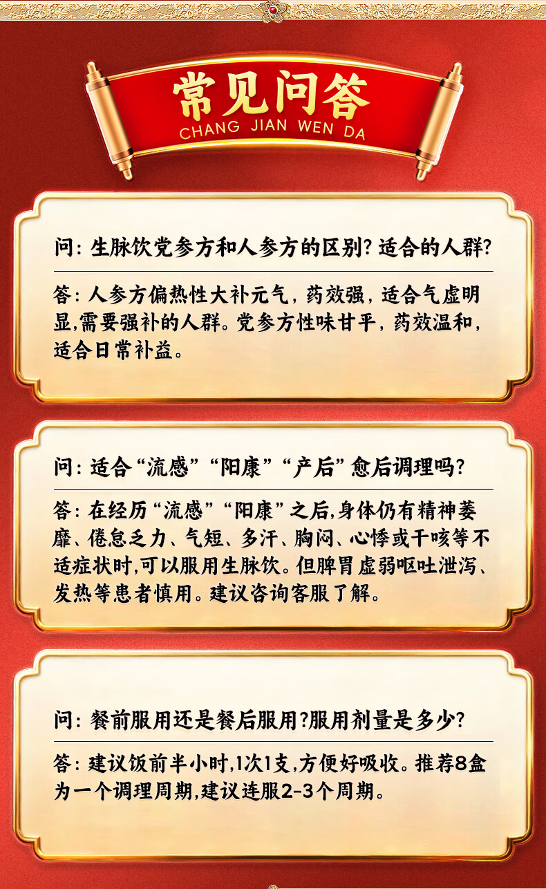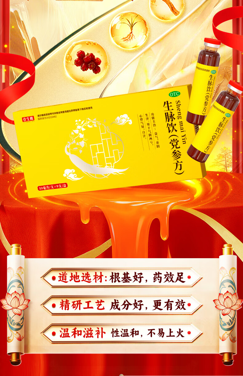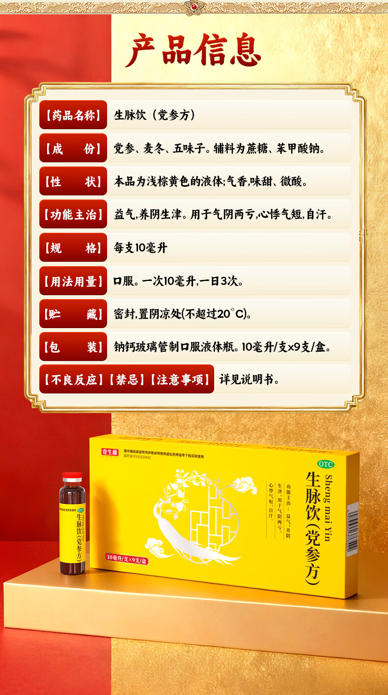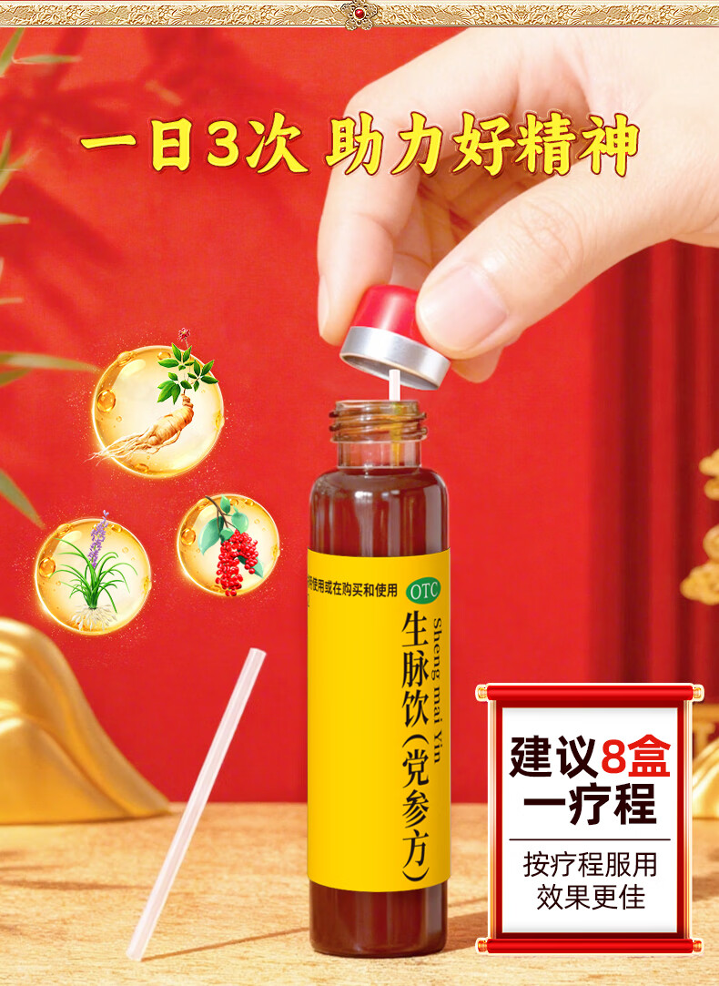 乏力没精神犯困吃什么药补气血 气虚体虚浑身没劲走路易疲劳没力气多汗盗汗 生脉饮(党参方)口服液补气血中药 3盒装【全身乏力 大补气血】