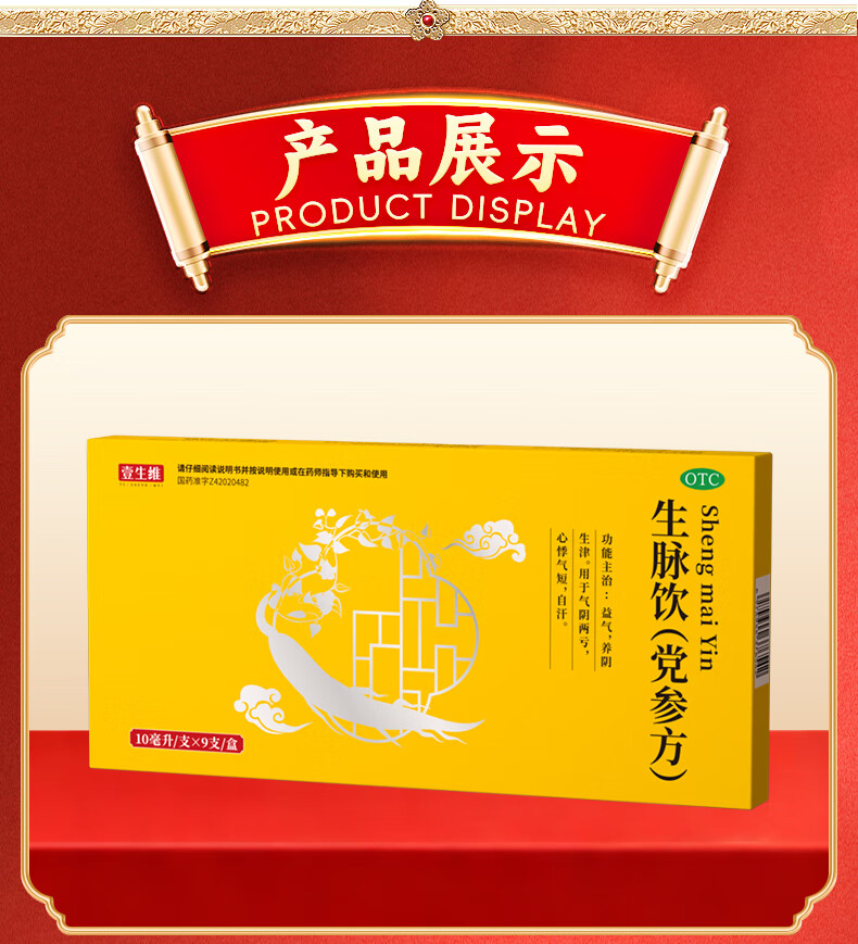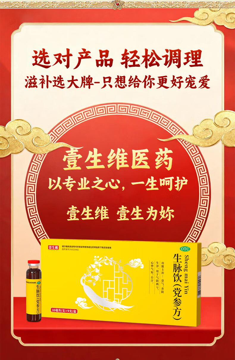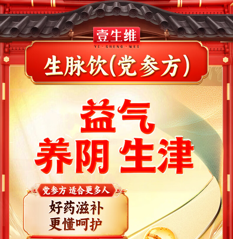 [壹生维]生脉饮(党参方) 10ml*9支 5盒装 益气养血补血口服液补气血女养气血气血康补气养血口服液女性滋补品otc 半个疗程 15天量