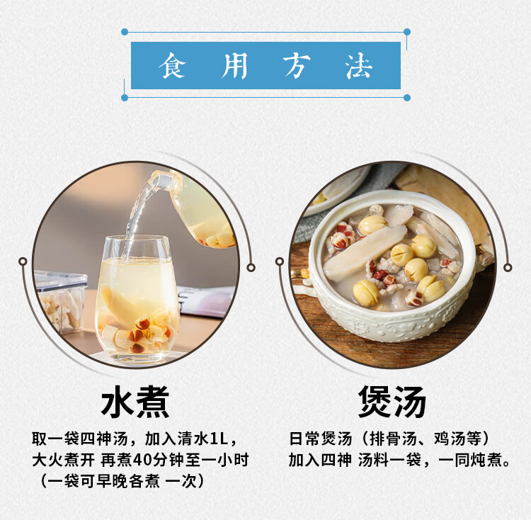 传承元和堂迷罗四神汤料包莲子茯苓山药芡实原材料煲汤老人儿童四臣汤四物汤 【店长推荐】 100g*3袋