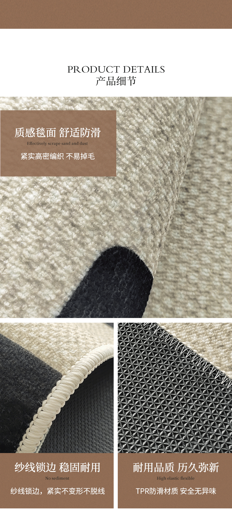 DEATKN德国入户门地垫室内门前大门口防滑脚垫加厚门内门外轻奢地毯 长横浅纹比利时绒地垫 40cm*60cm 【质感大圈绒】