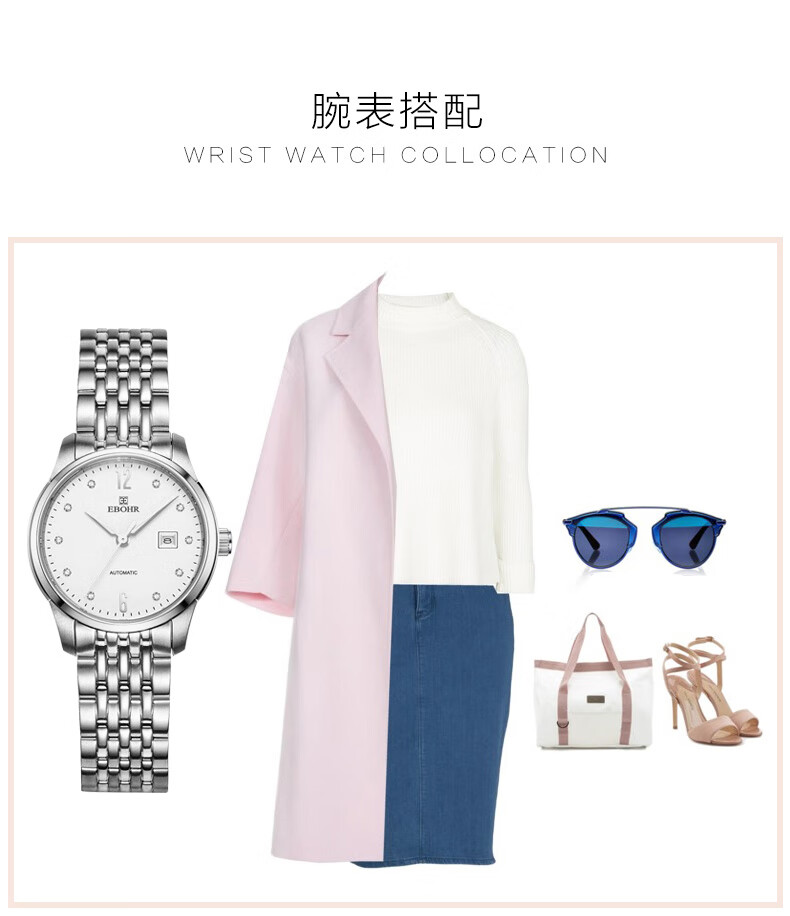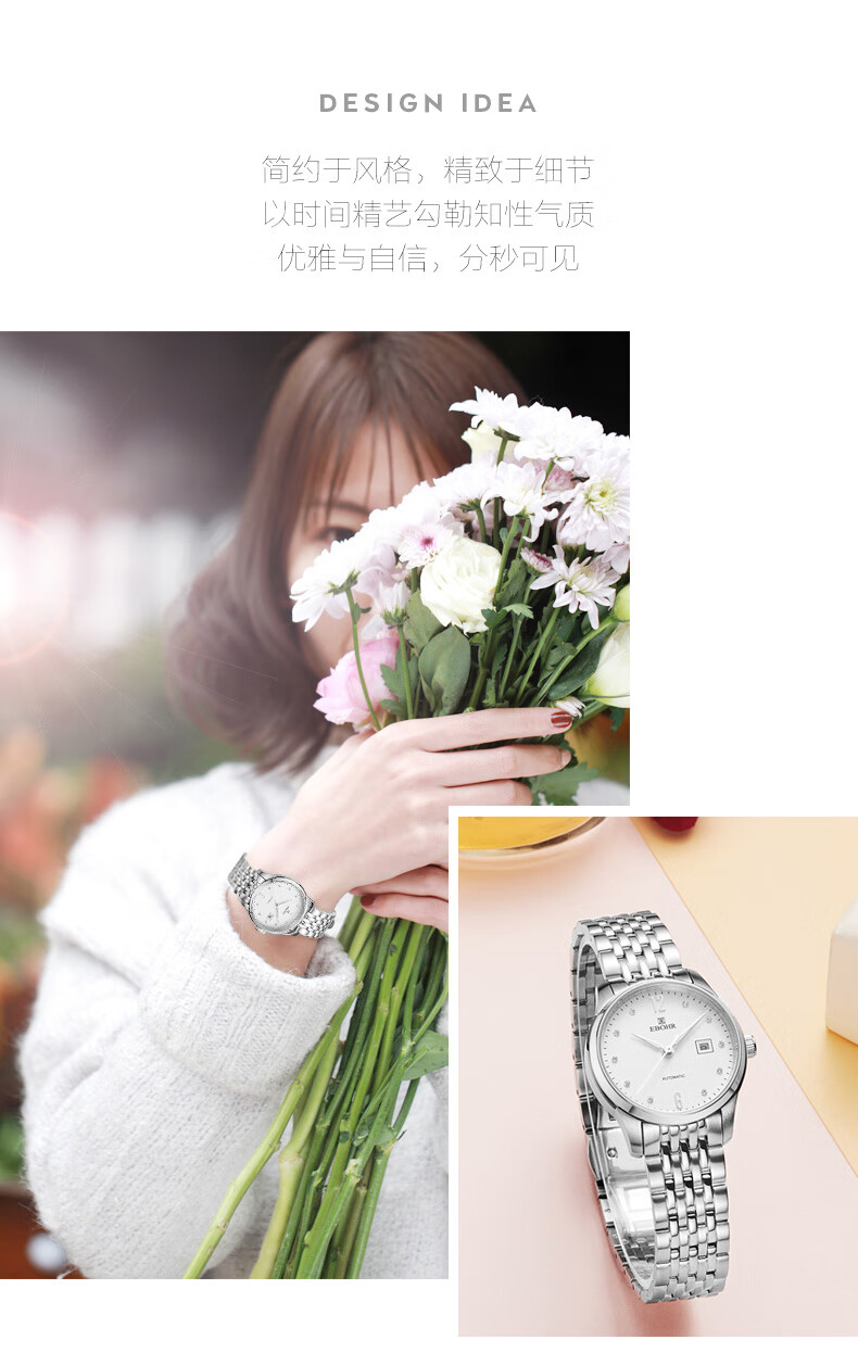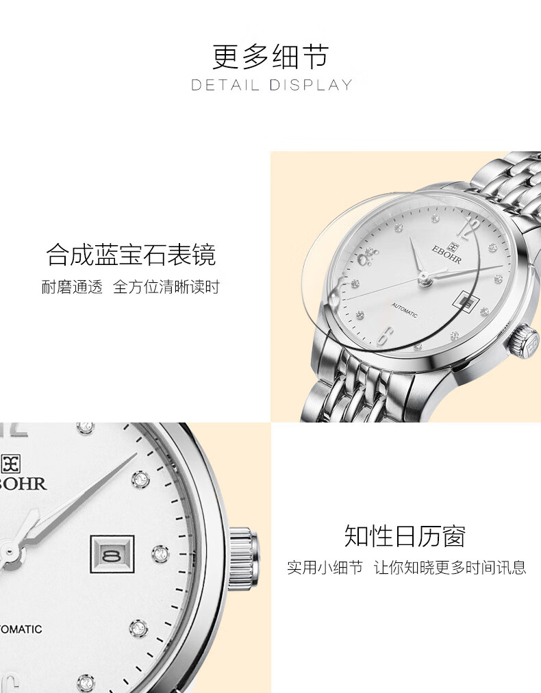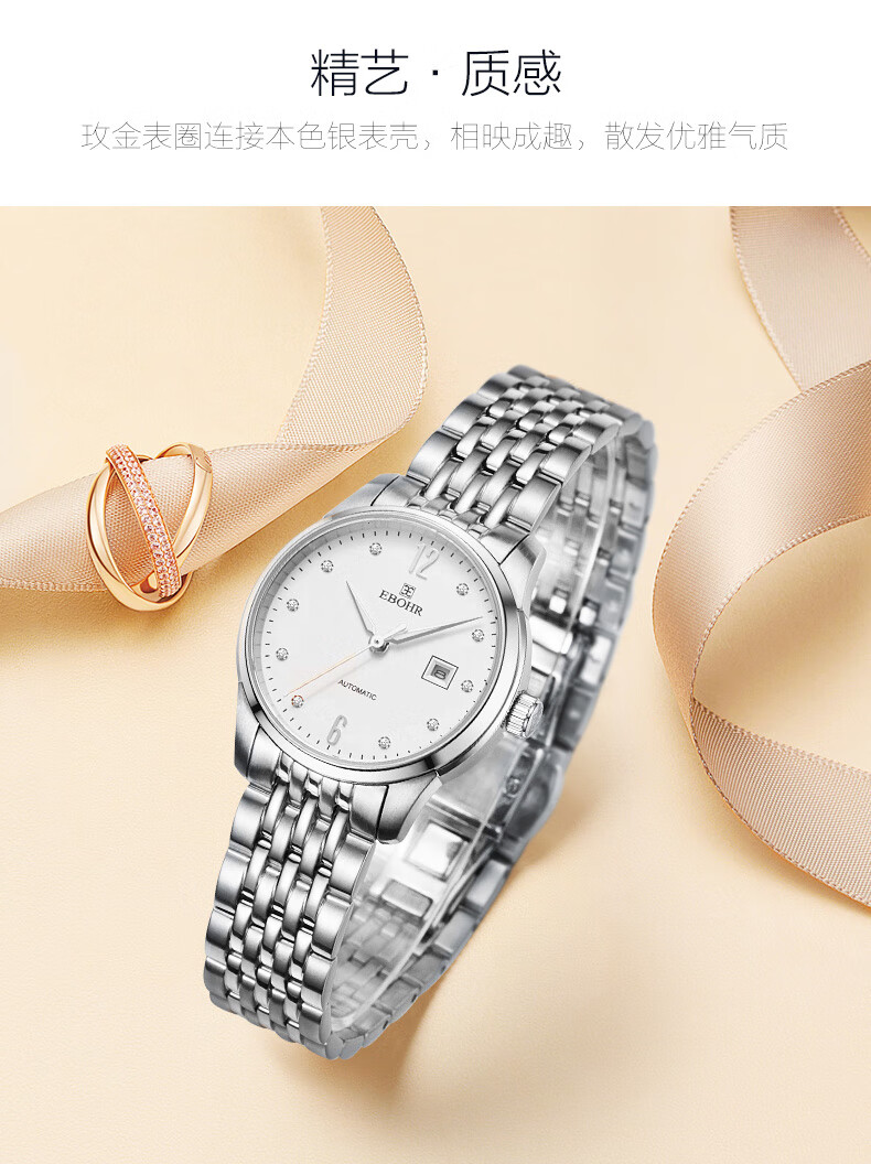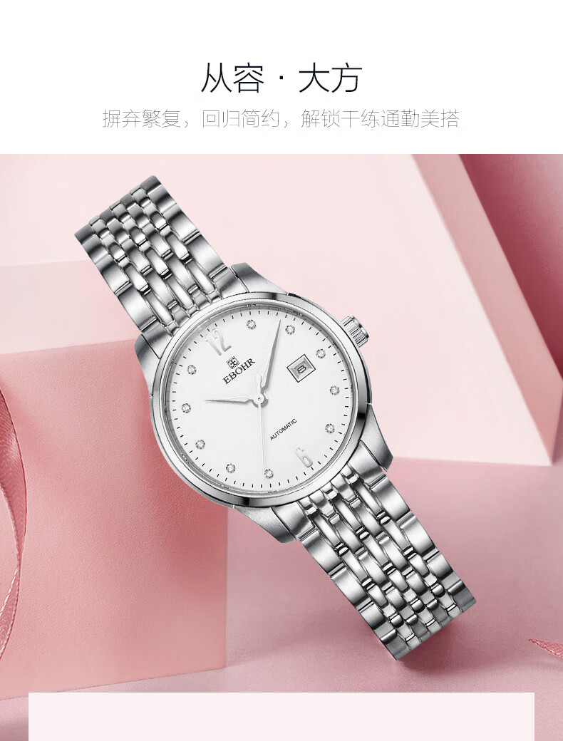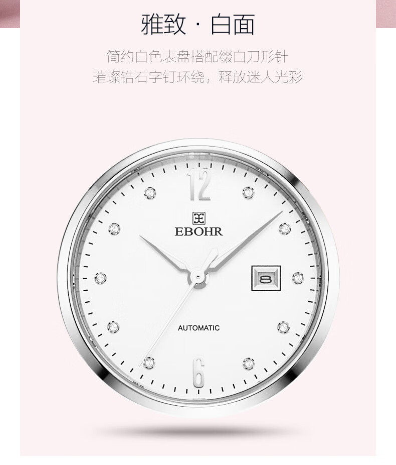 依波(EBOHR)手表女款大师系列自动机械女表优雅国表单历防水送女友七夕礼物 白盘间玫金钢带 51030124